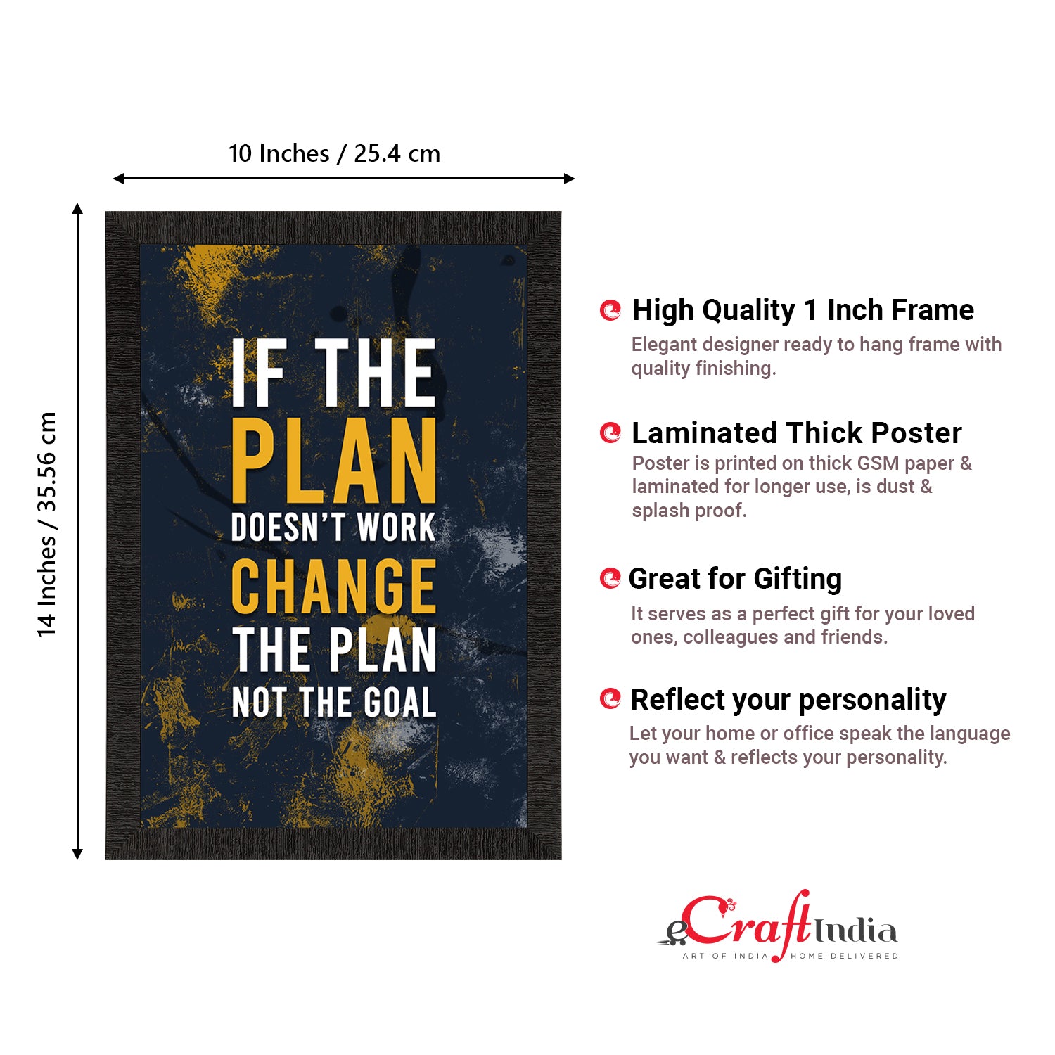 Product Description - Decorate your home & office walls with eCraftIndia Goal Motivational Quote Satin Matt Texture UV Art Painting. Each design reflects the artistic qualities and time one has taken to design these posters. Exquisitely printed on high quality paper, it is also a perfect gifting option. These posters comes with high quality Glue Drops. Glue Drops are non-messy double-sided adhesives. These can be used for sticking posters on wall if required.