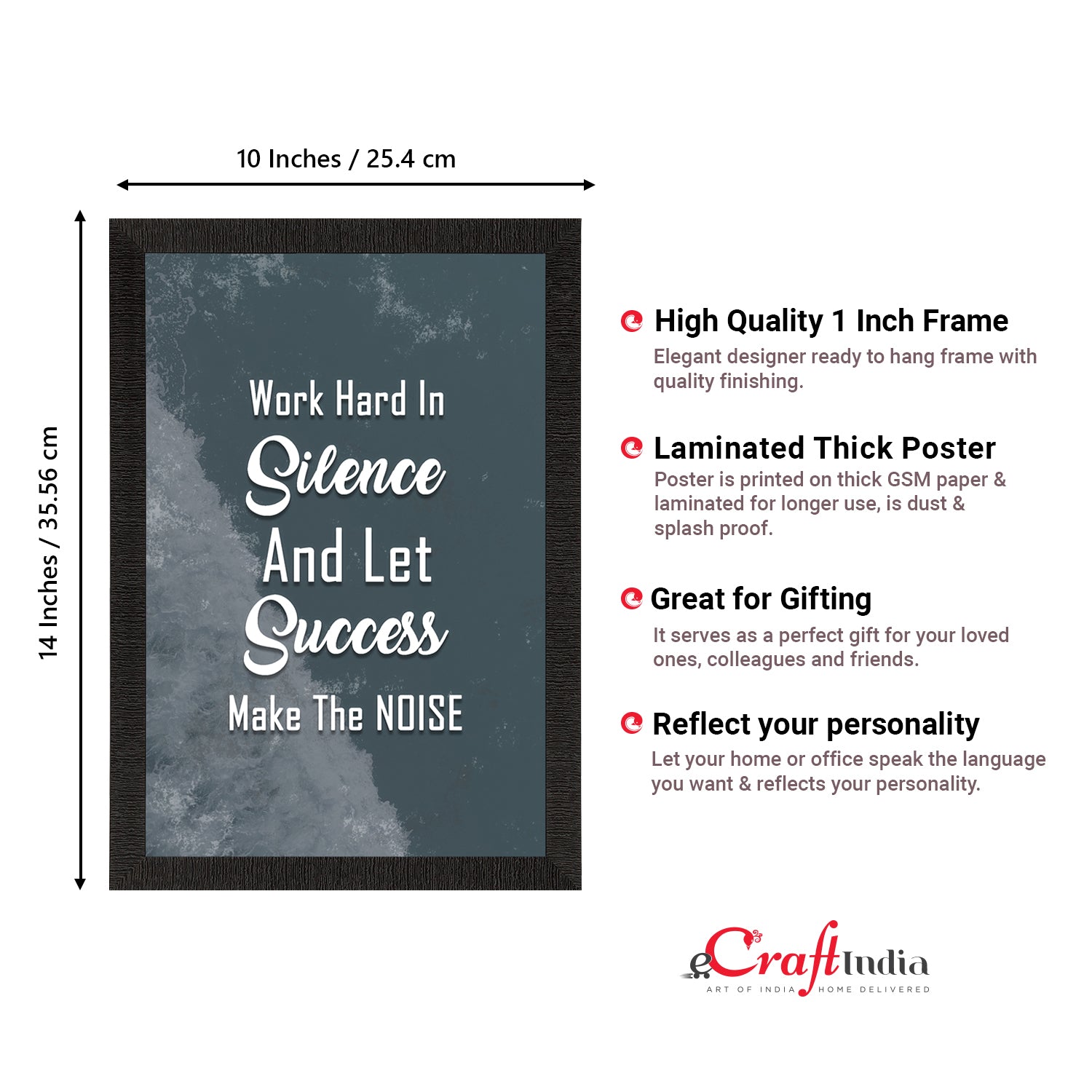 Product Description - Decorate your home & office walls with eCraftIndia "Work hard in Silence" Motivational Quote Satin Matt Texture UV Art Painting. Each design reflects the artistic qualities and time one has taken to design these posters. Exquisitely printed on high quality paper, it is also a perfect gifting option. These posters comes with high quality Glue Drops. Glue Drops are non-messy double-sided adhesives. These can be used for sticking posters on wall if required.