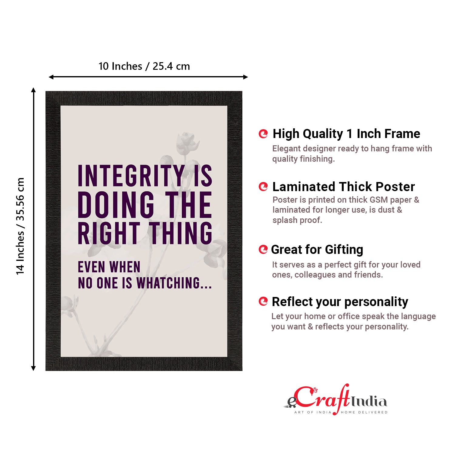 Product Description - Decorate your home & office walls with eCraftIndia Integrity Motivational Quote Satin Matt Texture UV Art Painting. Each design reflects the artistic qualities and time one has taken to design these posters. Exquisitely printed on high quality paper, it is also a perfect gifting option. These posters comes with high quality Glue Drops. Glue Drops are non-messy double-sided adhesives. These can be used for sticking posters on wall if required.