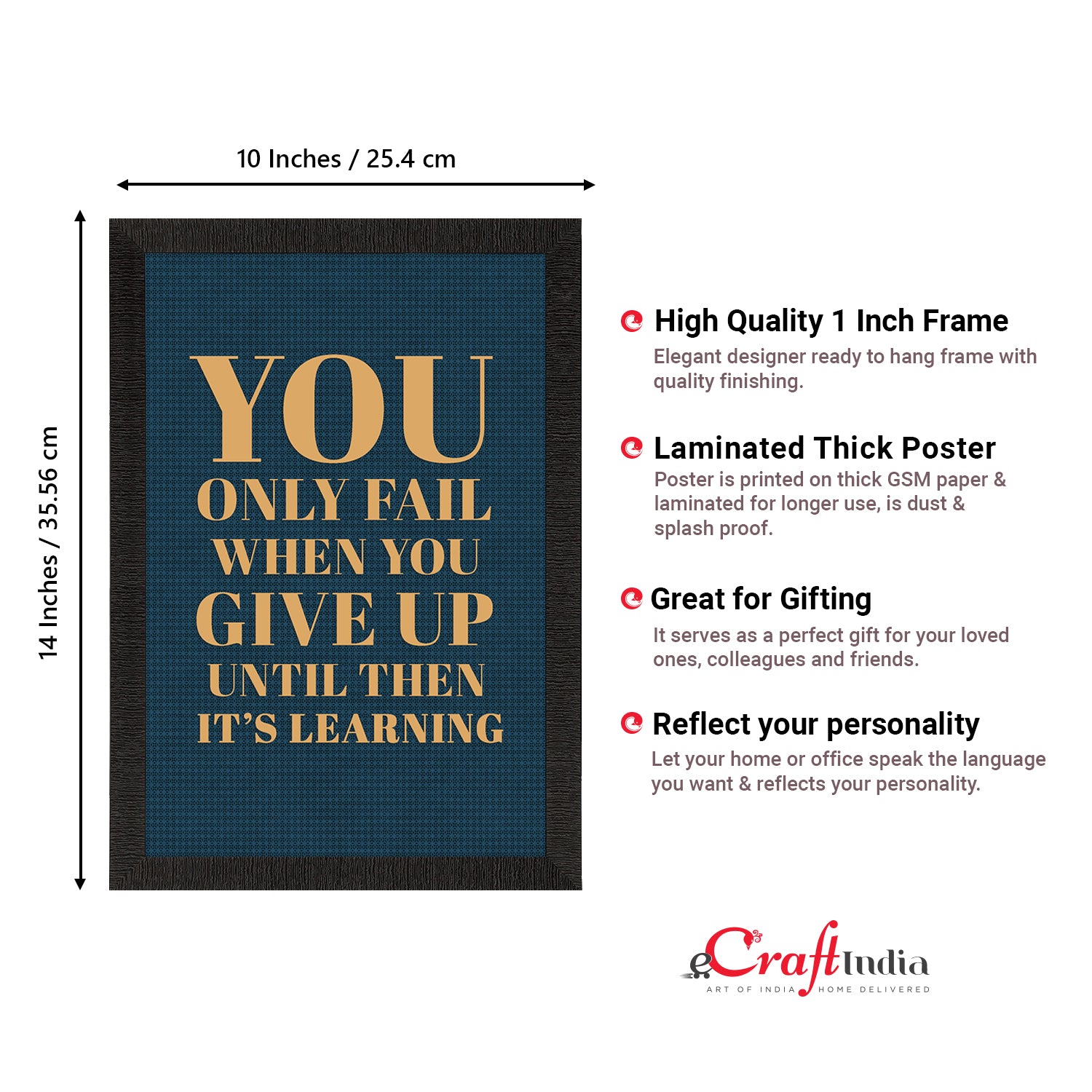 Product Description - Decorate your home & office walls with eCraftIndia "You only fail when you give up until then it's Learning" Motivational Quote Satin Matt Texture UV Art Painting. Each design reflects the artistic qualities and time one has taken to design these posters. Exquisitely printed on high quality paper, it is also a perfect gifting option. These posters comes with high quality Glue Drops. Glue Drops are non-messy double-sided adhesives. These can be used for sticking posters on wall if required.