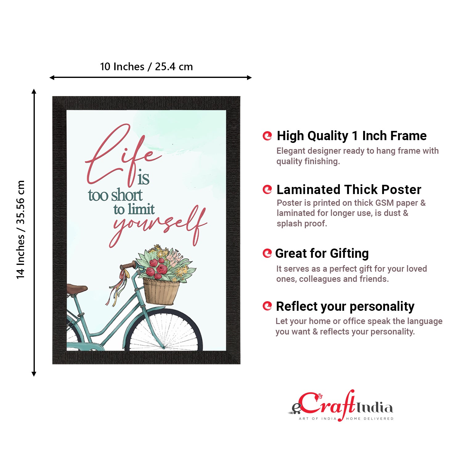 Product Description - Decorate your home & office walls with eCraftIndia "Life is too short" Motivational Quote Satin Matt Texture UV Art Painting. Each design reflects the artistic qualities and time one has taken to design these posters. Exquisitely printed on high quality paper, it is also a perfect gifting option. These posters comes with high quality Glue Drops. Glue Drops are non-messy double-sided adhesives. These can be used for sticking posters on wall if required.