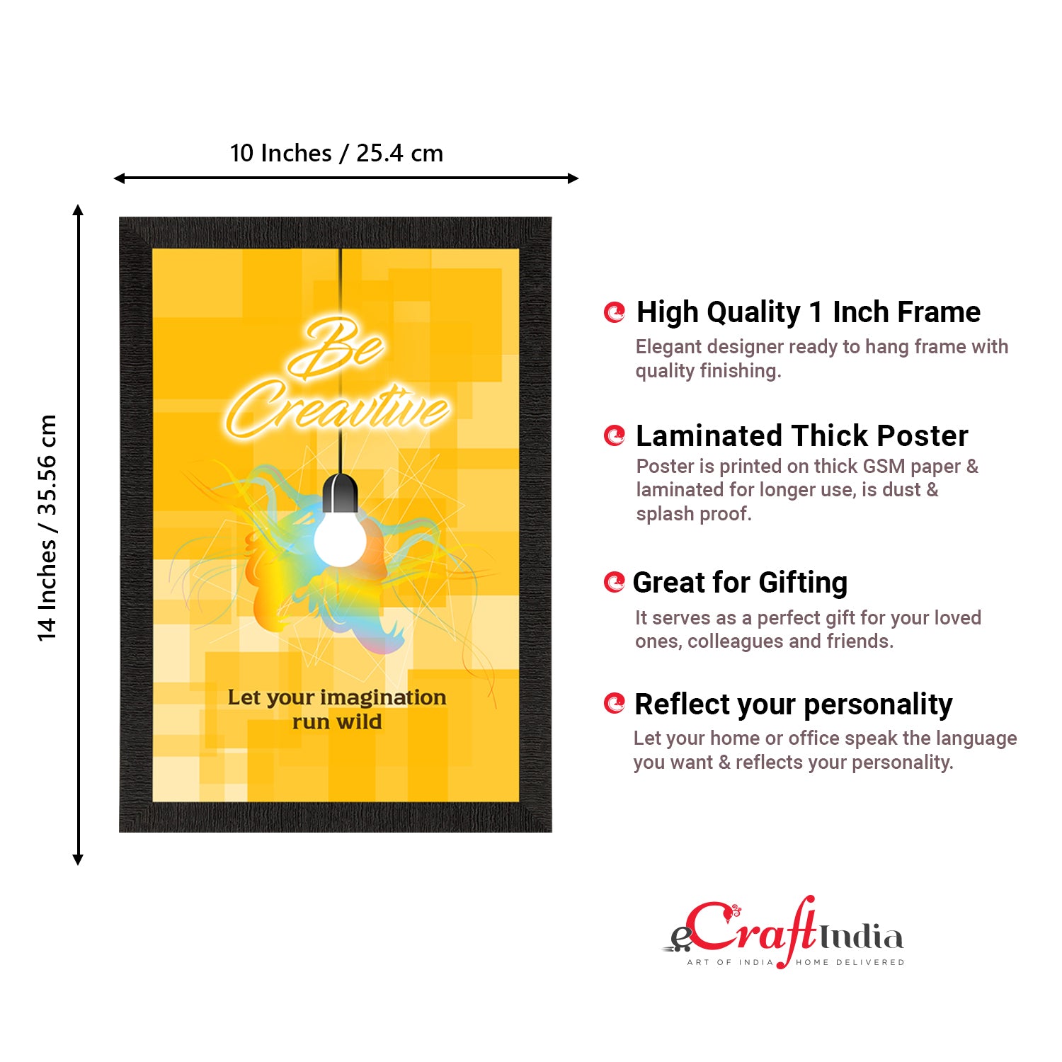 Product Description - Decorate your home & office walls with eCraftIndia "Be Creative" Motivational Quote Satin Matt Texture UV Art Painting. Each design reflects the artistic qualities and time one has taken to design these posters. Exquisitely printed on high quality paper, it is also a perfect gifting option. These posters comes with high quality Glue Drops. Glue Drops are non-messy double-sided adhesives. These can be used for sticking posters on wall if required.