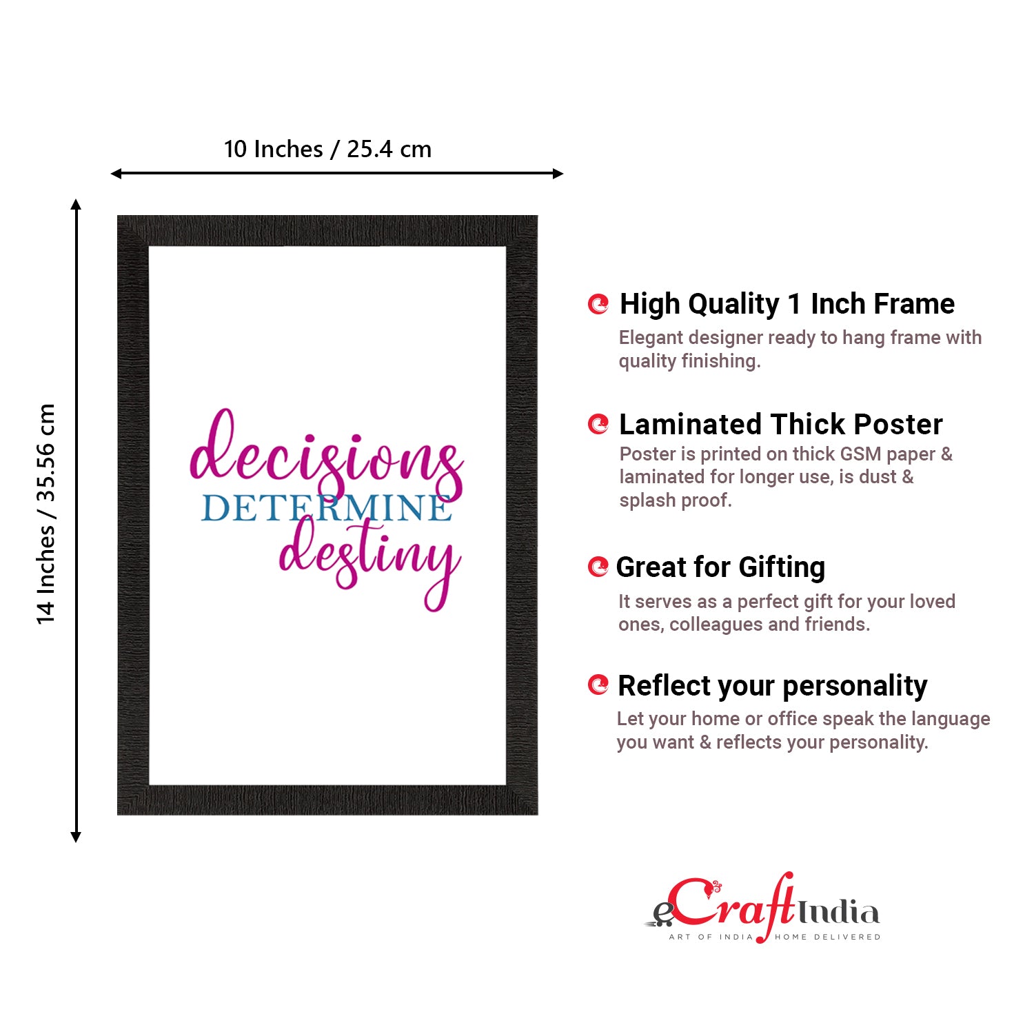 Product Description - Decorate your home & office walls with eCraftIndia "Decisions determine destiny" Motivational Quote Satin Matt Texture UV Art Painting. Each design reflects the artistic qualities and time one has taken to design these posters. Exquisitely printed on high quality paper, it is also a perfect gifting option. These posters comes with high quality Glue Drops. Glue Drops are non-messy double-sided adhesives. These can be used for sticking posters on wall if required.