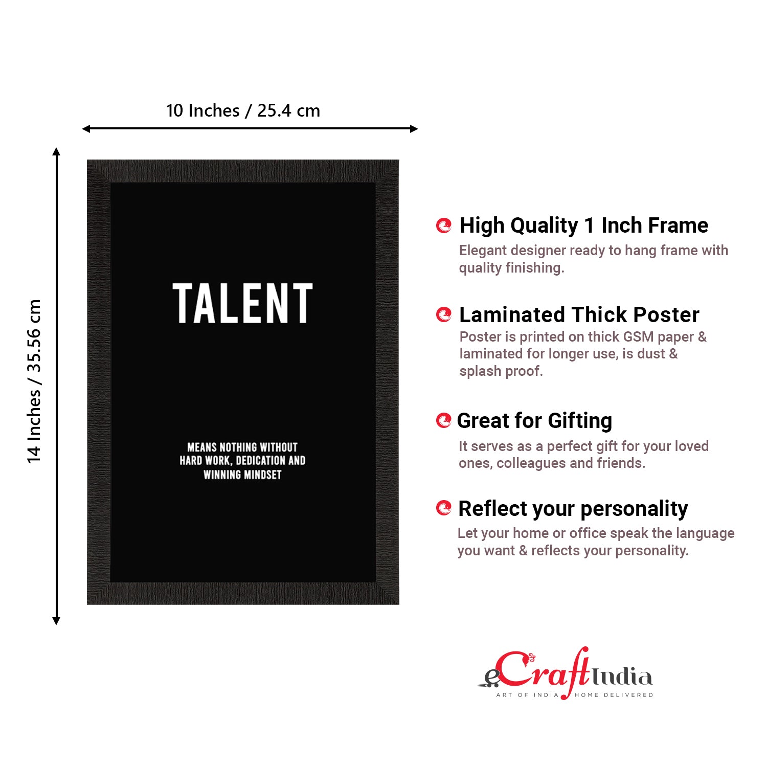 Product Description - Decorate your home & office walls with eCraftIndia "Talent" Motivational Quote Satin Matt Texture UV Art Painting. Each design reflects the artistic qualities and time one has taken to design these posters. Exquisitely printed on high quality paper, it is also a perfect gifting option. These posters comes with high quality Glue Drops. Glue Drops are non-messy double-sided adhesives. These can be used for sticking posters on wall if required.