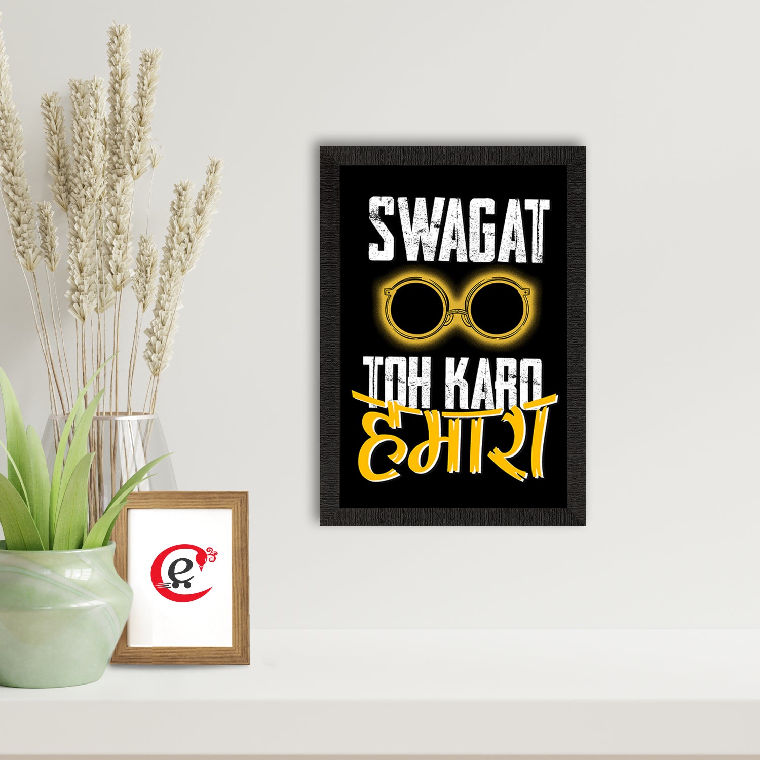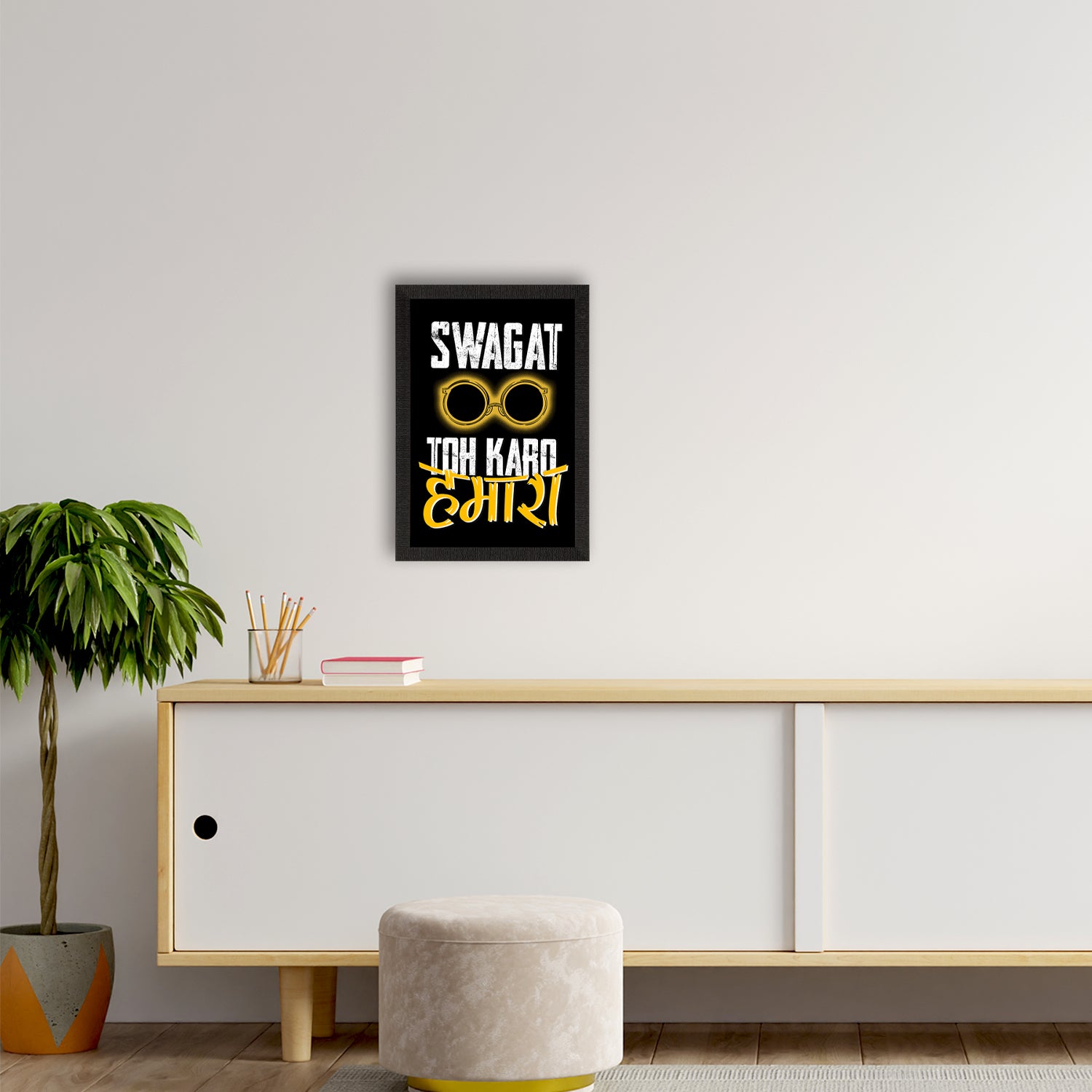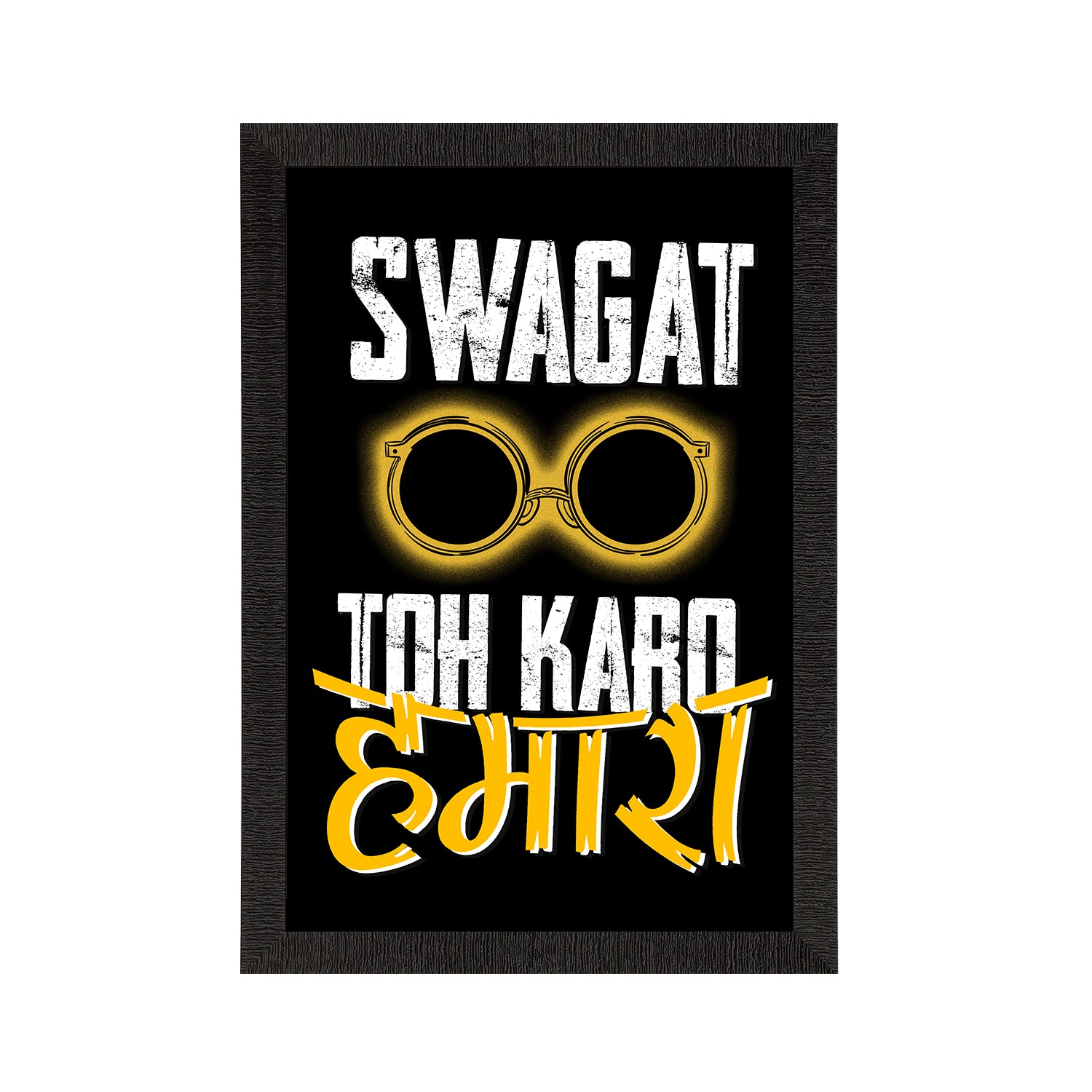Package Content - One "Swagat Toh Karo Humara" Quirky Quote Satin Matt Texture UV Art Painting