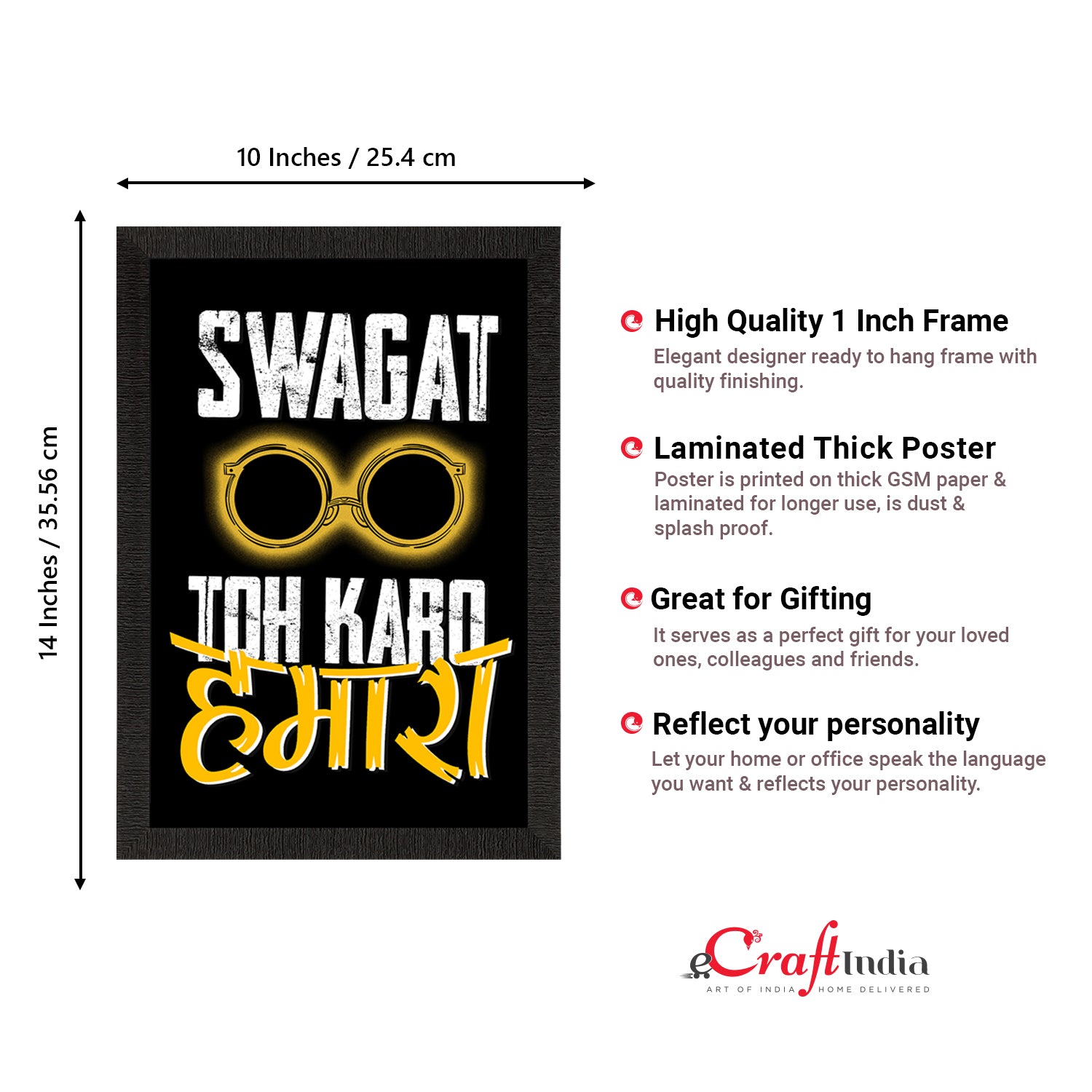 Product Description - Decorate your home & office walls with eCraftIndia "Swagat Toh Karo Humara" Quirky Quote Satin Matt Texture UV Art Painting. Each design reflects the artistic qualities and time one has taken to design these posters. Exquisitely printed on high quality paper, it is also a perfect gifting option. These posters comes with high quality Glue Drops. Glue Drops are non-messy double-sided adhesives. These can be used for sticking posters on wall if required.
