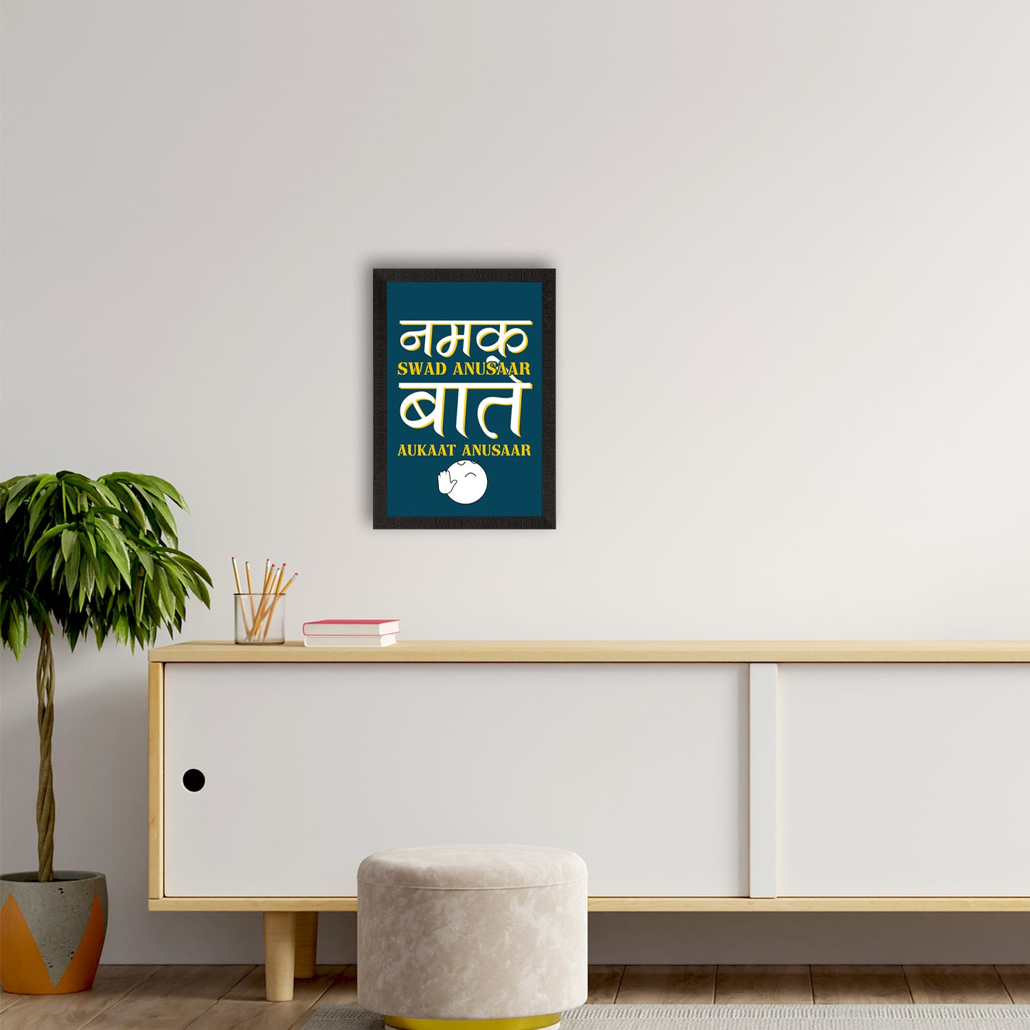 Package Content - One "Namak Sawad Anusaar Batein Aukaat Anusaar" Quirky Quote Satin Matt Texture UV Art Painting