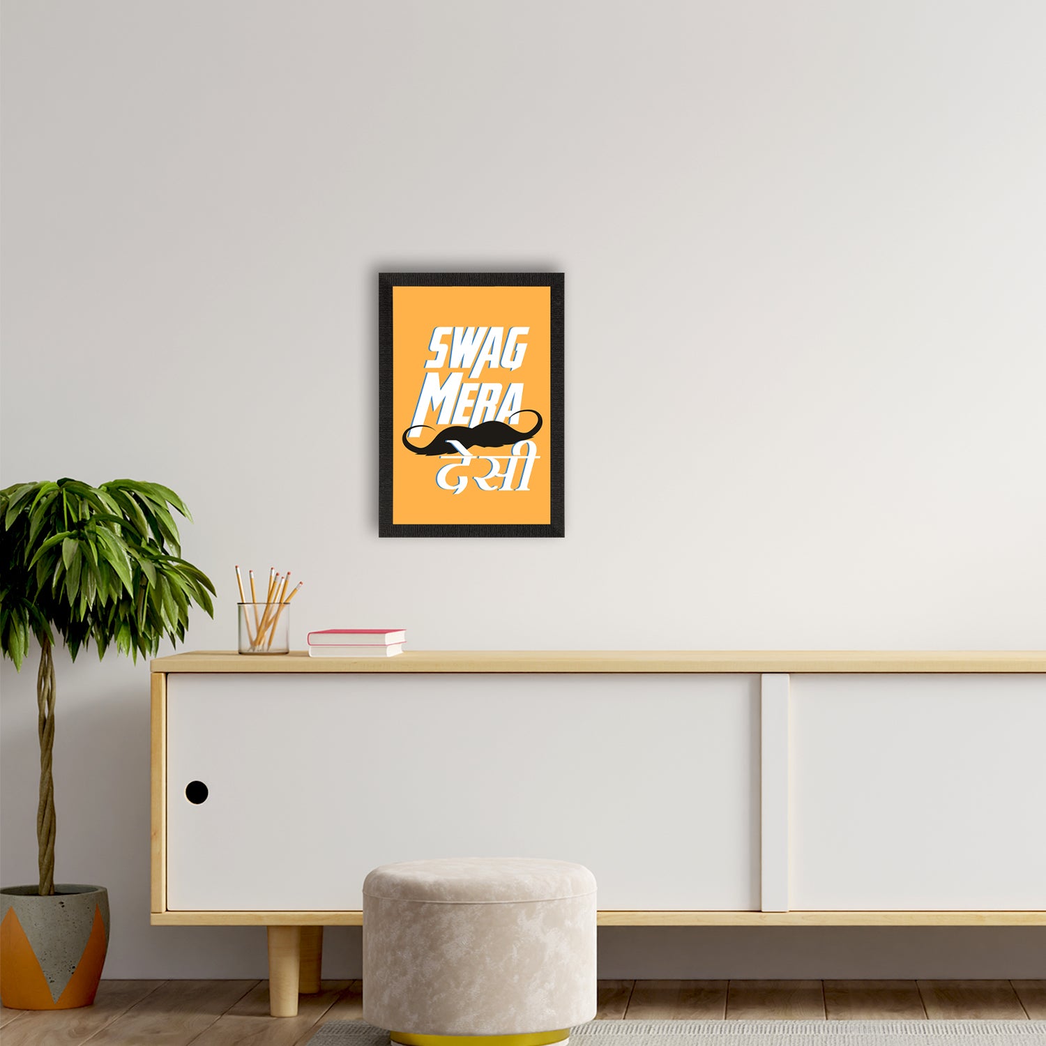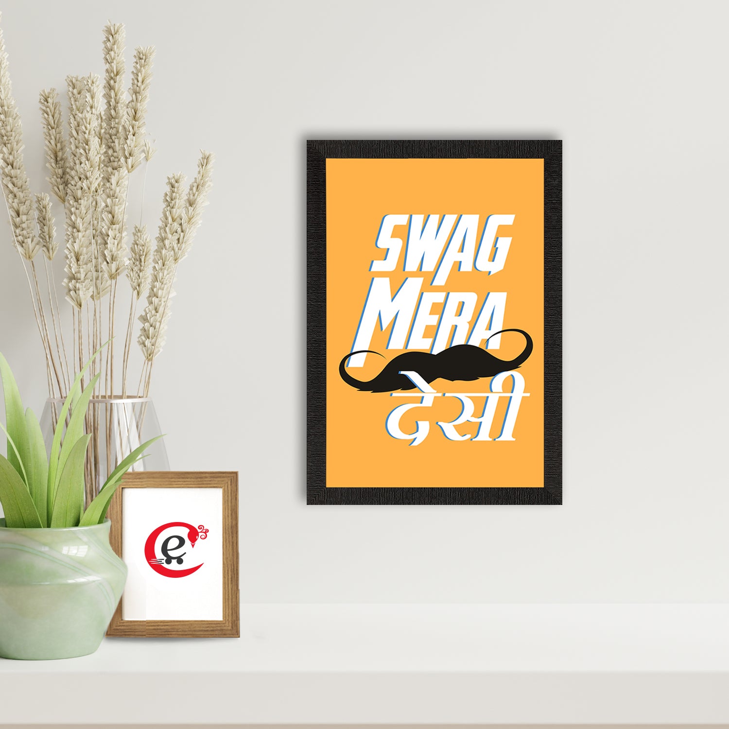 Package Content - One "Swag Mera Desi" Quirky Quote Satin Matt Texture UV Art Painting