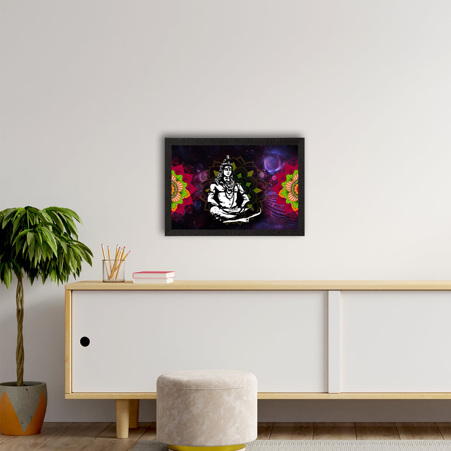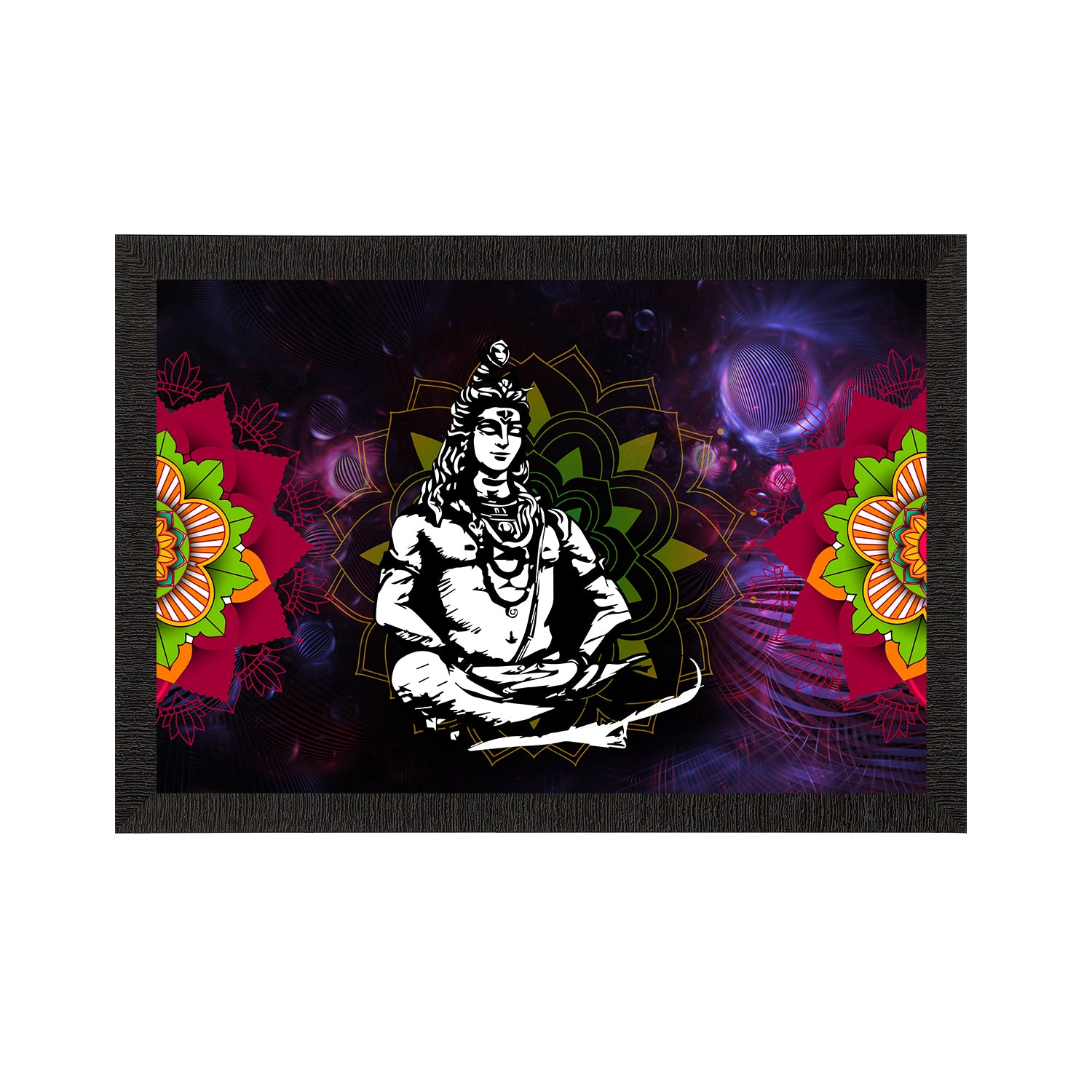 Product Description - Lord Shiva, known & understood as the destroyer of the universe also plays different roles such as the master of fertility, medicine & poison. Lord Shiva's paintings are said to depict the importance of harmony & love in a family. Therefore, these framed wall paintings make a great gift option for your family & friends. Our Lord Shiva UV matt textured framed paintings are available in sets as well that will help you incorporate the entire wall space creatively. Each design reflects the artistic qualities and time one has taken to design this painting. These frames don't include glass so it is very lightweight and wet cloth can be used to clean them. Exquisitely printed and framed, it is also a perfect gifting option for your colleagues, loved ones, and family members.