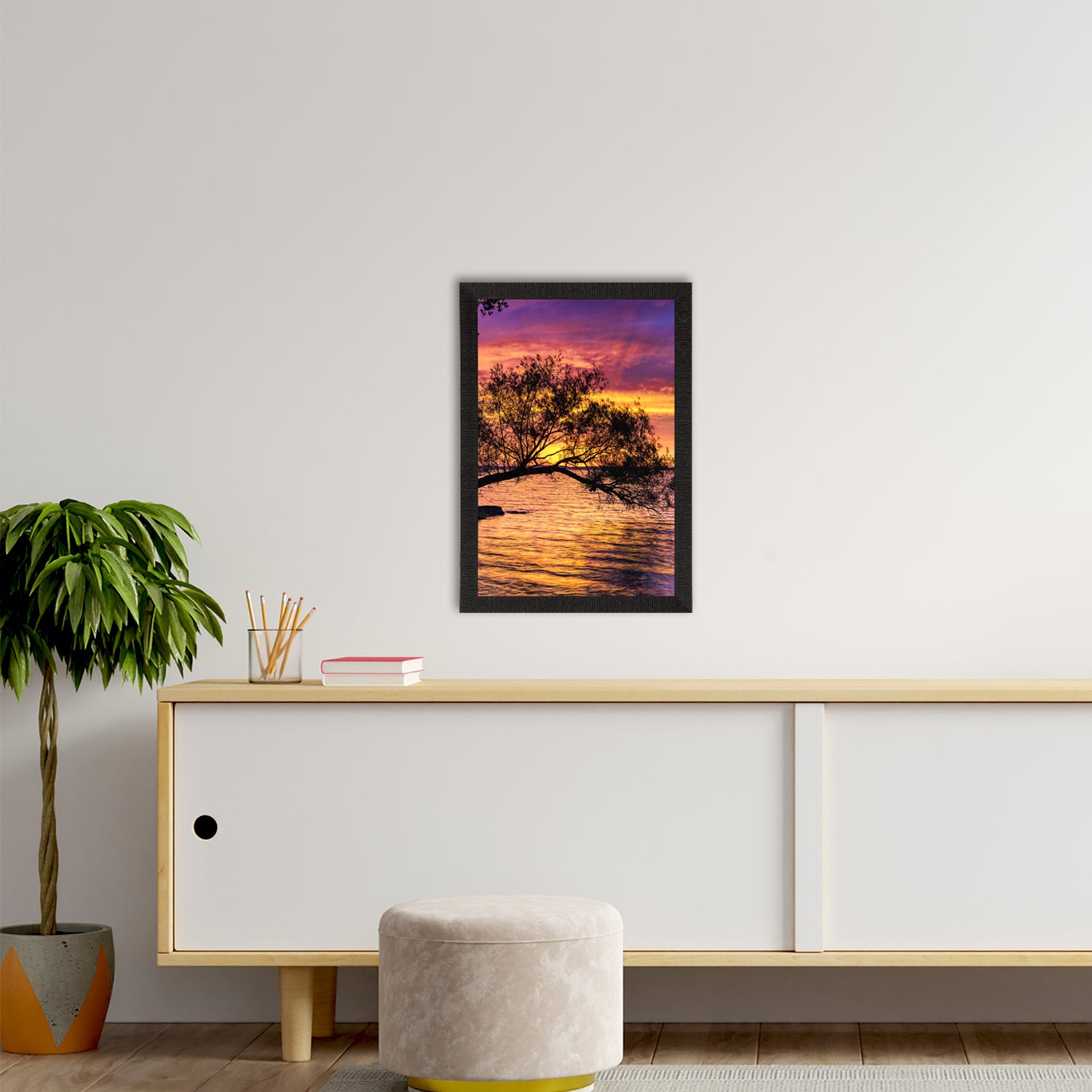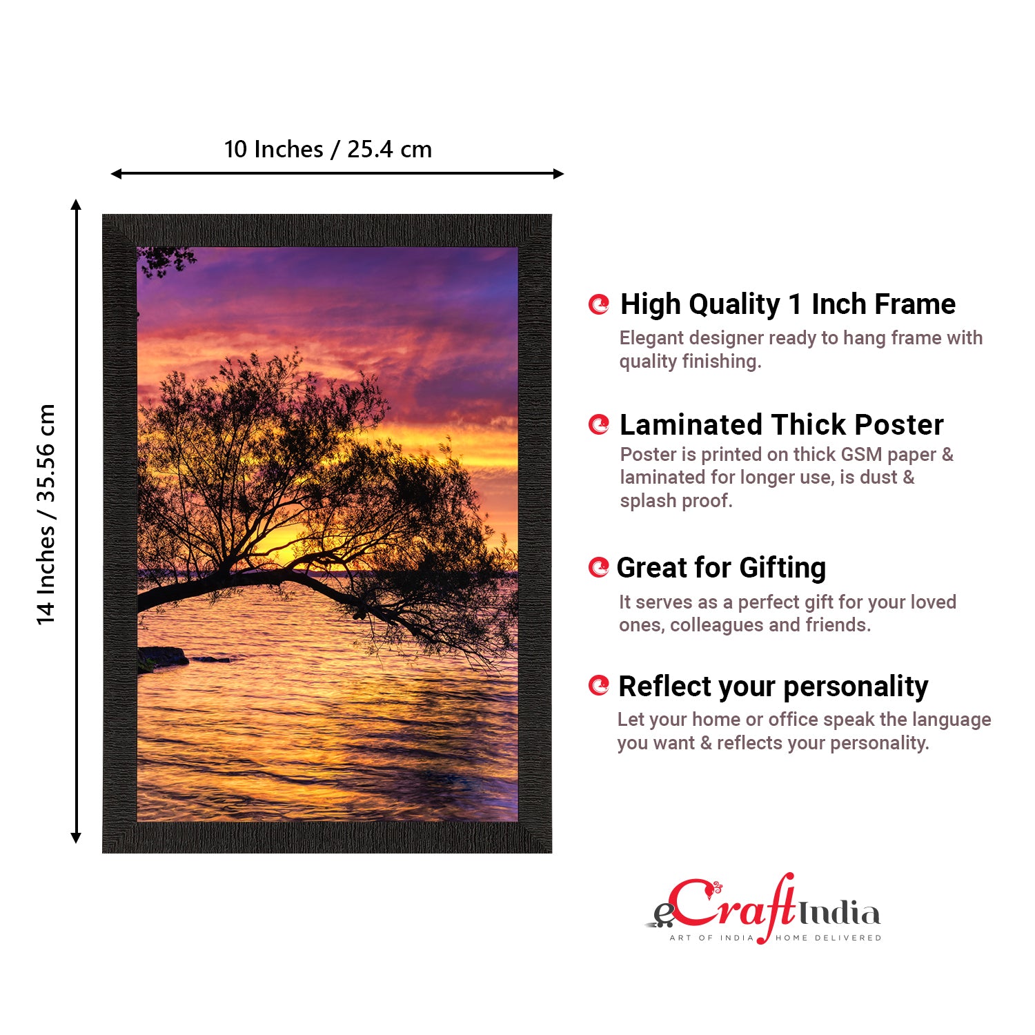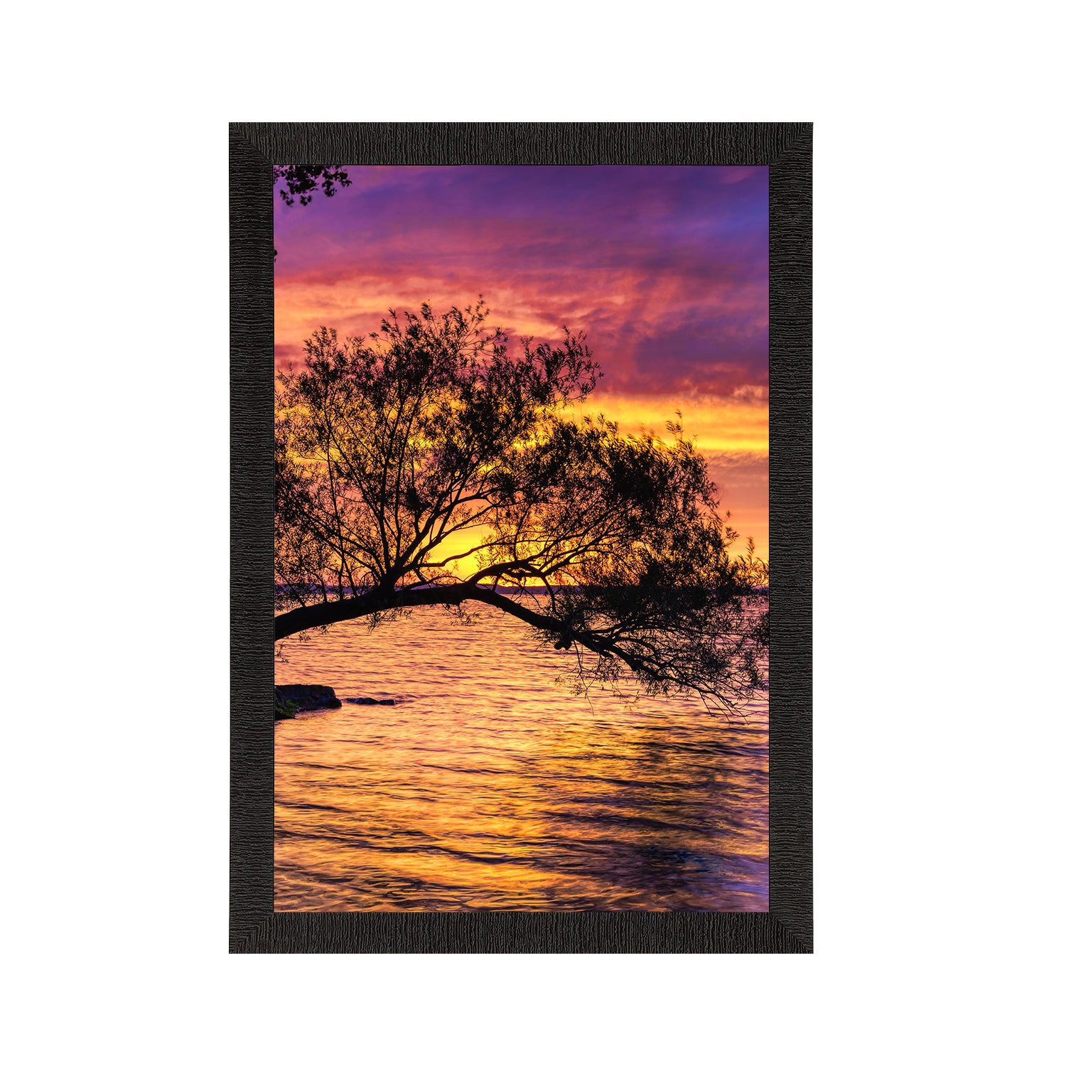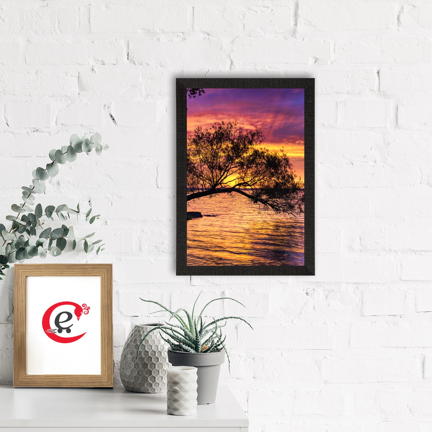 Product Description - Decorate your home & office walls with this artistic design eCraftIndia Beautiful Sunset Lake Satin Matt Texture UV Art Painting. Each design reflects the artistic qualities and time one has taken to design this painting. Exquisitely printed and framed, it is also a perfect gifting option for your colleagues, loved ones and family members. These frames don't include glass so it is very light weight and wet cloth can be used to clean it.