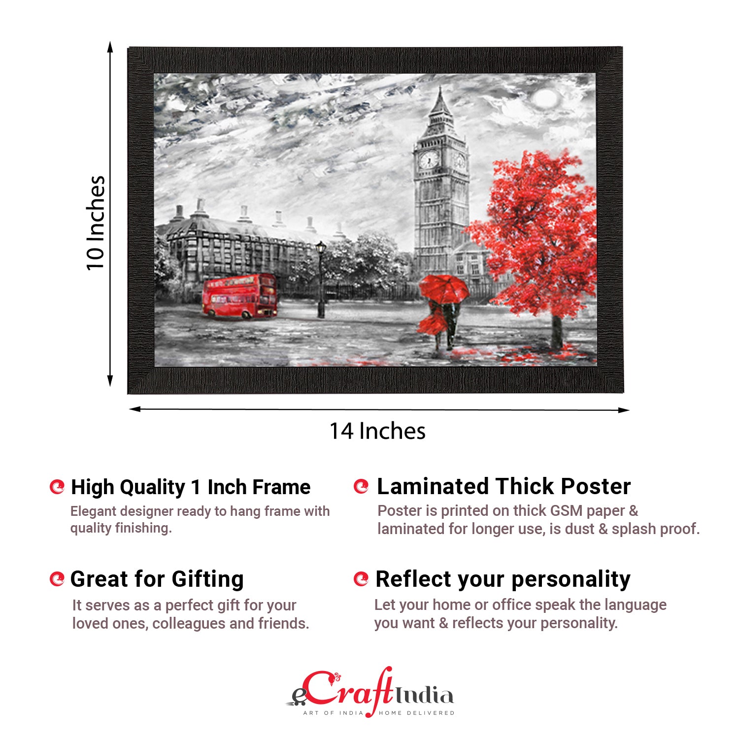 Product Description - Decorate your home & office walls with these artistic design Satin Matt Texture Framed UV Art Painting from eCraftIndia. Each design reflects the artistic qualities and time one has taken to design this painting. Exquisitely printed and framed, it is also a perfect gifting option for your colleagues, loved ones and family members. These frames don't include glass so it is very light weight and wet cloth can be used to clean it.