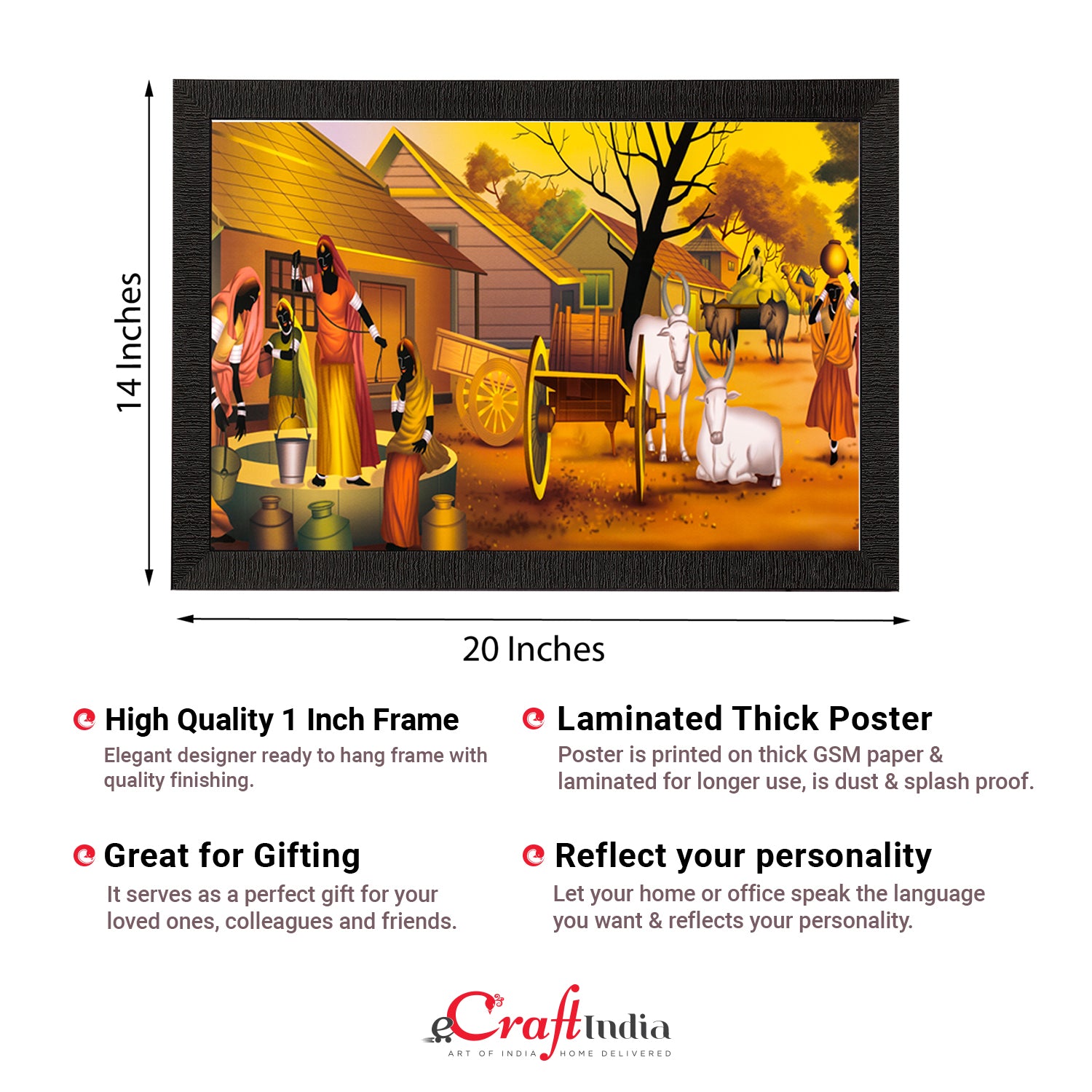 Product Description - Decorate your home & office walls with these artistic design Satin Matt Texture Framed UV Art Painting from eCraftIndia. Each design reflects the artistic qualities and time one has taken to design this painting Exquisitely printed and framed, it is also a perfect gifting option for your colleagues, loved ones and family members. These frames don't include glass so it is very light weight and wet cloth can be used to clean it.