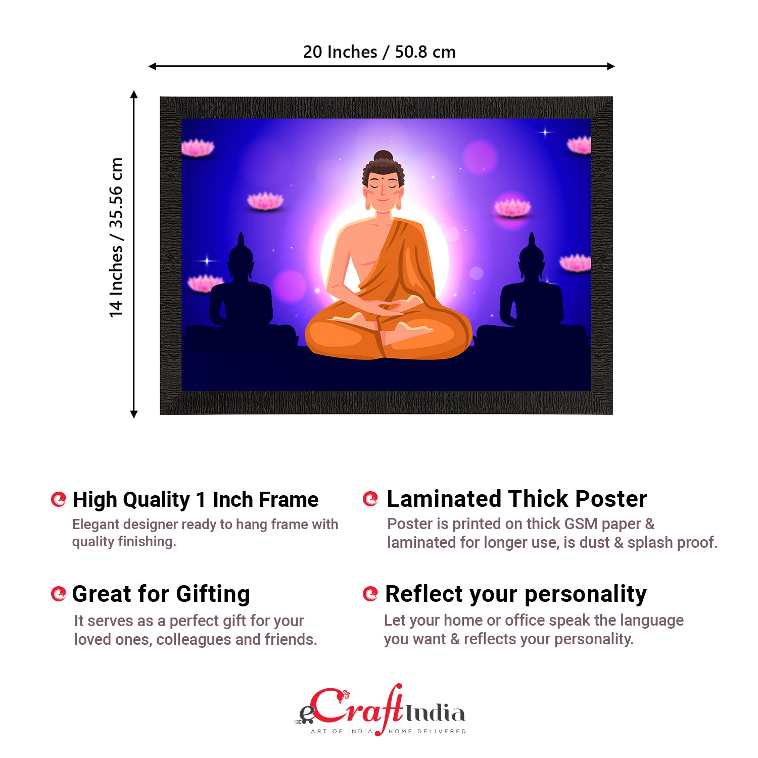 Product Description - Decorate your home & office walls with these artistic design Satin Matt Texture Framed UV Art Painting from eCraftIndia. Each design reflects the artistic qualities and time one has taken to design this painting. Exquisitely printed and framed, it is also a perfect gifting option for your colleagues, loved ones and family members. These frames don't include glass so it is very light weight and wet cloth can be used to clean it.