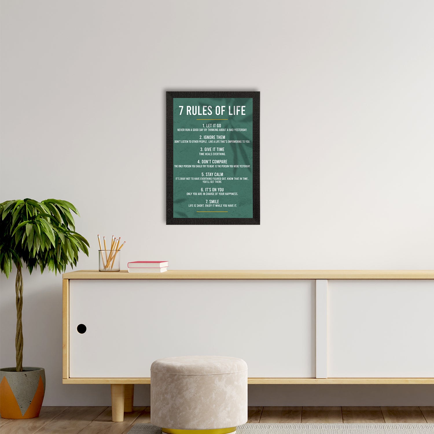 Package Content - One "7 Rules of Life " Motivational Quote Satin Matt Texture UV Art Painting
