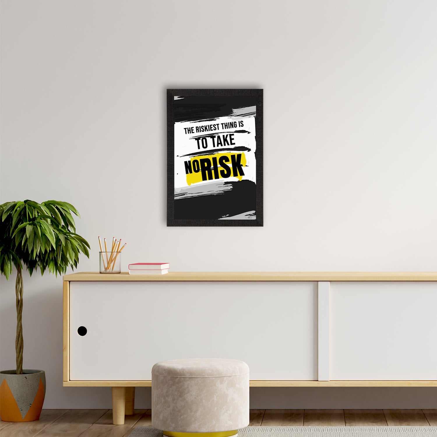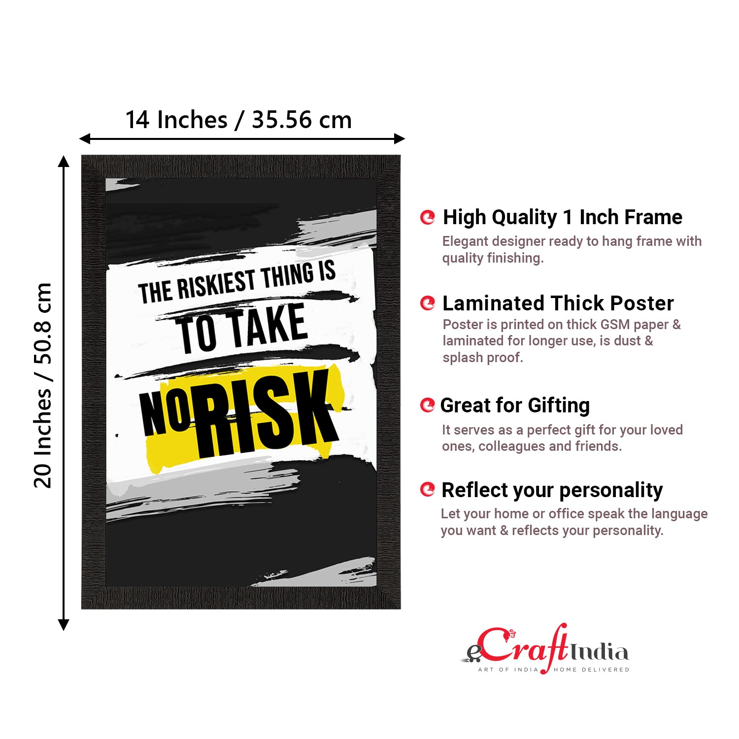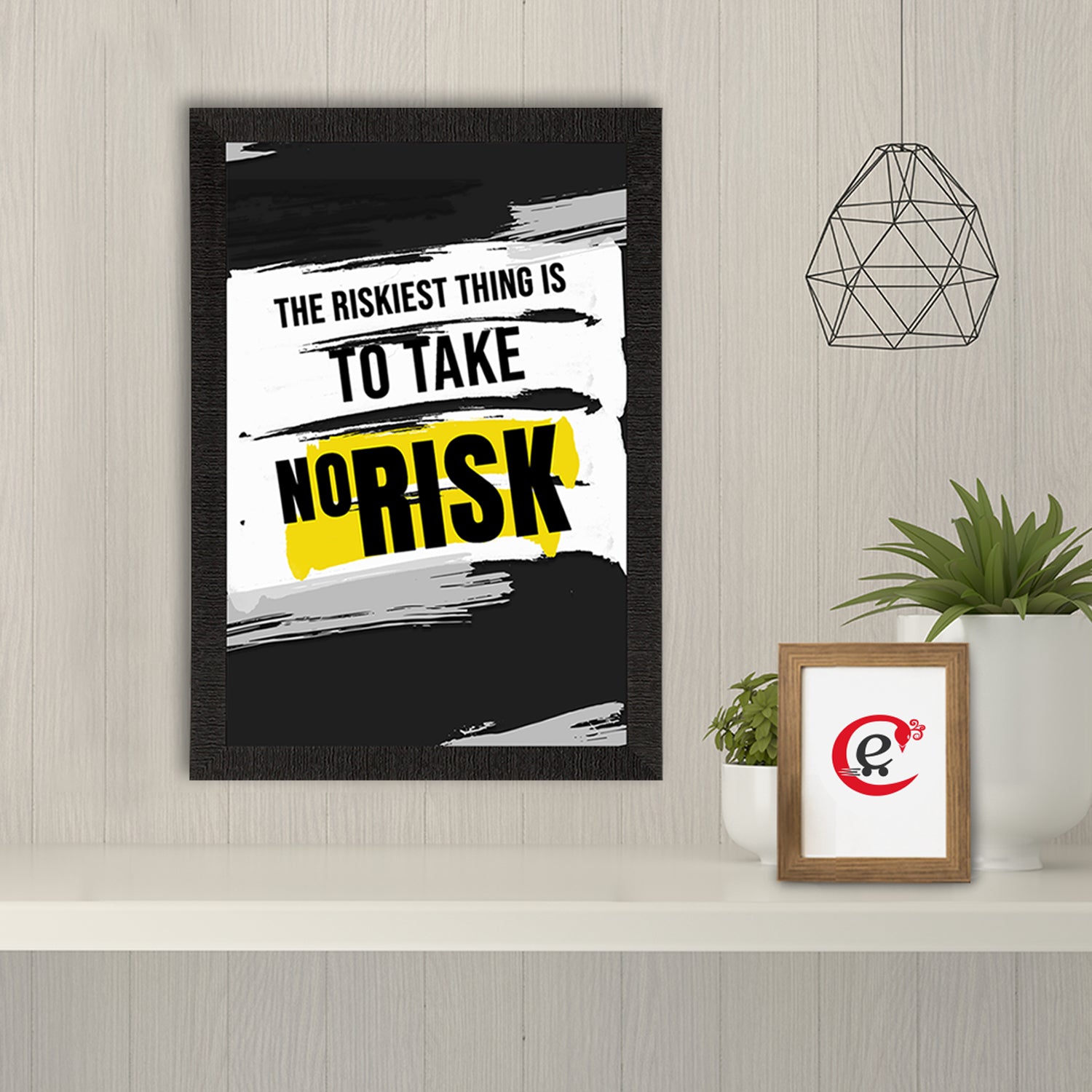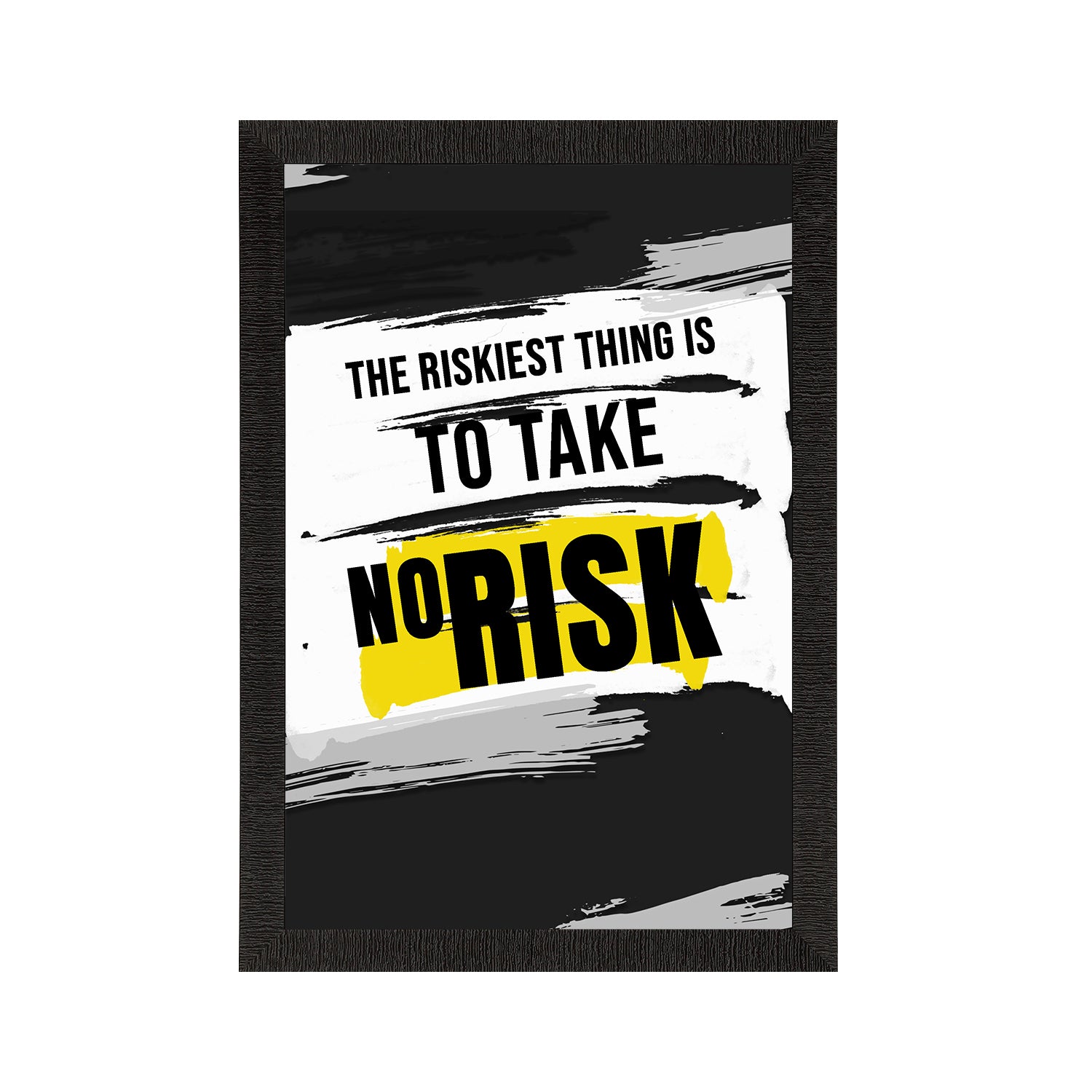 Product Description - Decorate your home & office walls with this artistic design eCraftIndia "The Riskiest thing" Motivational Quote Satin Matt Texture UV Art Painting. Each design reflects the artistic qualities and time one has taken to design this painting. Exquisitely printed and framed, it is also a perfect gifting option for your colleagues, loved ones and family members. These frames don't include glass so it is very light weight and wet cloth can be used to clean it.