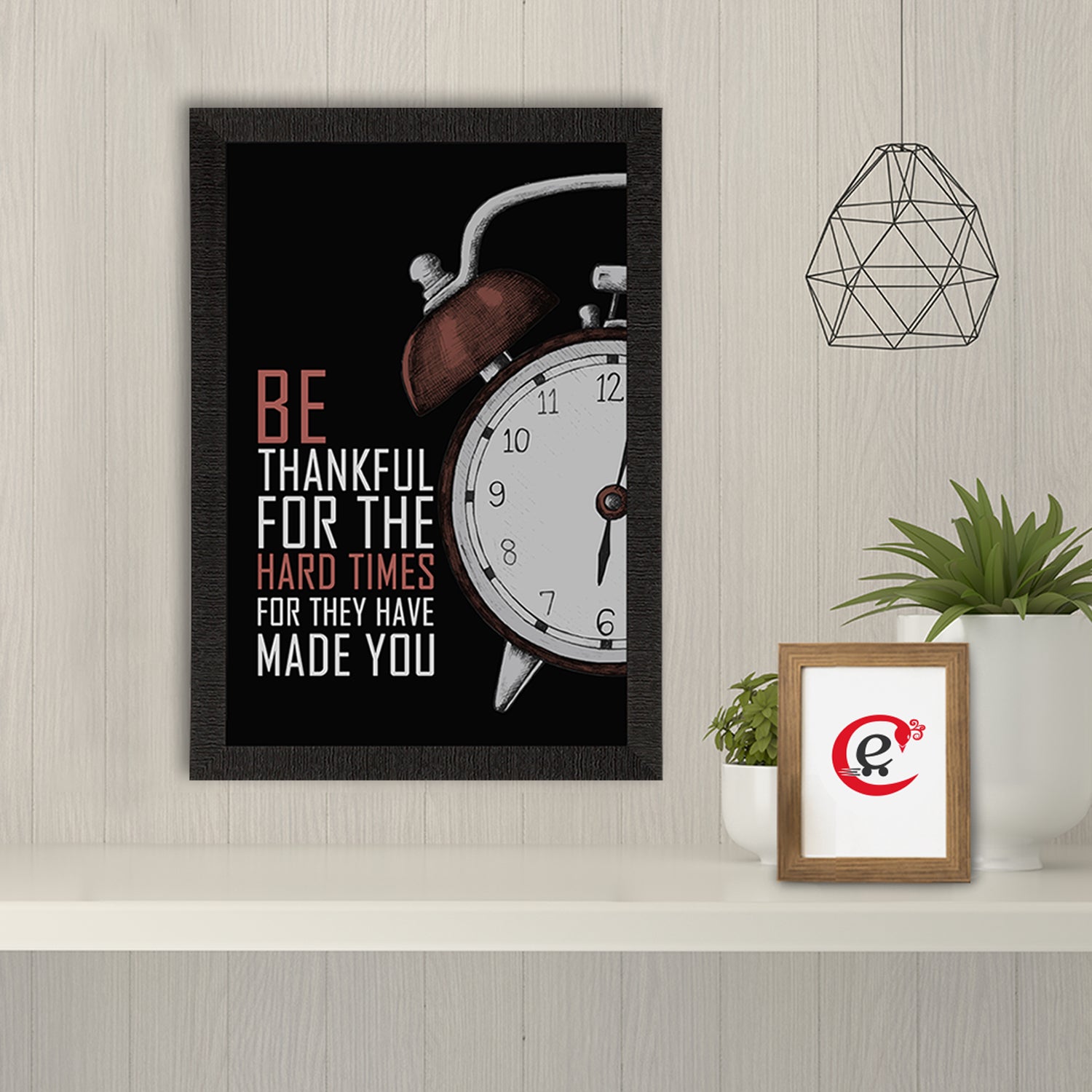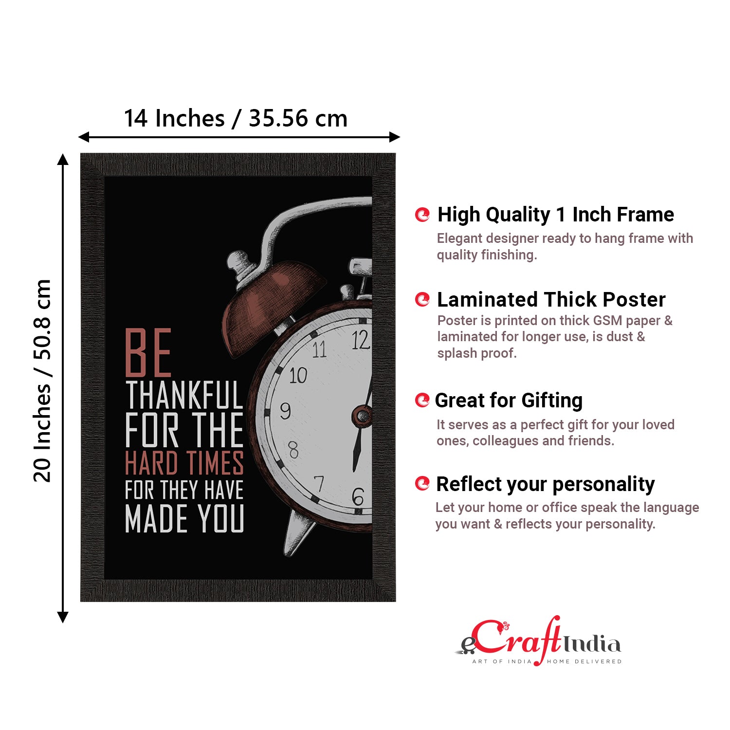 Product Description - Decorate your home & office walls with this artistic design eCraftIndia "Hard Time" Motivational Quote Satin Matt Texture UV Art Painting. Each design reflects the artistic qualities and time one has taken to design this painting. Exquisitely printed and framed, it is also a perfect gifting option for your colleagues, loved ones and family members. These frames don't include glass so it is very light weight and wet cloth can be used to clean it.