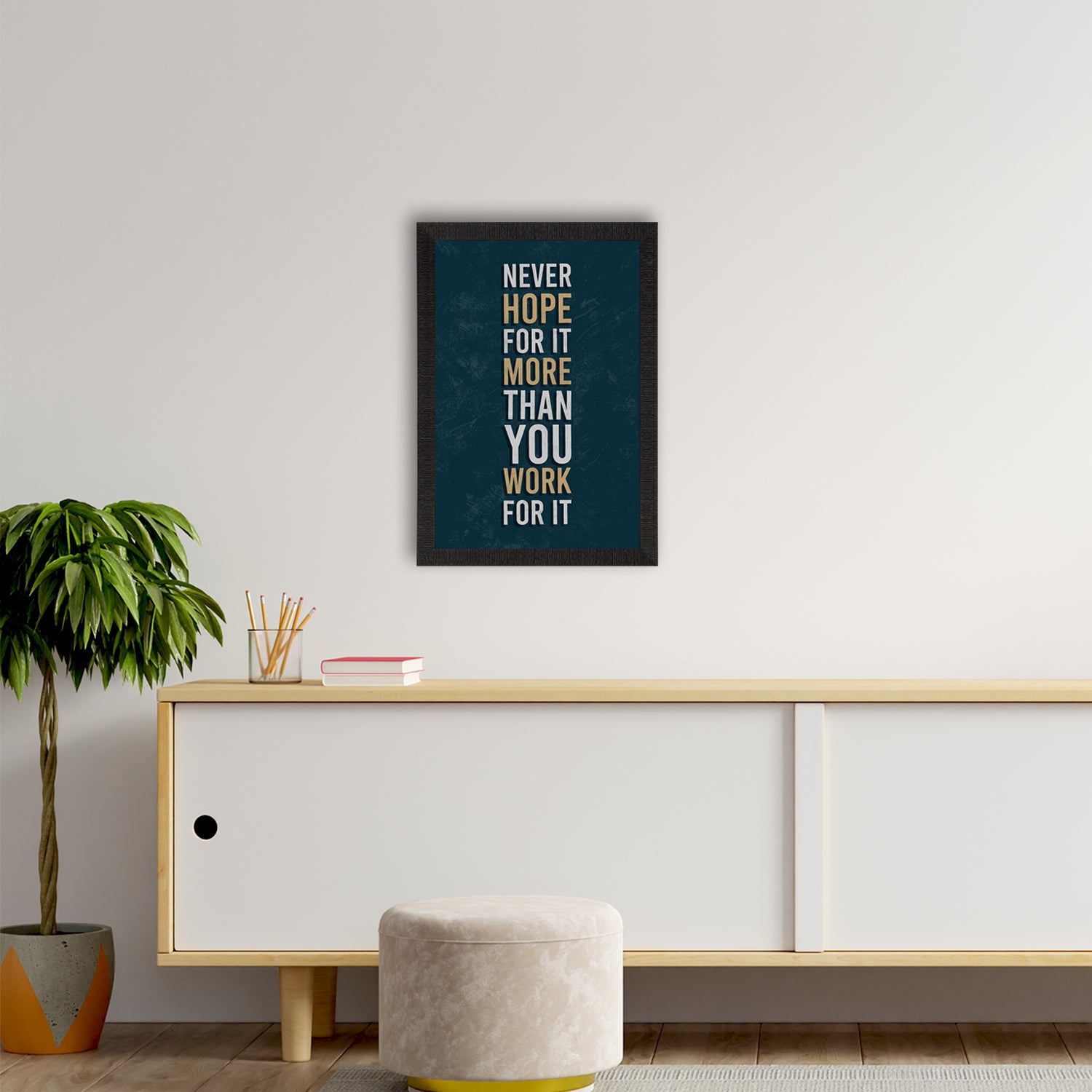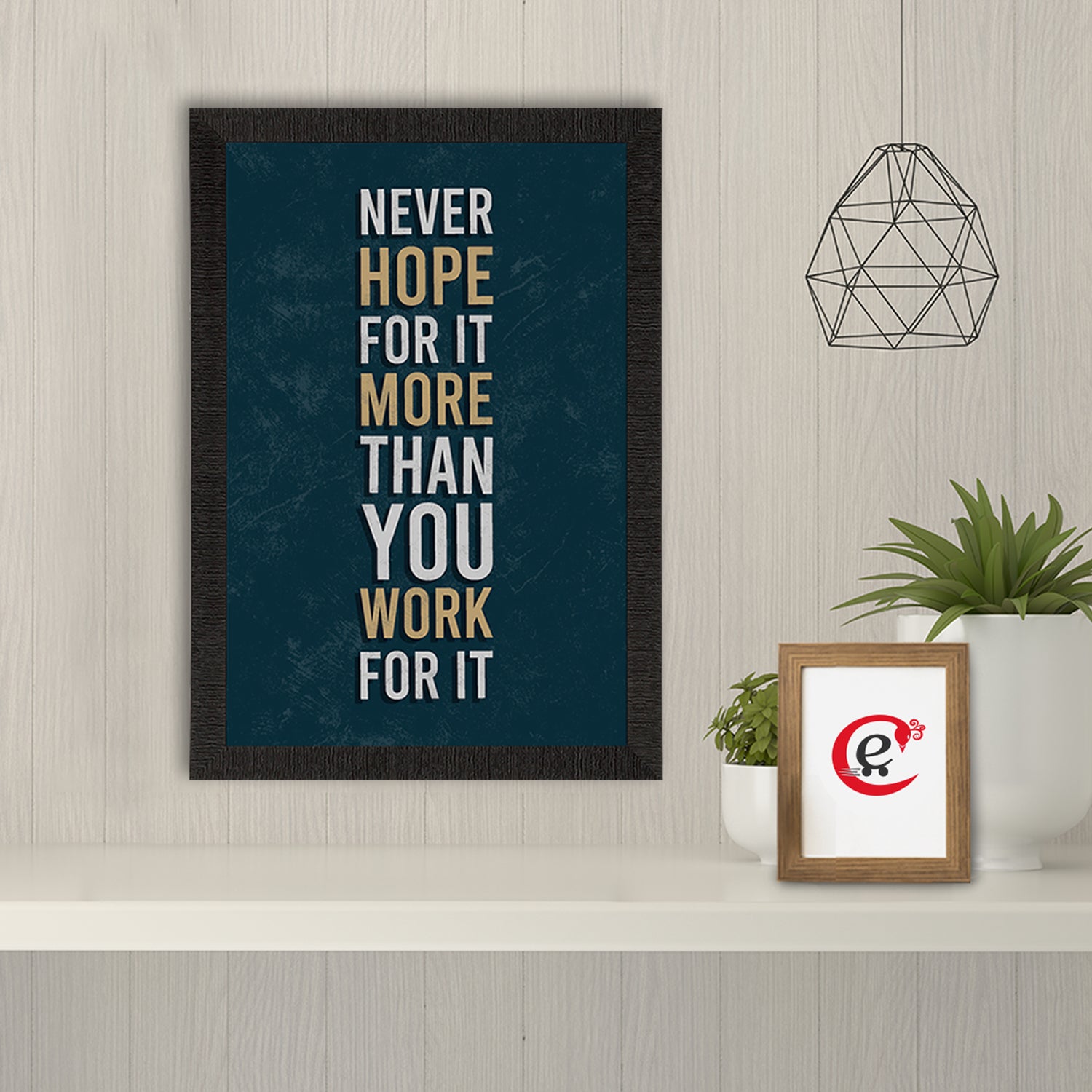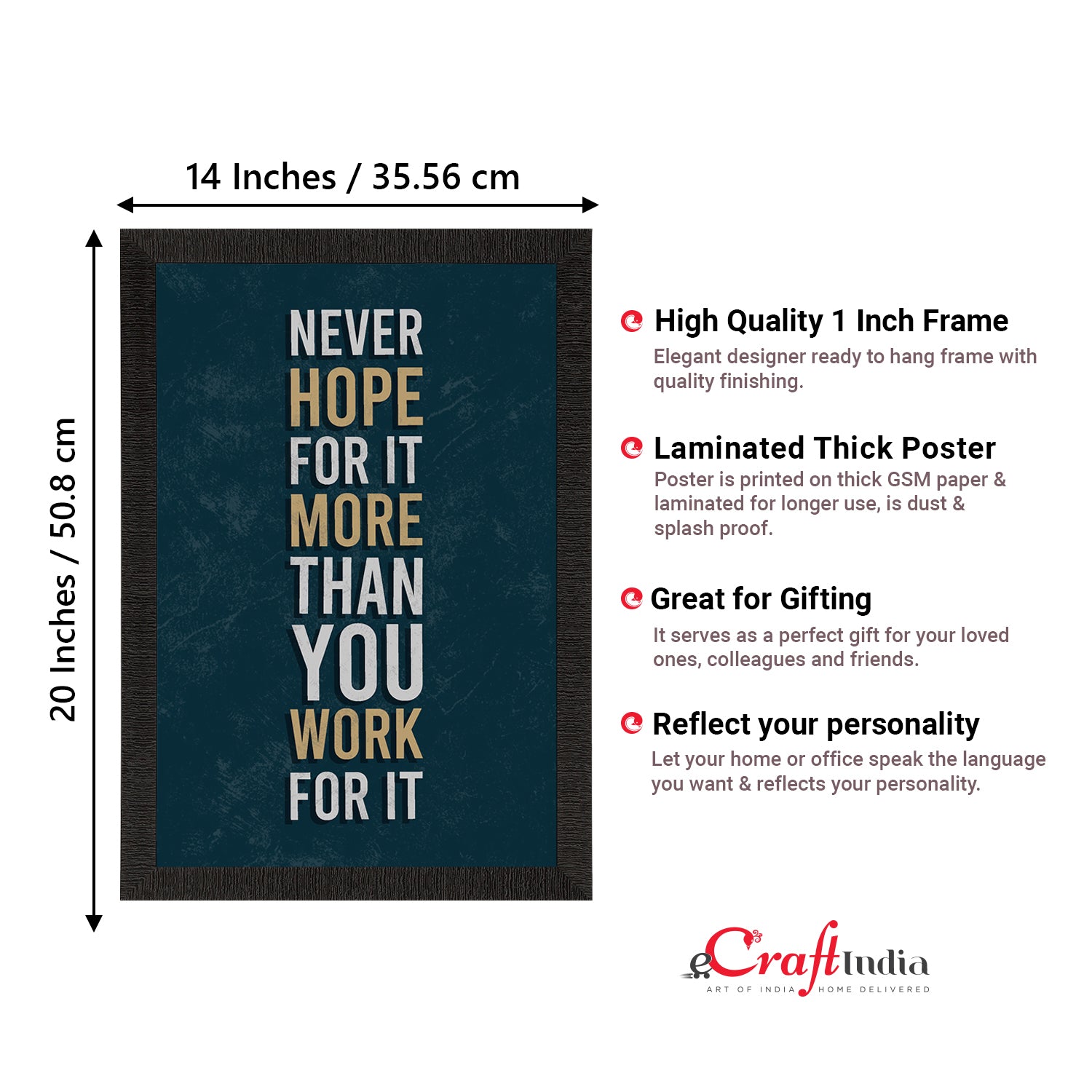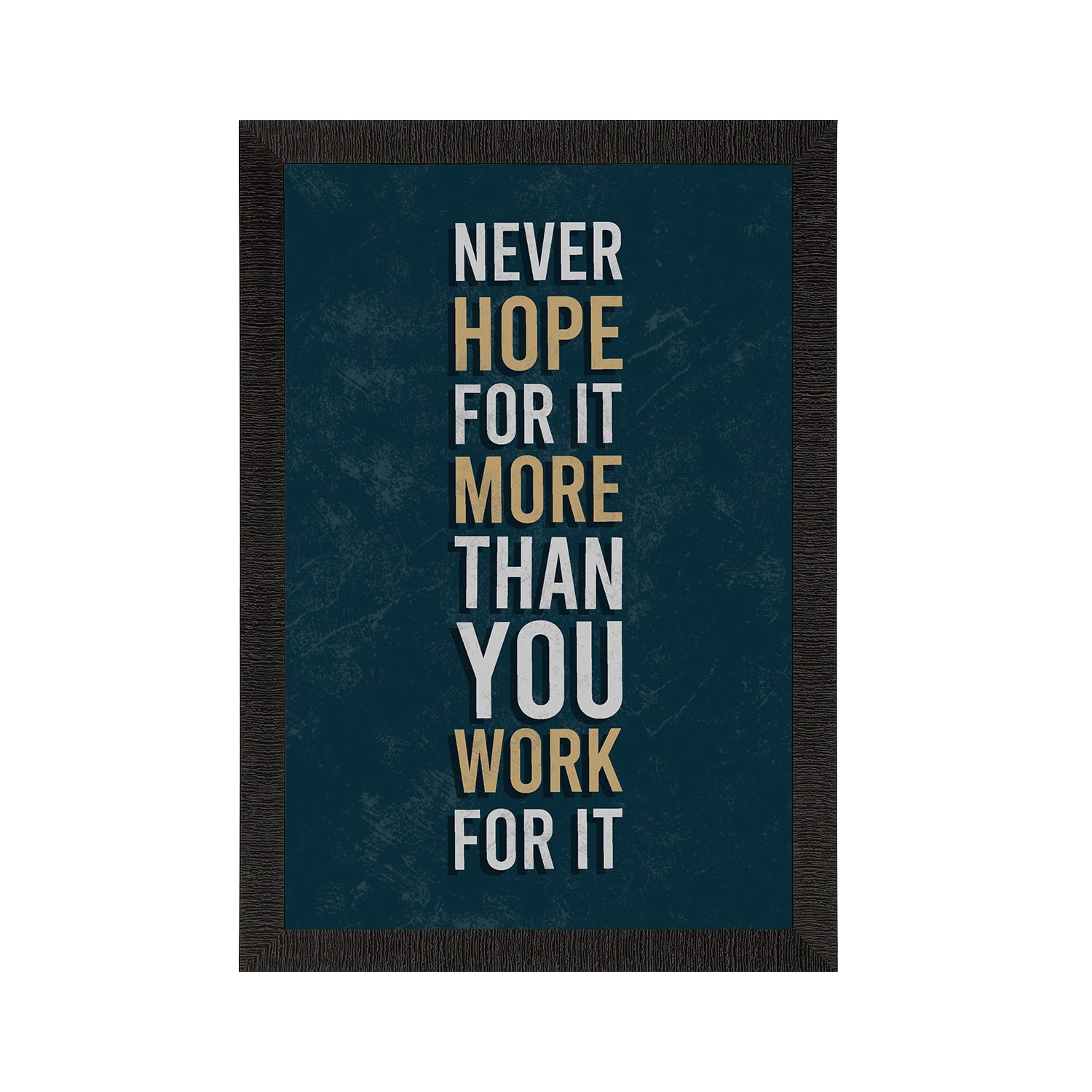 Product Description - Decorate your home & office walls with this artistic design eCraftIndia Hope Motivational Quote Satin Matt Texture UV Art Painting. Each design reflects the artistic qualities and time one has taken to design this painting. Exquisitely printed and framed, it is also a perfect gifting option for your colleagues, loved ones and family members. These frames don't include glass so it is very light weight and wet cloth can be used to clean it.