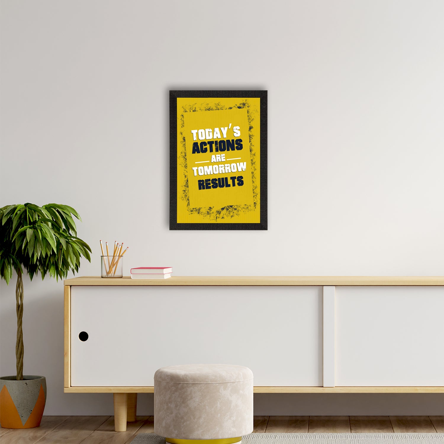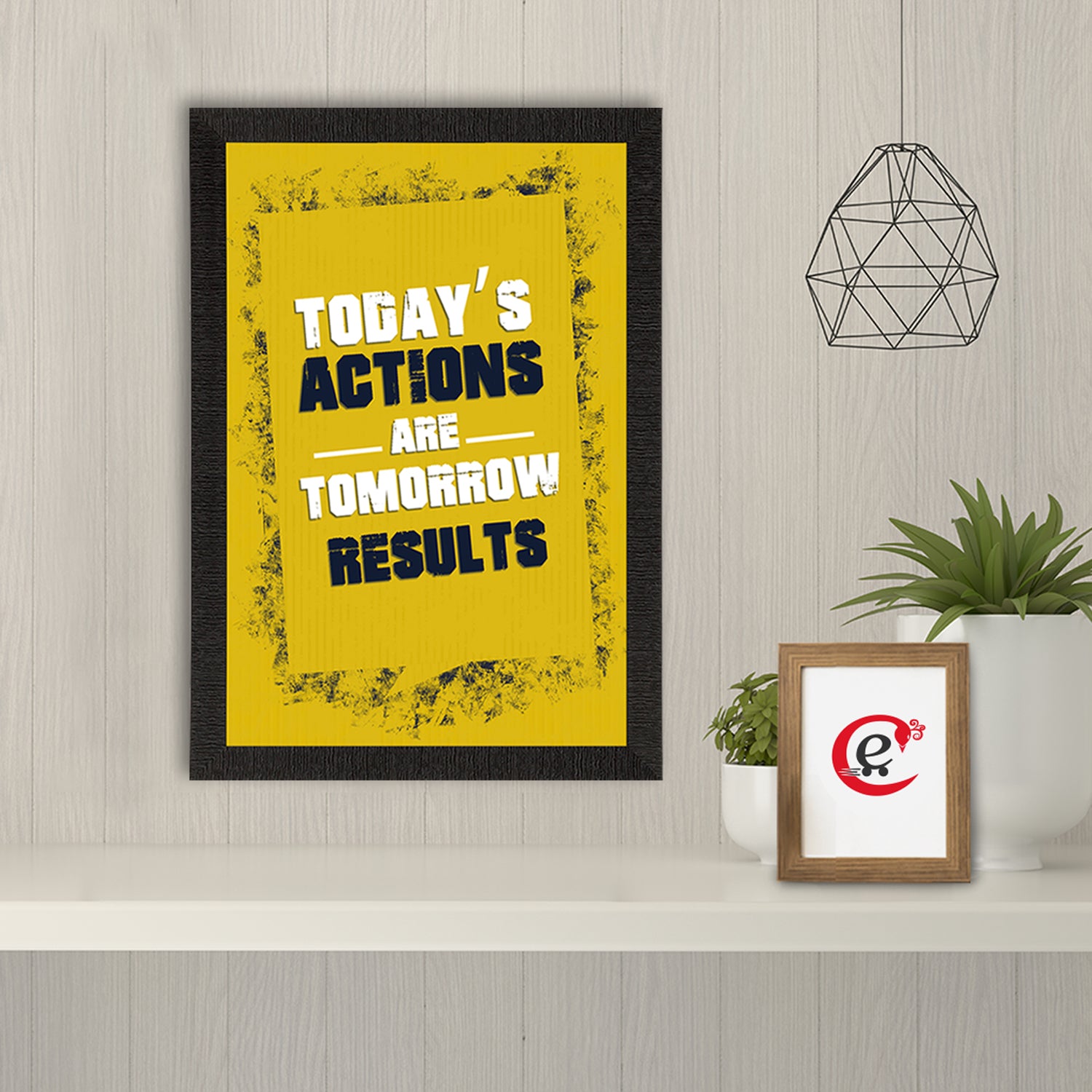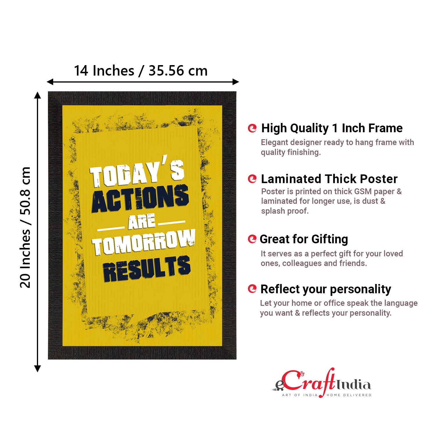 Product Description - Decorate your home & office walls with this artistic design eCraftIndia "Today's Action" Motivational Quote Satin Matt Texture UV Art Painting. Each design reflects the artistic qualities and time one has taken to design this painting. Exquisitely printed and framed, it is also a perfect gifting option for your colleagues, loved ones and family members. These frames don't include glass so it is very light weight and wet cloth can be used to clean it.