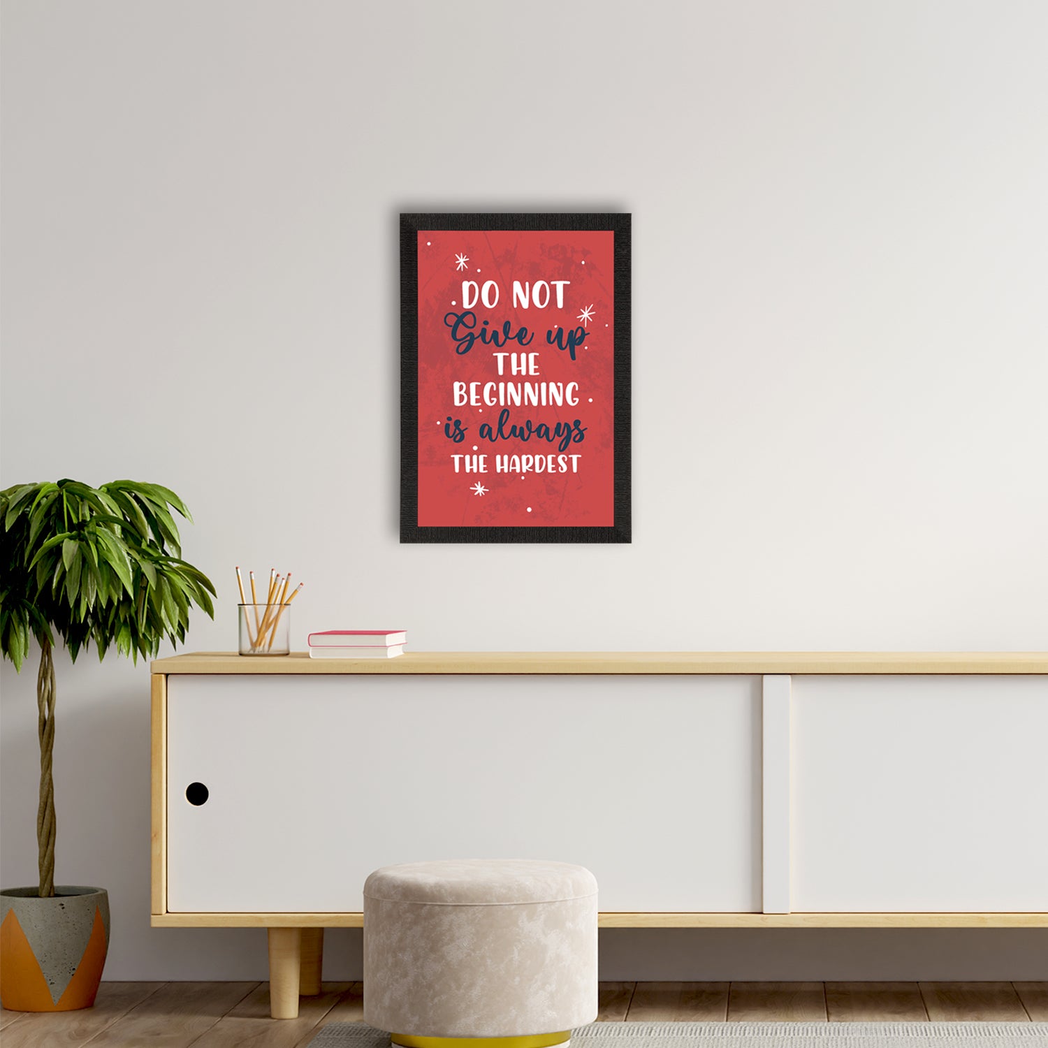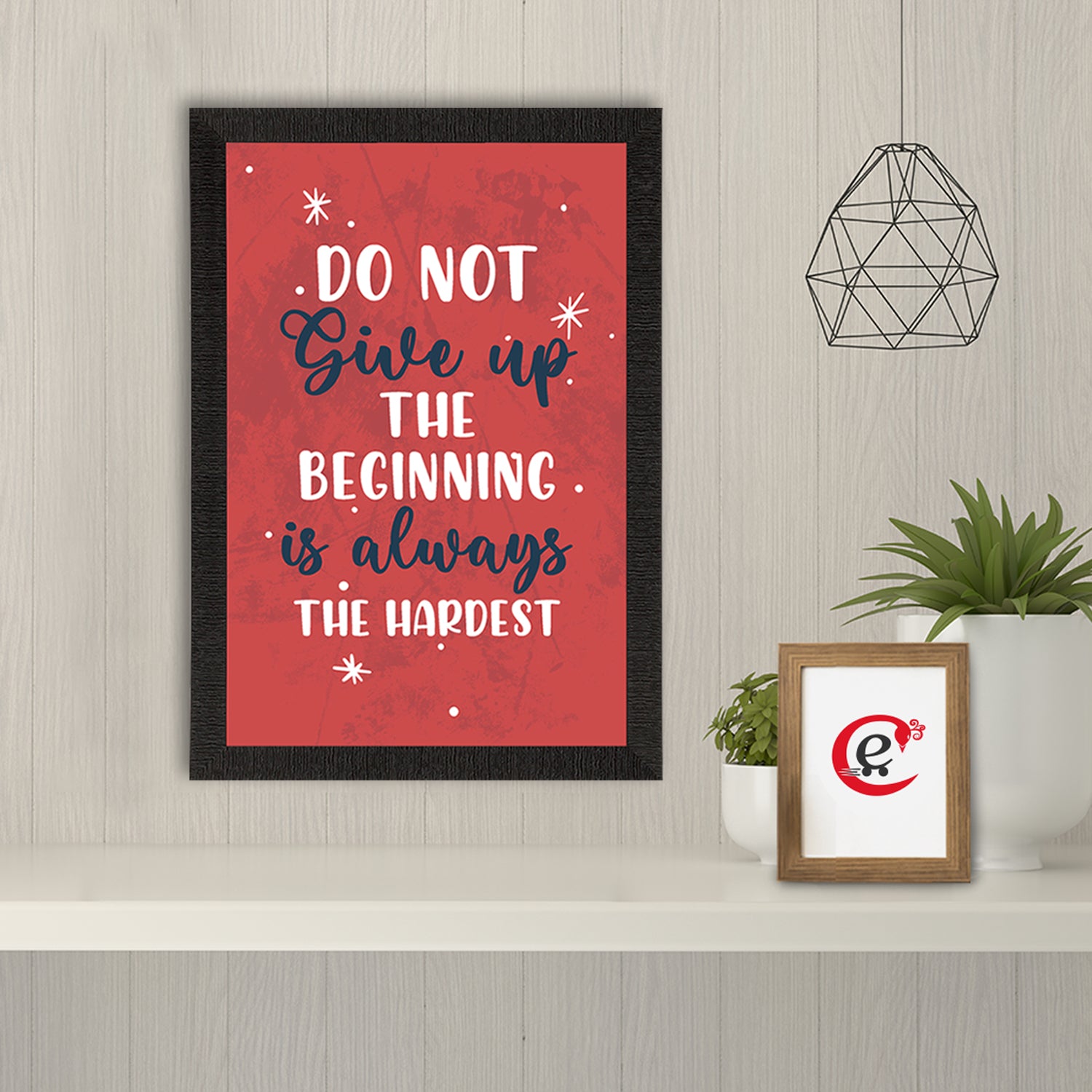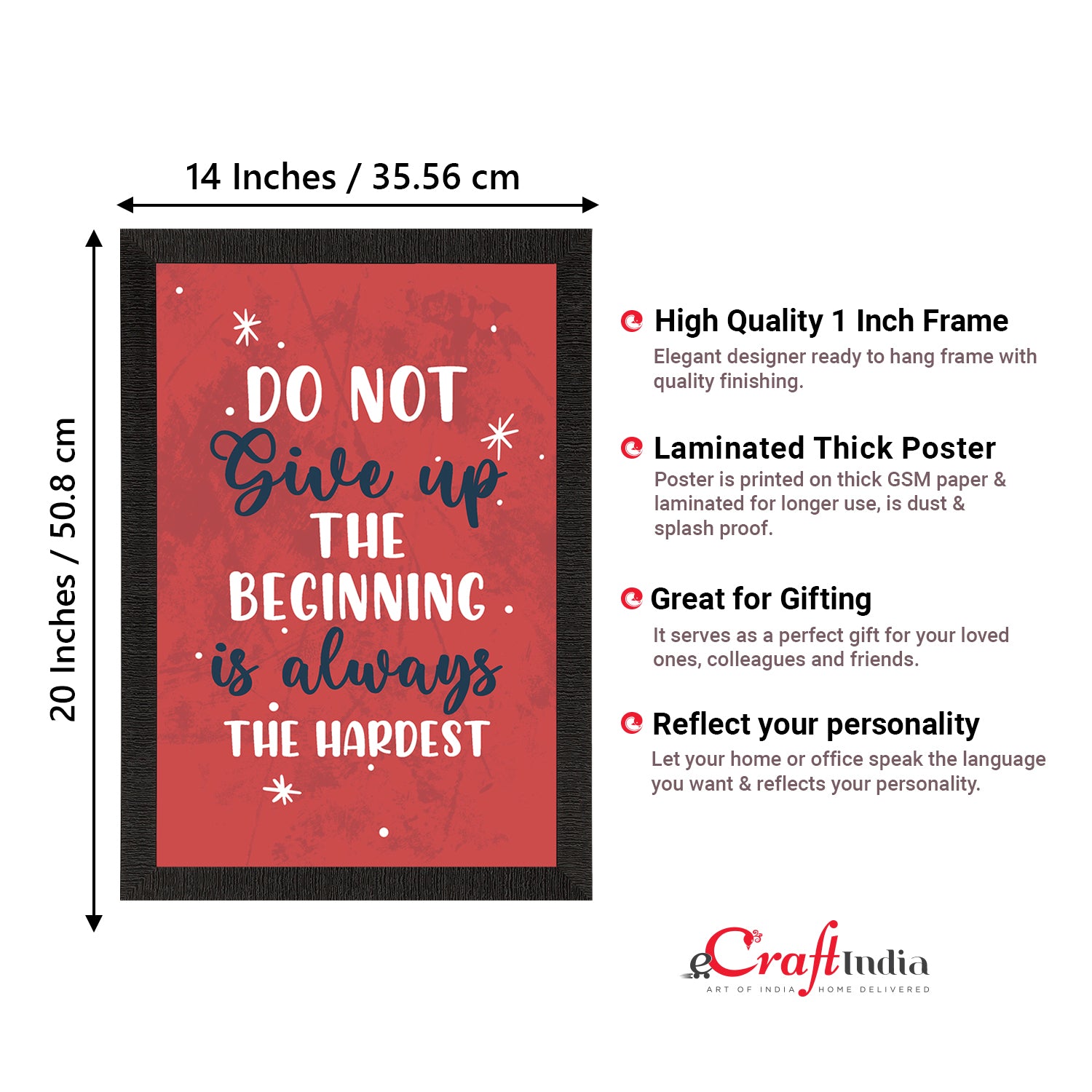 Product Description - Decorate your home & office walls with this artistic design eCraftIndia "Do Not Give Up" Motivational Quote Satin Matt Texture UV Art Painting. Each design reflects the artistic qualities and time one has taken to design this painting. Exquisitely printed and framed, it is also a perfect gifting option for your colleagues, loved ones and family members. These frames don't include glass so it is very light weight and wet cloth can be used to clean it.