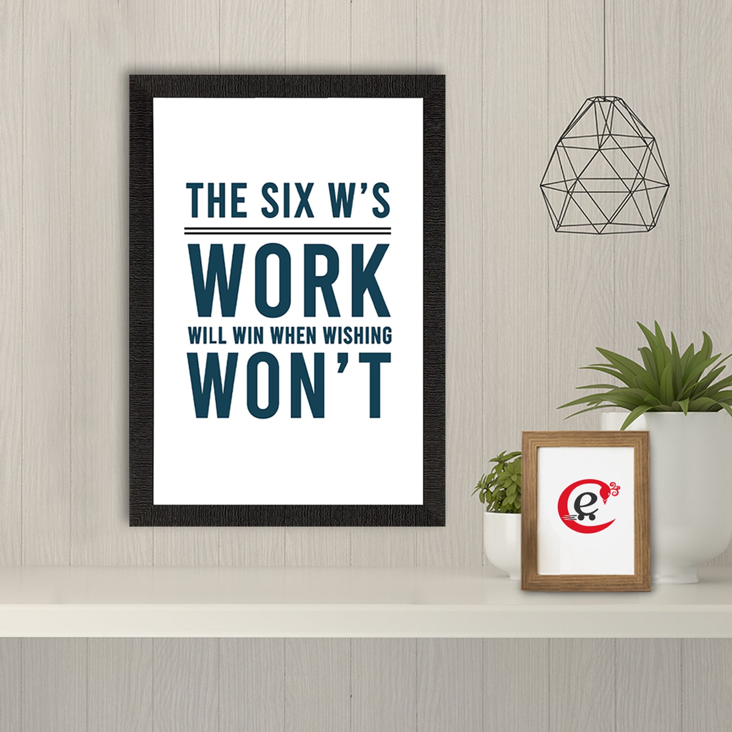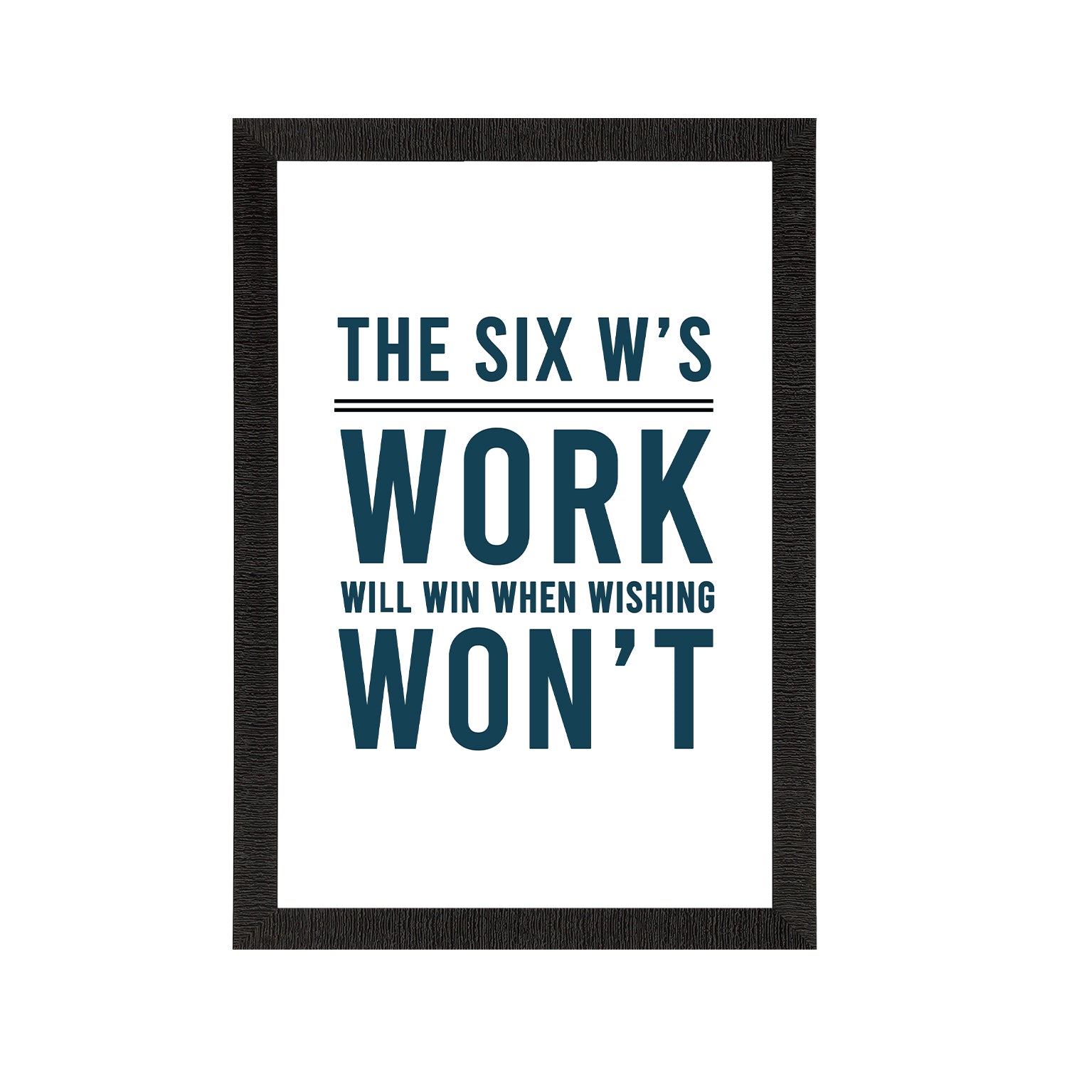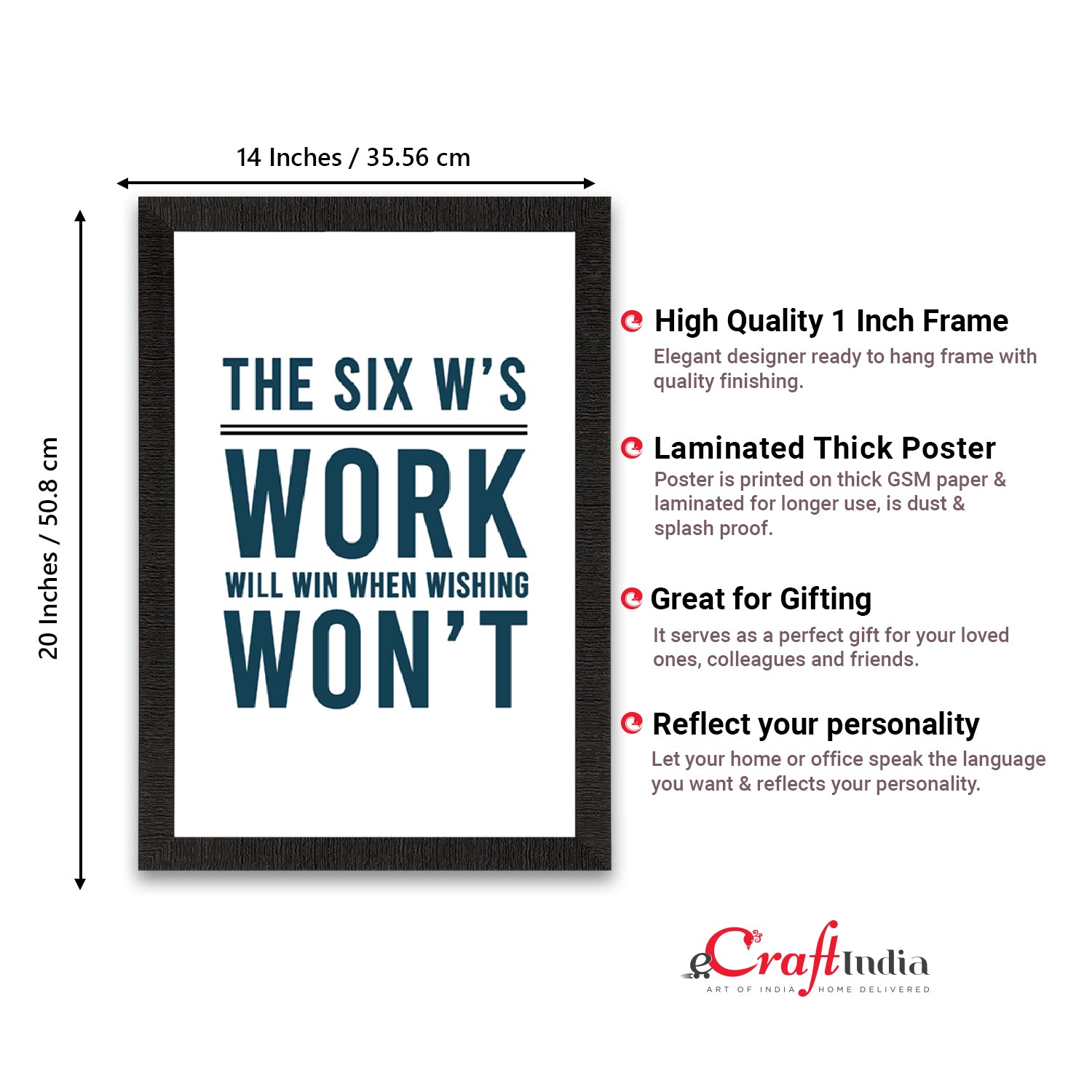 Product Description - Decorate your home & office walls with this artistic design eCraftIndia "The Six W's" Motivational Quote Satin Matt Texture UV Art Painting. Each design reflects the artistic qualities and time one has taken to design this painting. Exquisitely printed and framed, it is also a perfect gifting option for your colleagues, loved ones and family members. These frames don't include glass so it is very light weight and wet cloth can be used to clean it.