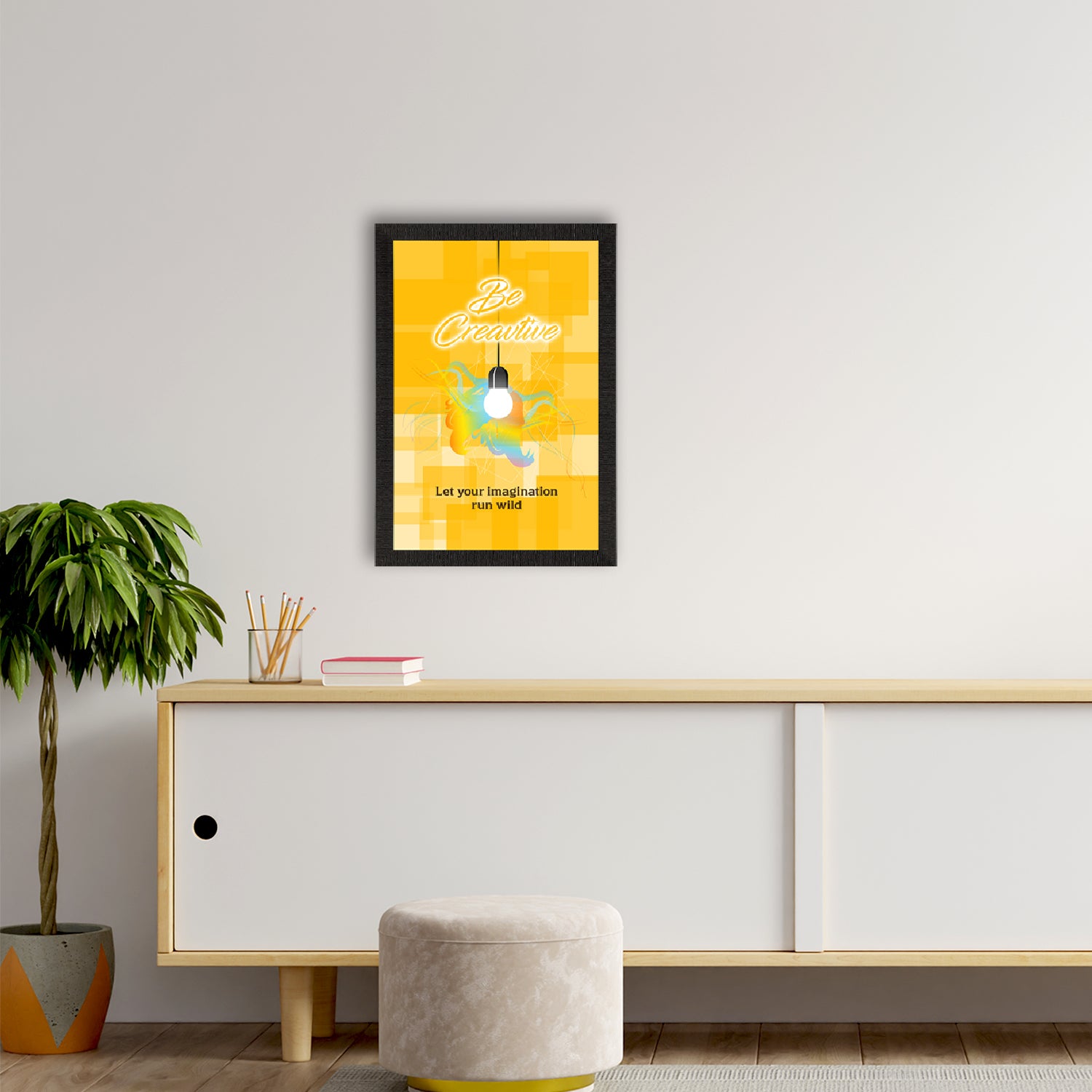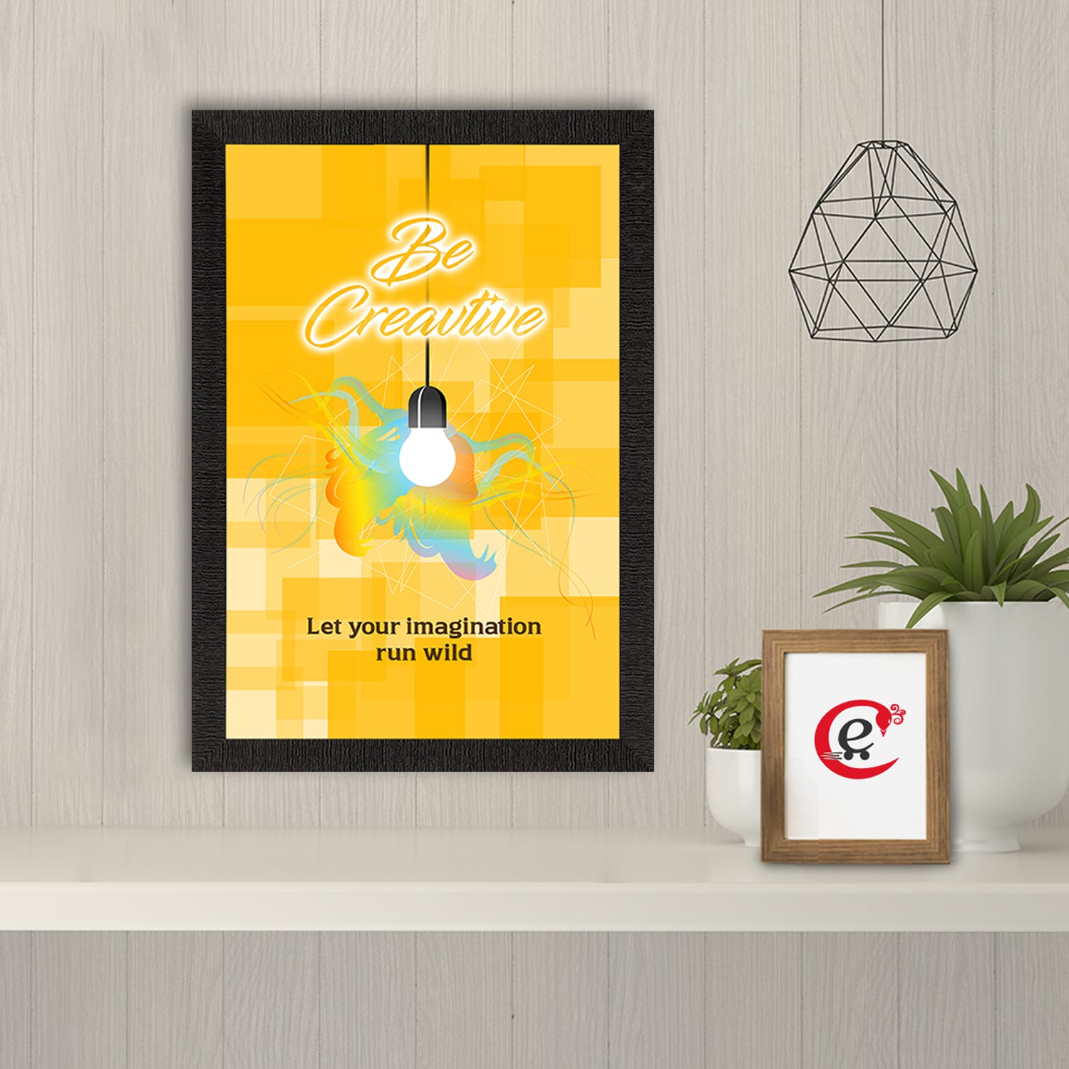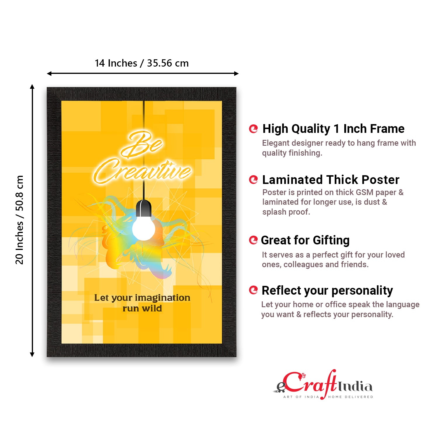 Product Description - Decorate your home & office walls with this artistic design eCraftIndia "Be Creative" Motivational Quote Satin Matt Texture UV Art Painting. Each design reflects the artistic qualities and time one has taken to design this painting. Exquisitely printed and framed, it is also a perfect gifting option for your colleagues, loved ones and family members. These frames don't include glass so it is very light weight and wet cloth can be used to clean it.