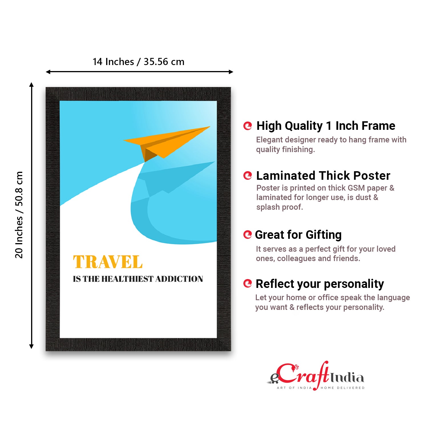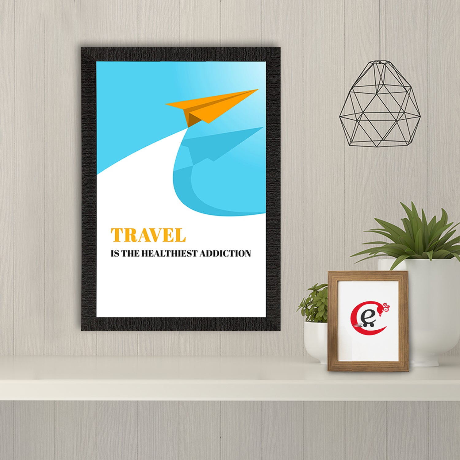 Product Description - Decorate your home & office walls with this artistic design eCraftIndia "Travel" Motivational Quote Satin Matt Texture UV Art Painting. Each design reflects the artistic qualities and time one has taken to design this painting. Exquisitely printed and framed, it is also a perfect gifting option for your colleagues, loved ones and family members. These frames don't include glass so it is very light weight and wet cloth can be used to clean it.