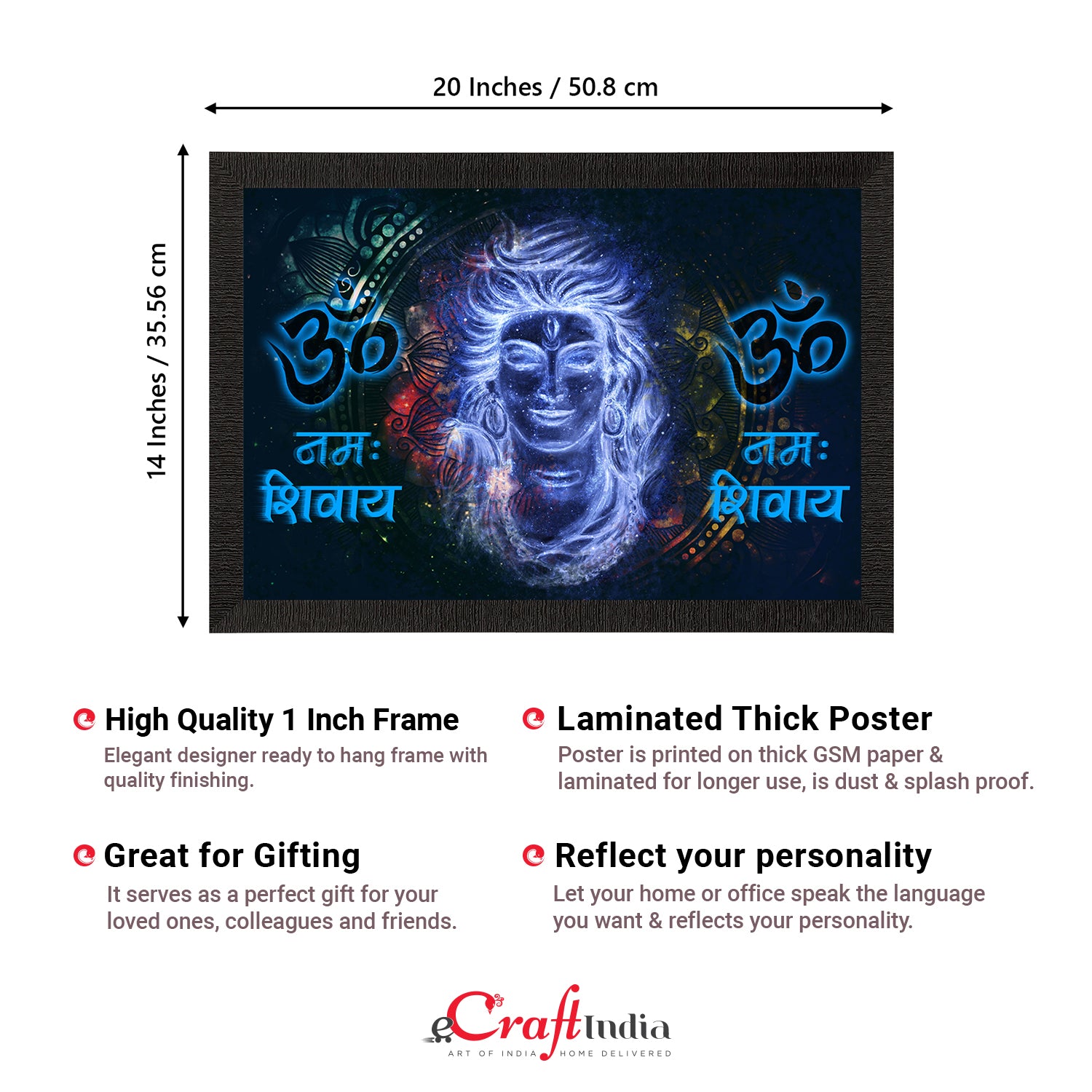 Product Description - Decorate your home & office walls with these artistic design Satin Matt Texture Framed UV Art Painting from eCraftIndia. Each design reflects the artistic qualities and time one has taken to design this painting. Exquisitely printed and framed, it is also a perfect gifting option for your colleagues, loved ones and family members. These frames don't include glass so it is very light weight and wet cloth can be used to clean it.
