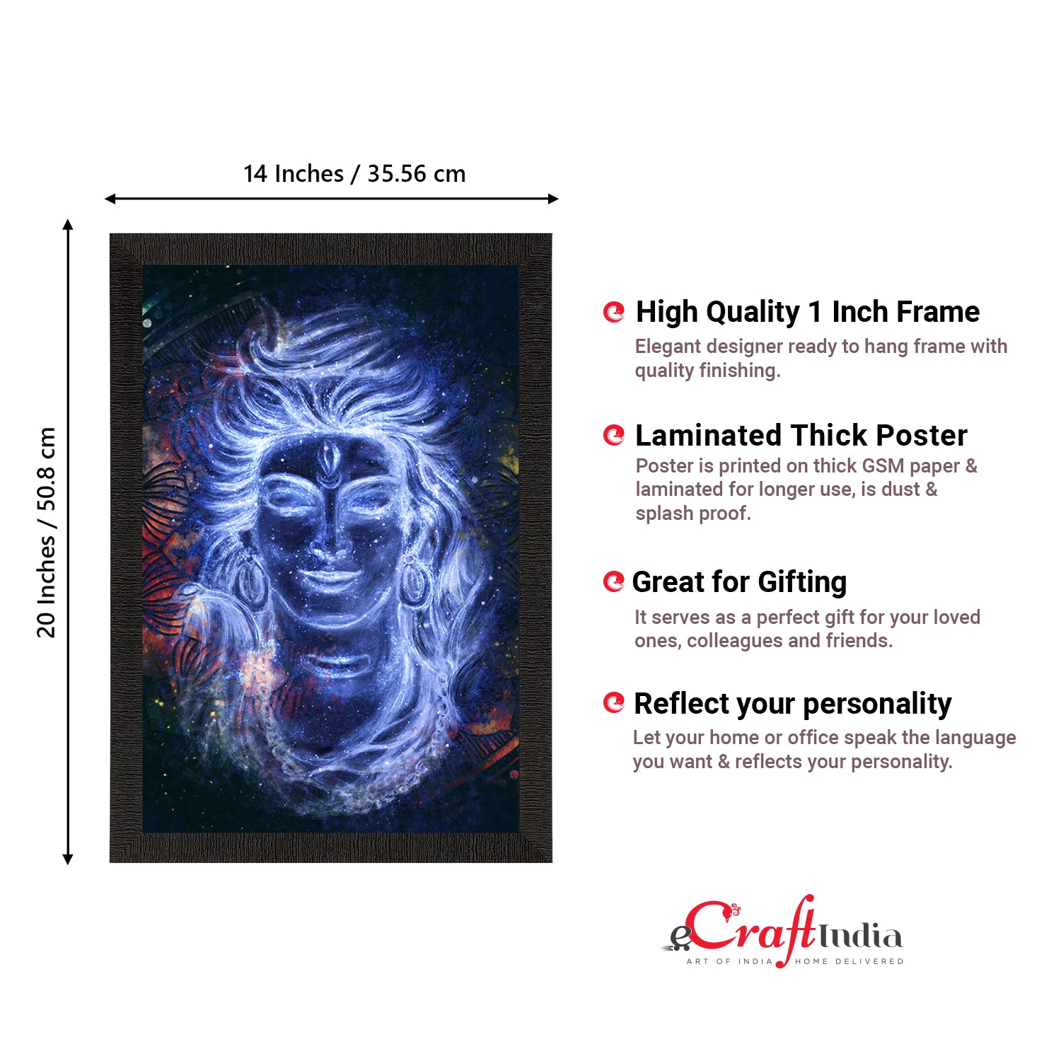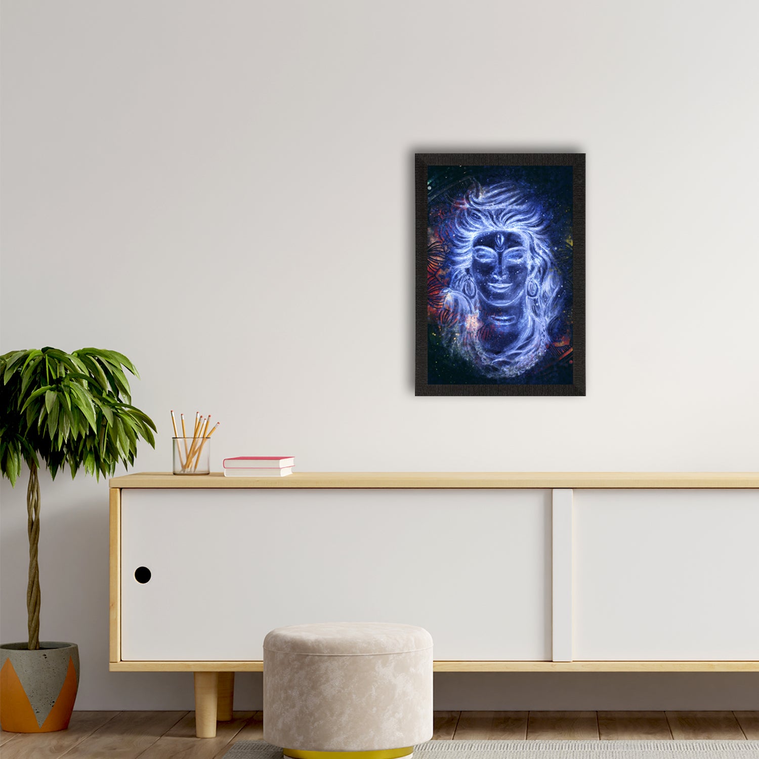 Product Description - Lord Shiva, the Lord of cattle & the destroyer of the universe symbolizes different powers & forms. Lord Shiva is said to depict eternal energy & responsiveness & all of these traits can be seen in our Lord Shiva framed paintings. Therefore, these framed wall paintings make a great gift option for your family & friends. Our Lord Shiva UV matt textured framed paintings are available in sets as well that will help you incorporate the entire wall space creatively. Each design reflects the artistic qualities and time one has taken to design this painting. These frames don't include glass so it is very lightweight and wet cloth can be used to clean them. Exquisitely printed and framed, it is also a perfect gifting option for your colleagues, loved ones, and family members.