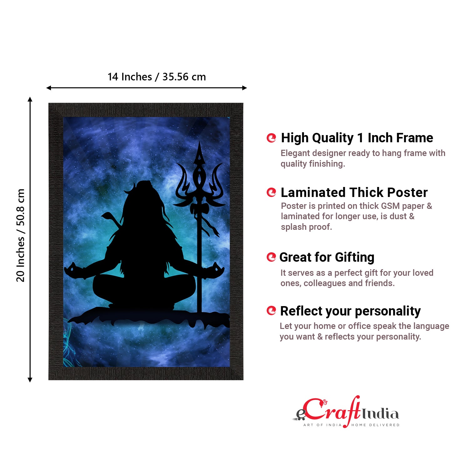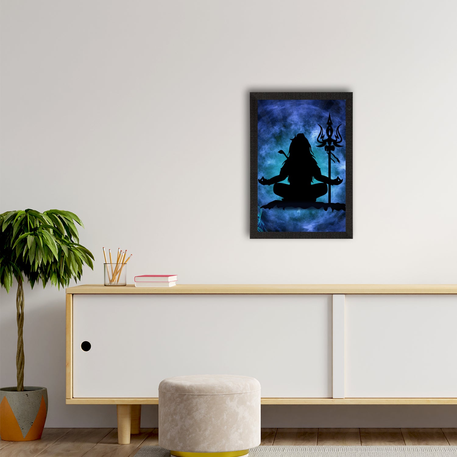Product Description - Lord Shiva, the Lord of cattle & the destroyer of the universe symbolizes different powers & forms. Lord Shiva is said to depict eternal energy & responsiveness & all of these traits can be seen in our Lord Shiva framed paintings. Therefore, these framed wall paintings make a great gift option for your family & friends. Our Lord Shiva UV matt textured framed paintings are available in sets as well that will help you incorporate the entire wall space creatively. Each design reflects the artistic qualities and time one has taken to design this painting. These frames don't include glass so it is very lightweight and wet cloth can be used to clean them. Exquisitely printed and framed, it is also a perfect gifting option for your colleagues, loved ones, and family members.