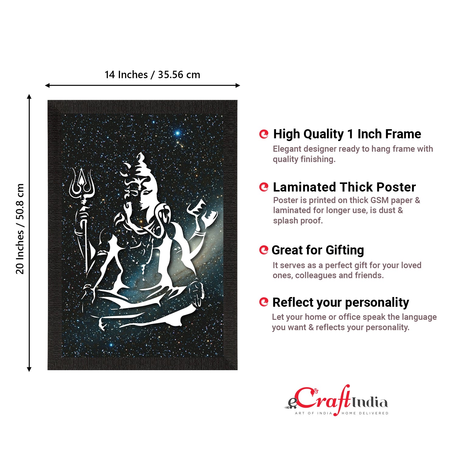 Product Description - Lord Shiva, the Lord of cattle & the destroyer of the universe symbolizes different powers & forms. Lord Shiva is said to depict eternal energy & responsiveness & all of these traits can be seen in our Lord Shiva framed paintings. Therefore, these framed wall paintings make a great gift option for your family & friends. Our Lord Shiva UV matt textured framed paintings are available in sets as well that will help you incorporate the entire wall space creatively. Each design reflects the artistic qualities and time one has taken to design this painting. These frames don't include glass so it is very lightweight and wet cloth can be used to clean them. Exquisitely printed and framed, it is also a perfect gifting option for your colleagues, loved ones, and family members.