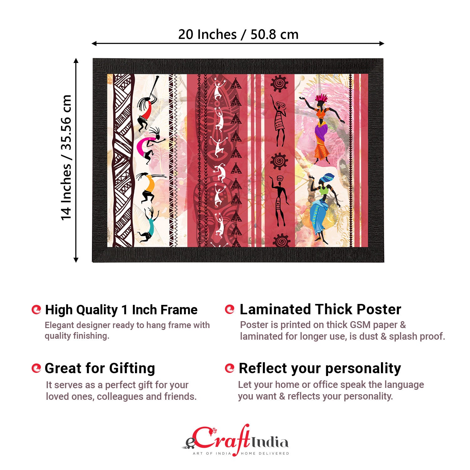 Product Description - Decorate your home & office walls with these artistic design Satin Matt Texture Framed UV Art Painting from eCraftIndia. Each design reflects the artistic qualities and time one has taken to design this painting. Exquisitely printed and framed, it is also a perfect gifting option for your colleagues, loved ones and family members. These frames don't include glass so it is very light weight and wet cloth can be used to clean it.