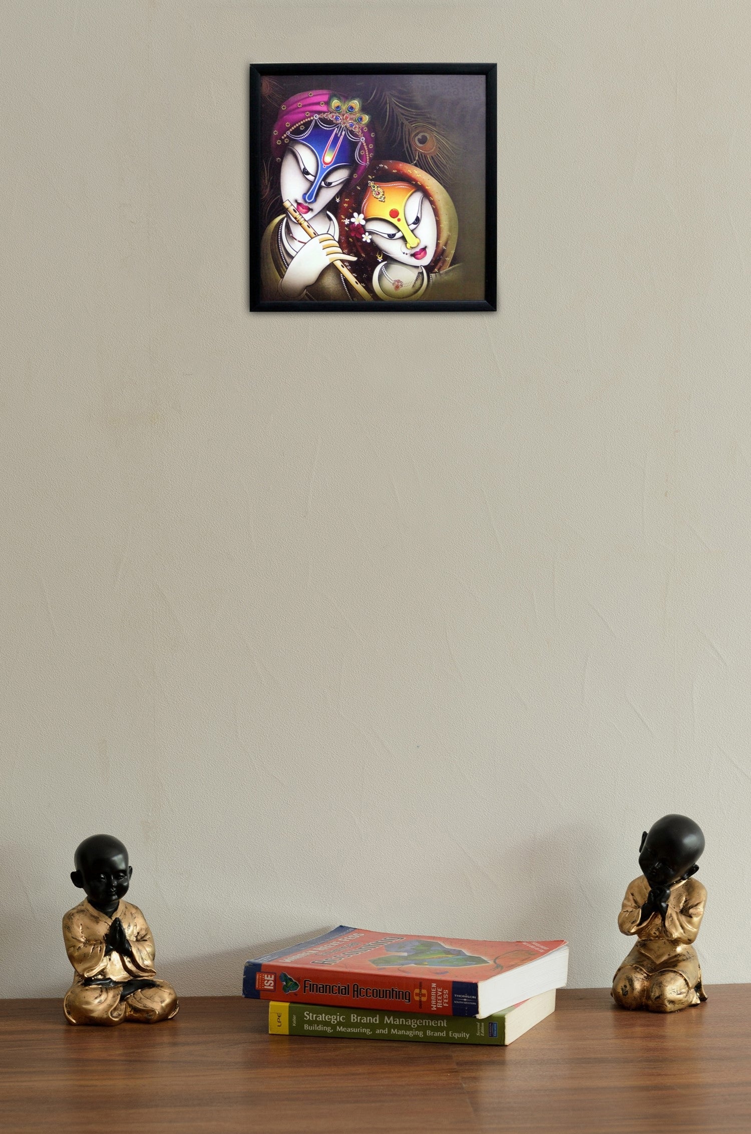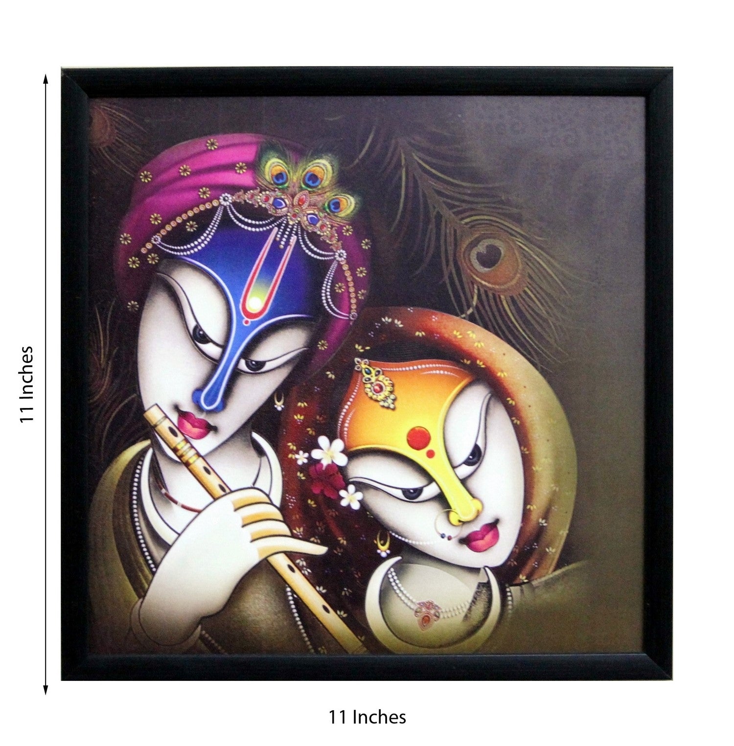 Product Description - Paintings on walls add charm to the decor of home. Other than making the home look good, they also calm the mind. Radha-Krishna is always considered as symbol of true and unconditional love. Hence, it is recommended to hang Radha-Krishna paintings in a couple's room. Each design reflects the artistic qualities and time one has taken to design this poster. Exquisitely printed and framed it is also a perfect gifting option for your colleagues, loved ones and family members. These frames don't include glass so it is very light weight and wet cloth can be used to clean it.