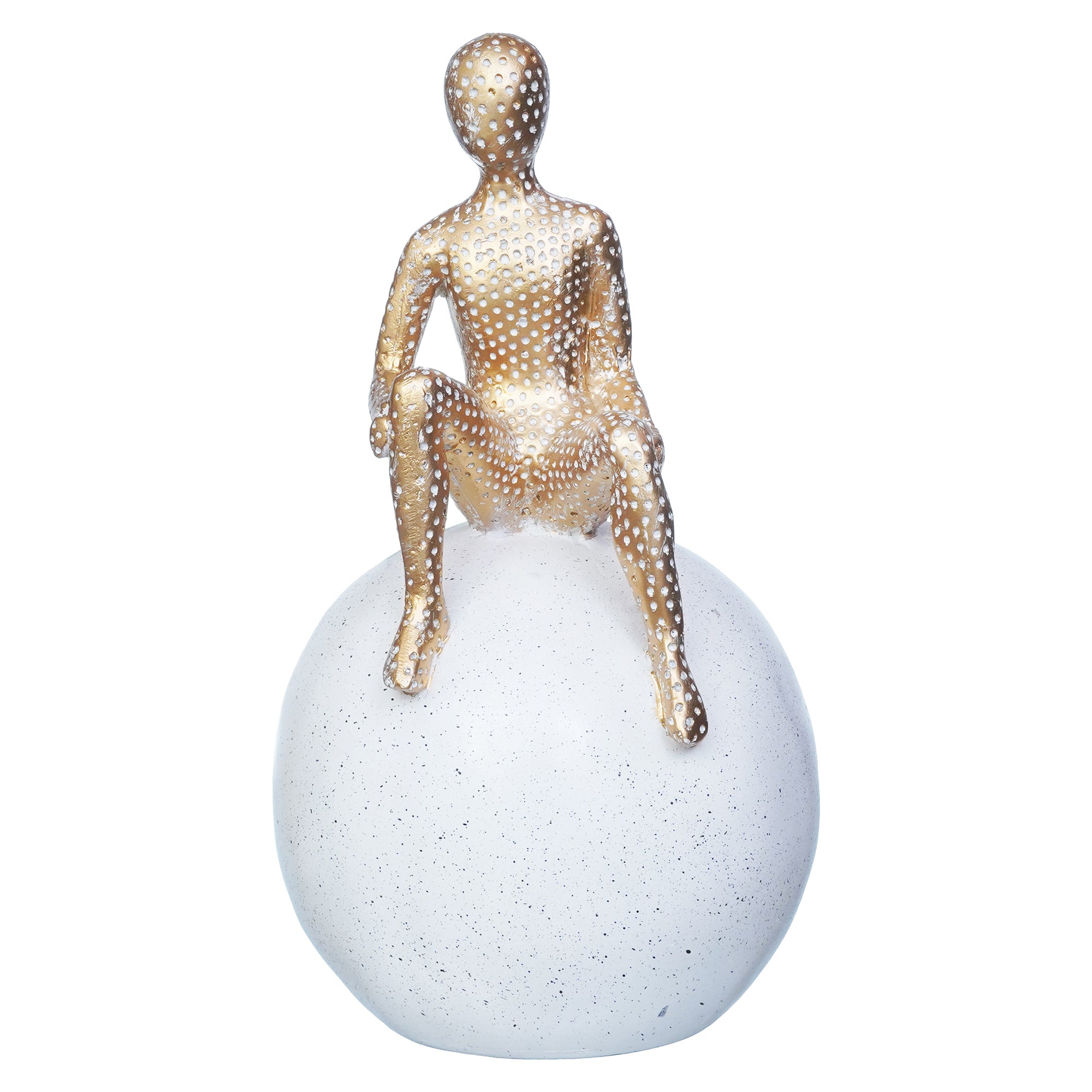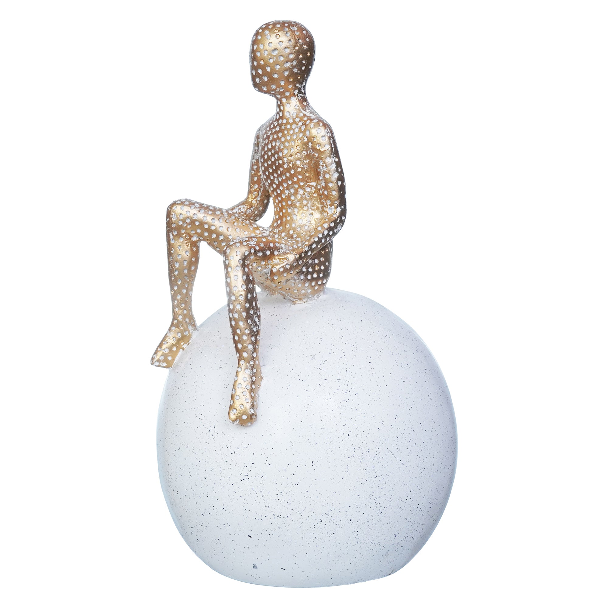 Package Content - One Golden Boy Statue Sitting on White Ball Human Figurine Showpiece