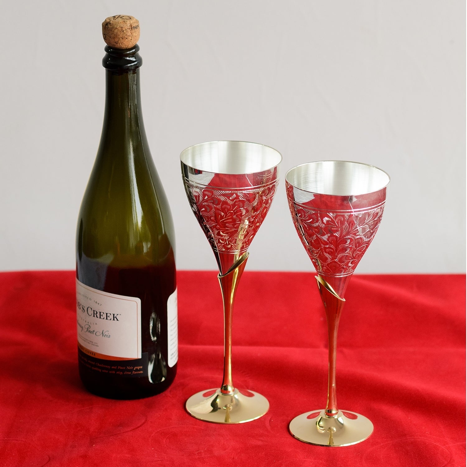 Product Description - German silver products have been a great gifting option for ages now. Our Gold & Silver German Silver Grand Wine Glass Set of 2 with Velvet Box that comes in gold and silver color is another best gifting option when it comes to various religious events for your friends and family. This German silver glass set comes with a royal velvet box to ensure that the shine doesn't go away. These German silver products are handcrafted using various inherited techniques by skilled artisans at the dwelling of eCraftIndia. You can find many such German silver products on our online portal. The velvet box that these glasses come in helps to preserve the shine of the silver and also makes the best gifting option for family & friends around various celebrations & festivities.