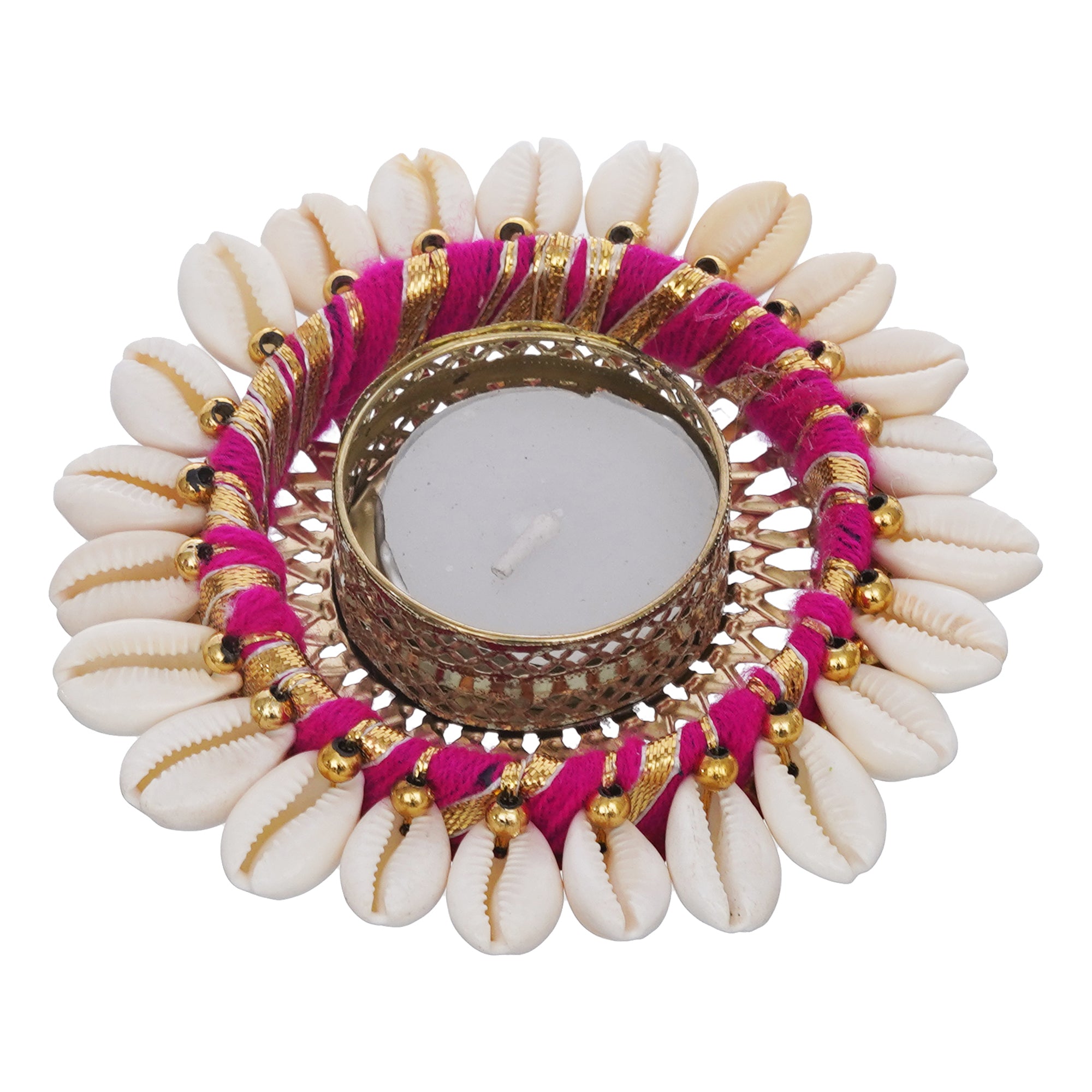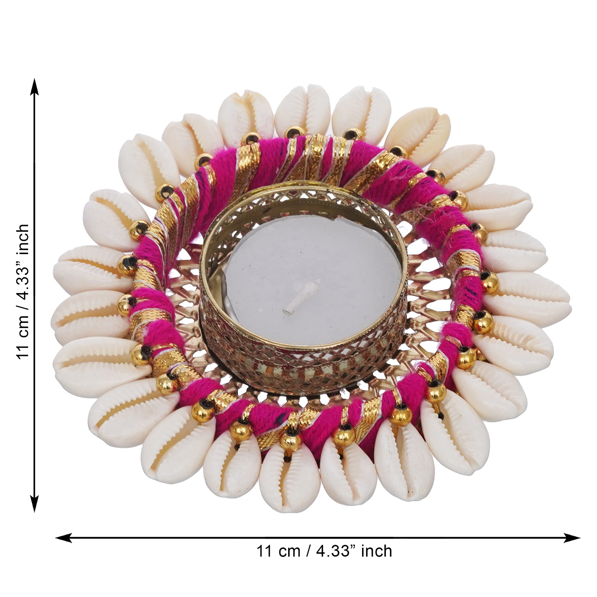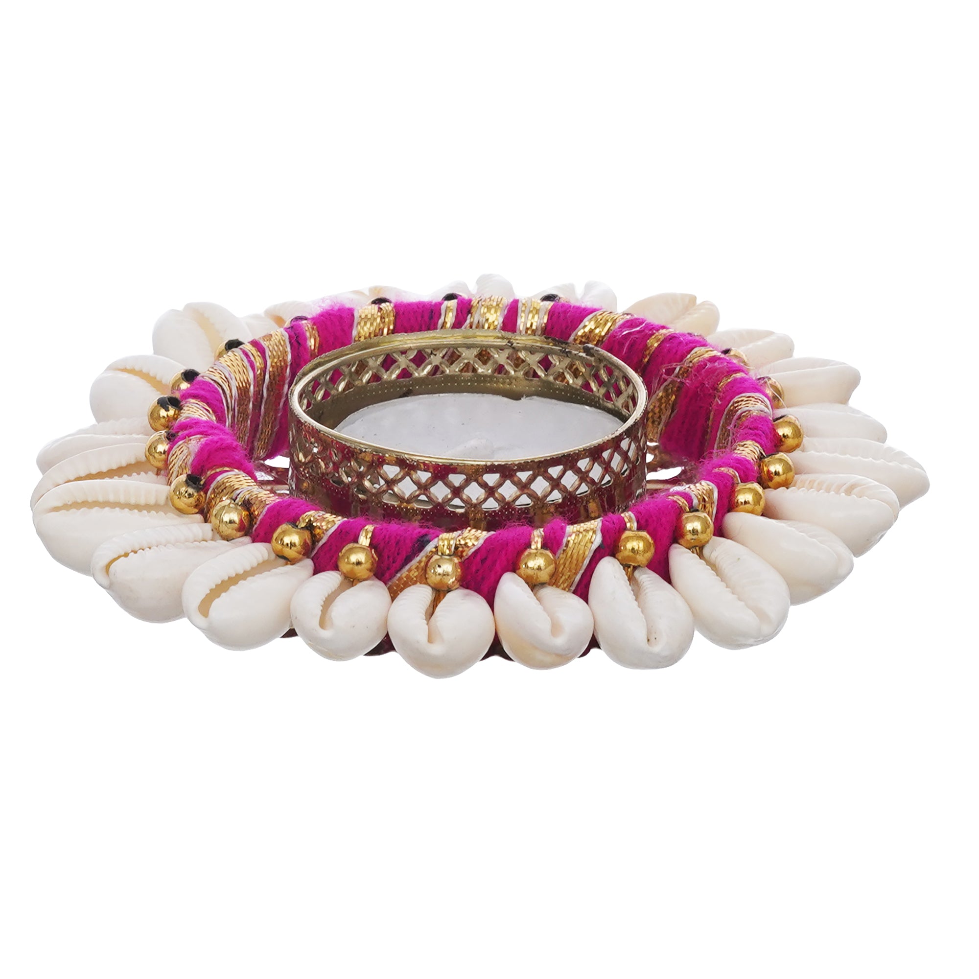 Product Description - Infuse your space with warmth and elegance using the eCraftIndia Pink and White Cowrie Shell Tea Light Holder. Crafted with precision, this metal holder adorned with delicate cowrie shells adds a touch of coastal charm to your home decor. Place it on tables, mantles, or bedside for a soft and inviting glow, creating a cozy atmosphere. A thoughtful gift for diwali, weddings, or special occasions, this tea light holder embodies style and uniqueness. Illuminate your surroundings with this exquisite piece, a perfect blend of aesthetics and practicality that adds a splash of color to your living space.