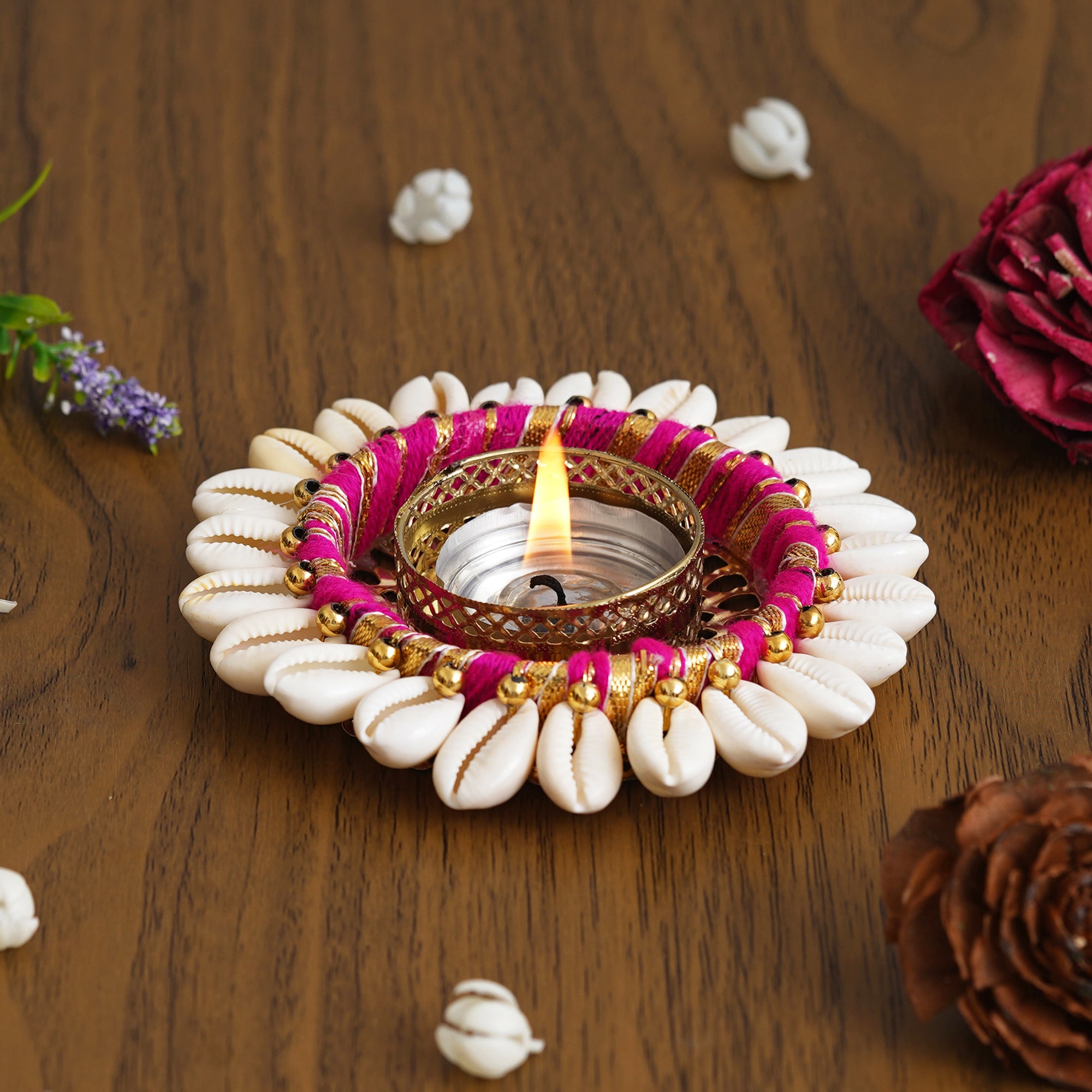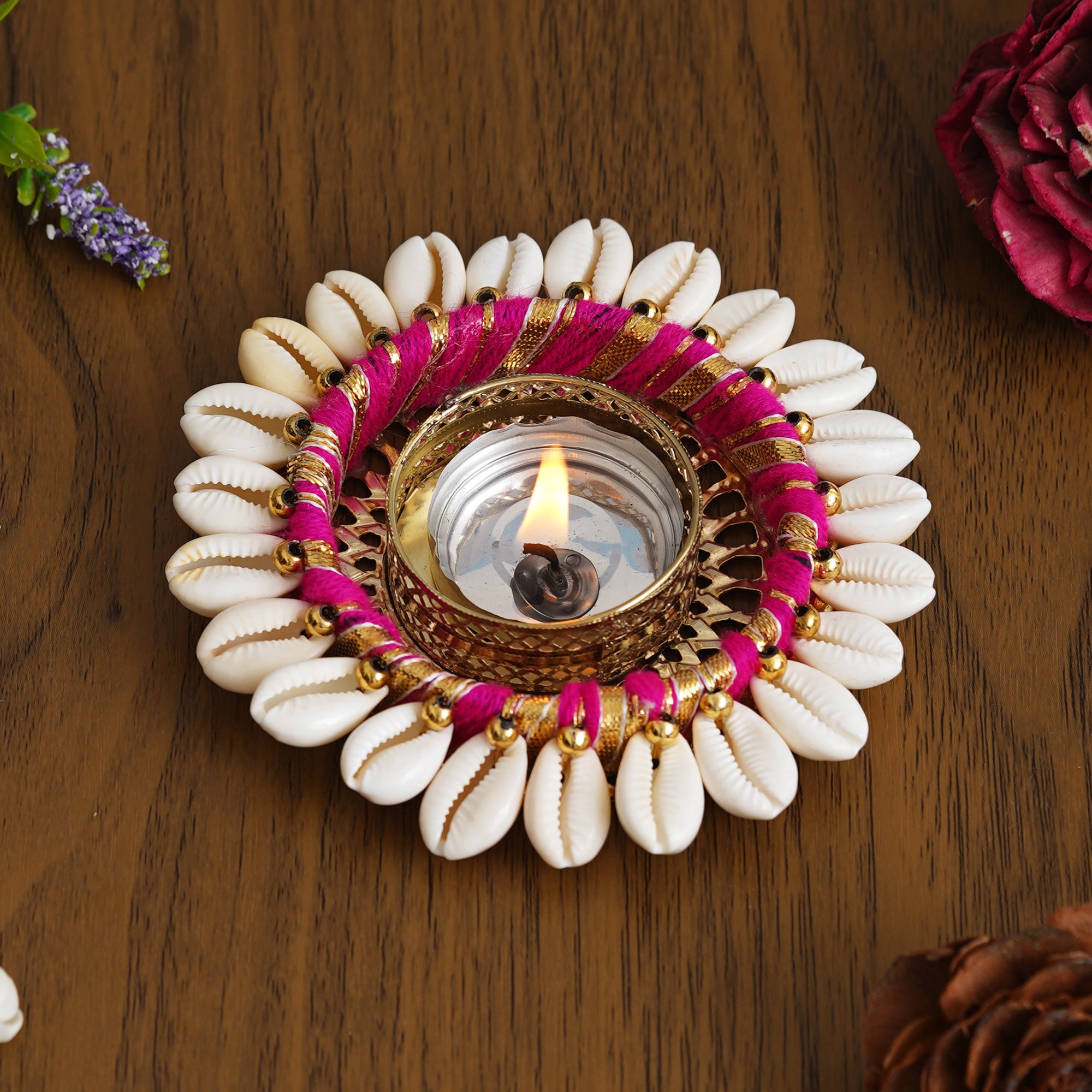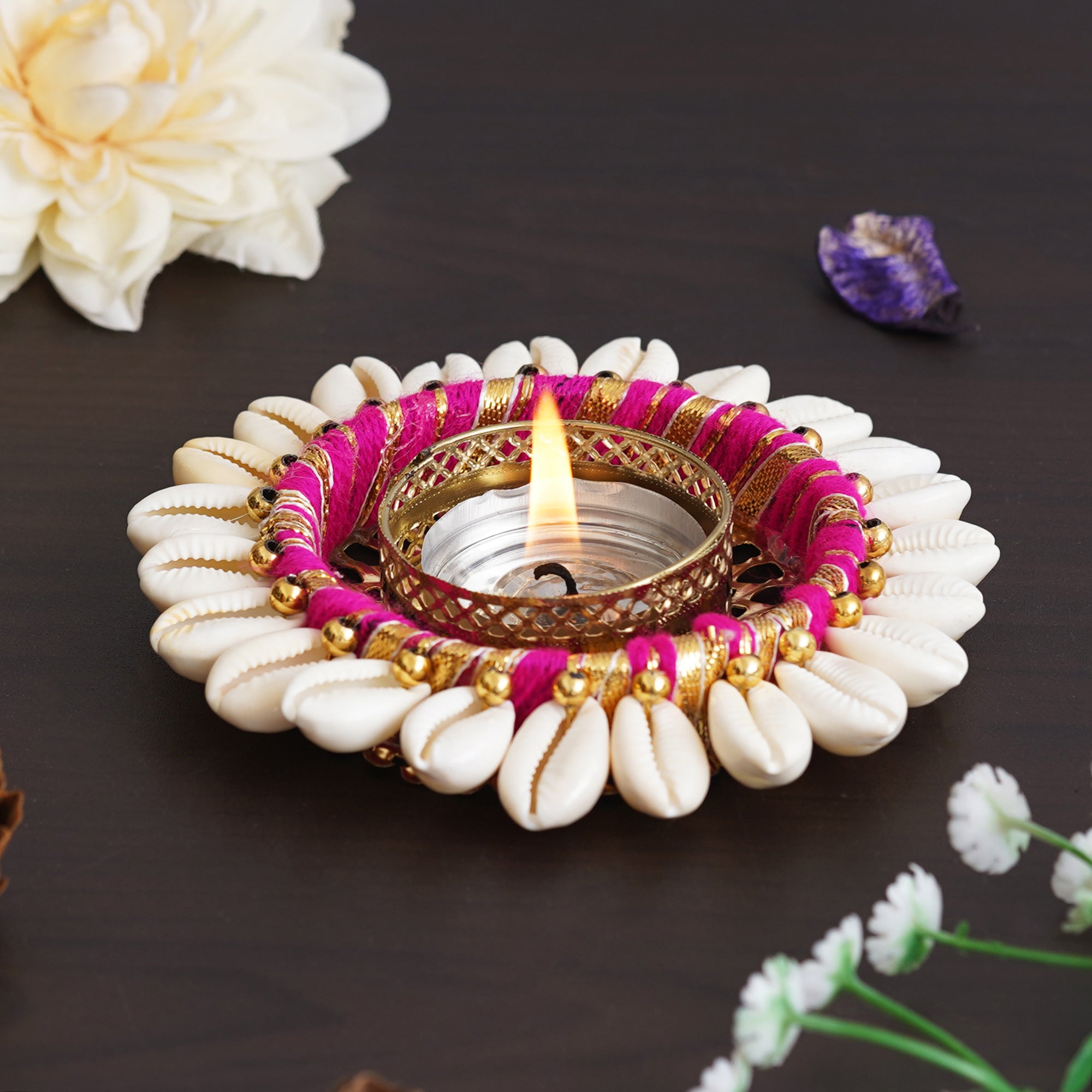Product Description - Infuse your space with warmth and elegance using the eCraftIndia Pink and White Cowrie Shell Tea Light Holder. Crafted with precision, this metal holder adorned with delicate cowrie shells adds a touch of coastal charm to your home decor. Place it on tables, mantles, or bedside for a soft and inviting glow, creating a cozy atmosphere. A thoughtful gift for diwali, weddings, or special occasions, this tea light holder embodies style and uniqueness. Illuminate your surroundings with this exquisite piece, a perfect blend of aesthetics and practicality that adds a splash of color to your living space.