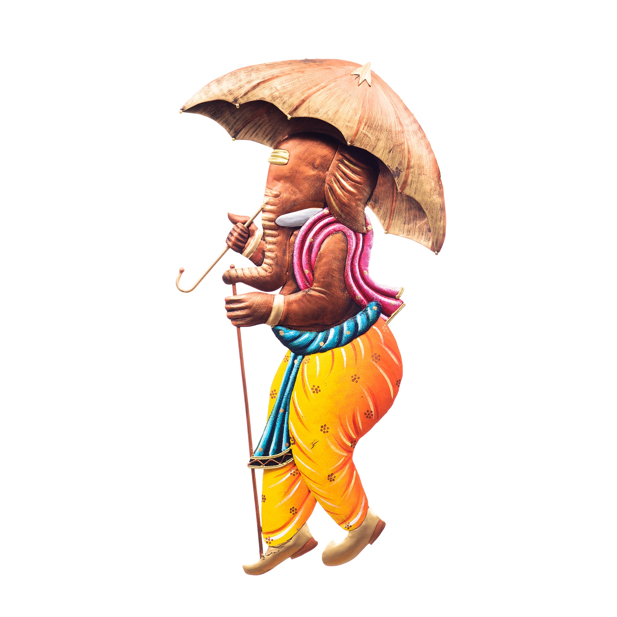 Package Content - One Wrought Iron Umbrella Ganesha Wall Hanging Decorative Showpiece