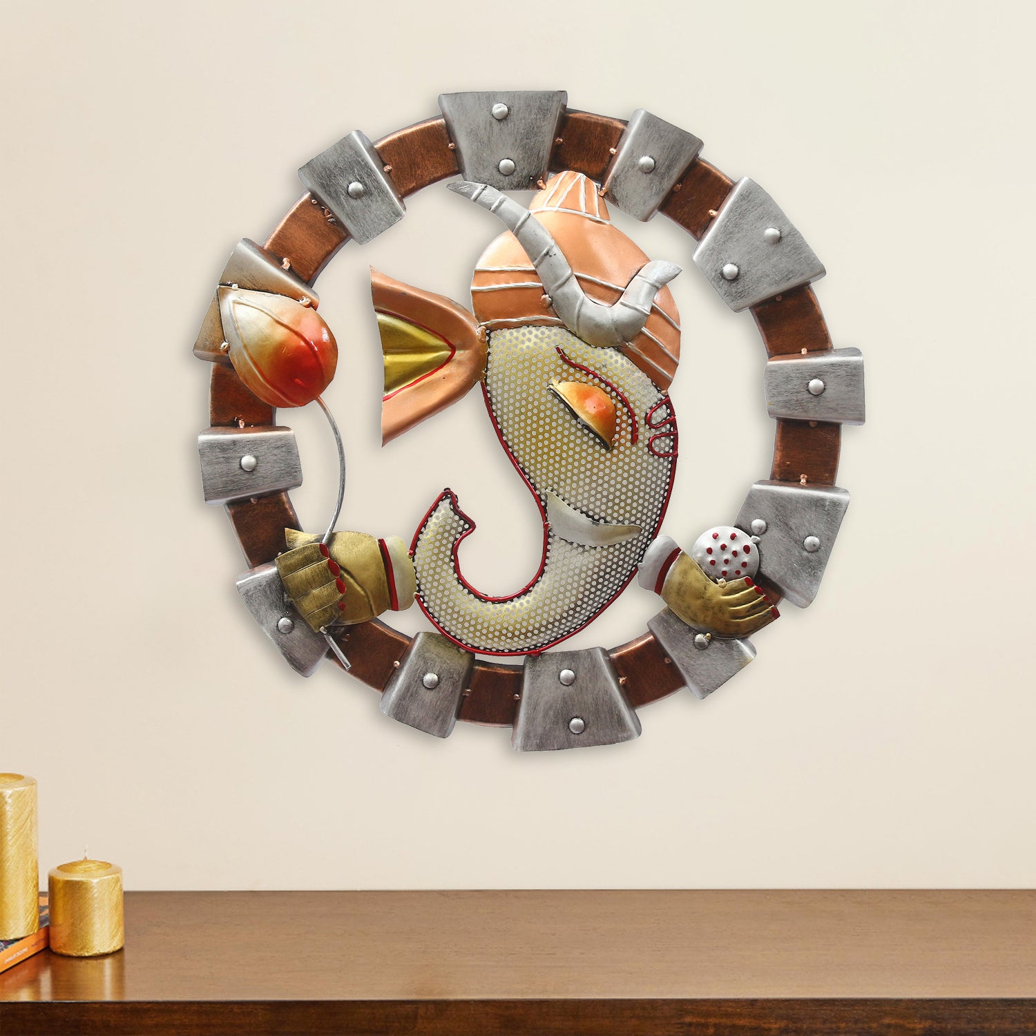 Product Description - Enlighten your home with eCraftIndia Lord Ganesha Handcrafted Decorative Iron Wall Hanging which reflects the artistic brilliance and adds elegance to your decor. Style your home and office with this Iron wall hanging; sure to be admired by your guests. It serves as a great gift, especially around religious celebrations and festivities. This handicraft has been made by skilled artisans from the house of eCraftIndia using various traditional techniques.