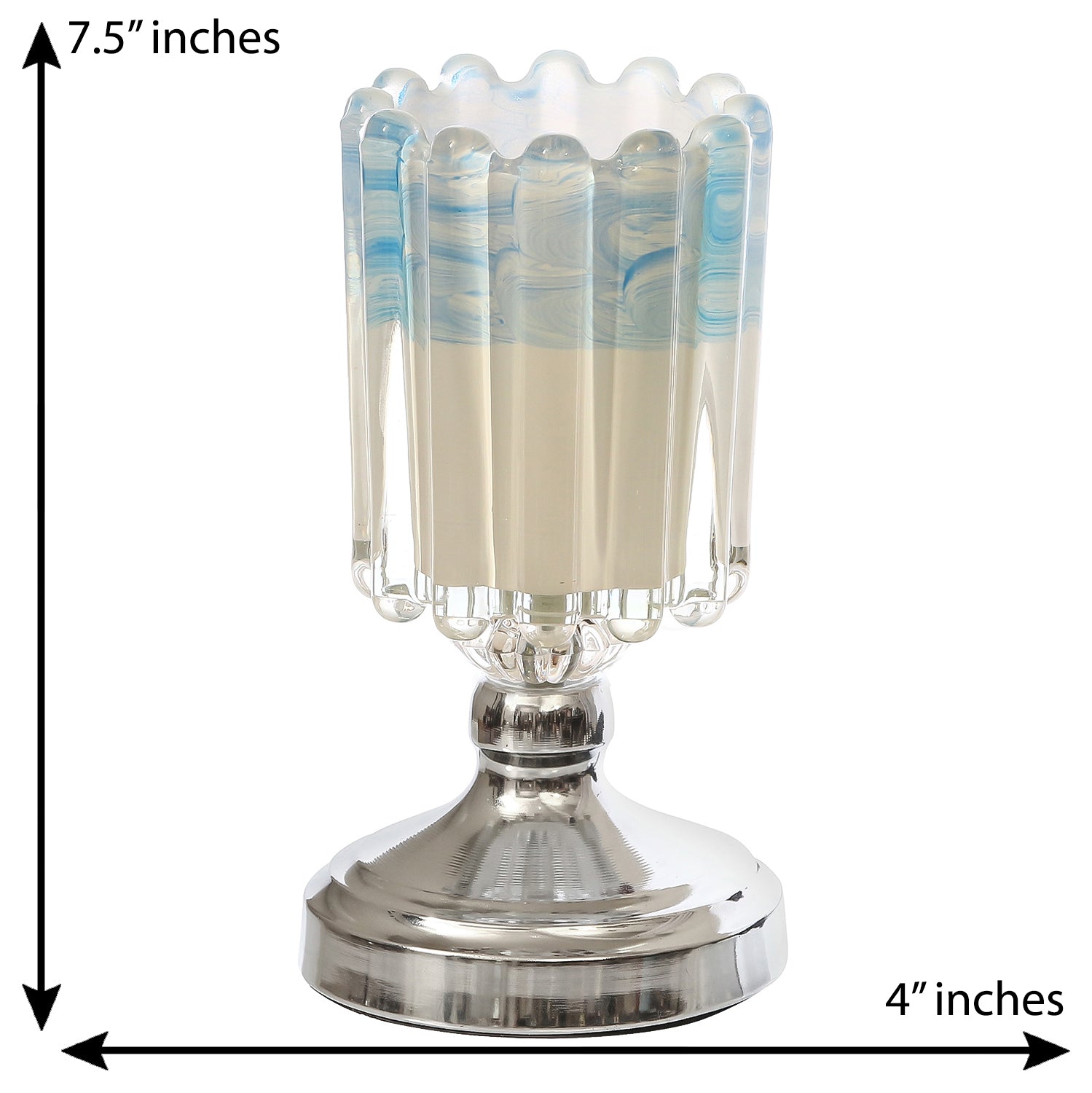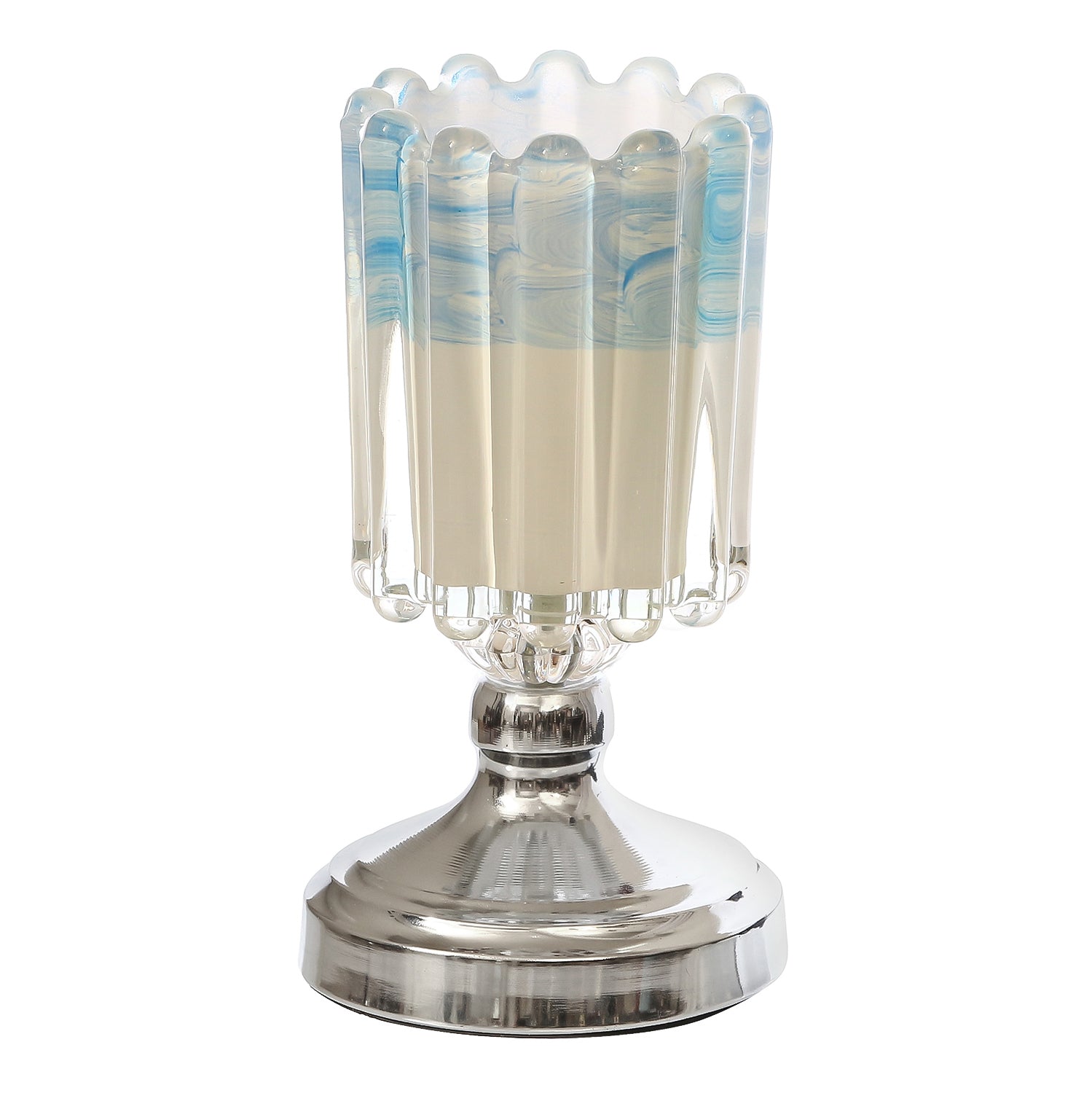 Package Content - One Designer Blue Silver Solid Metal Table Lamp For Bedroom, Living Room 20*10 Cm