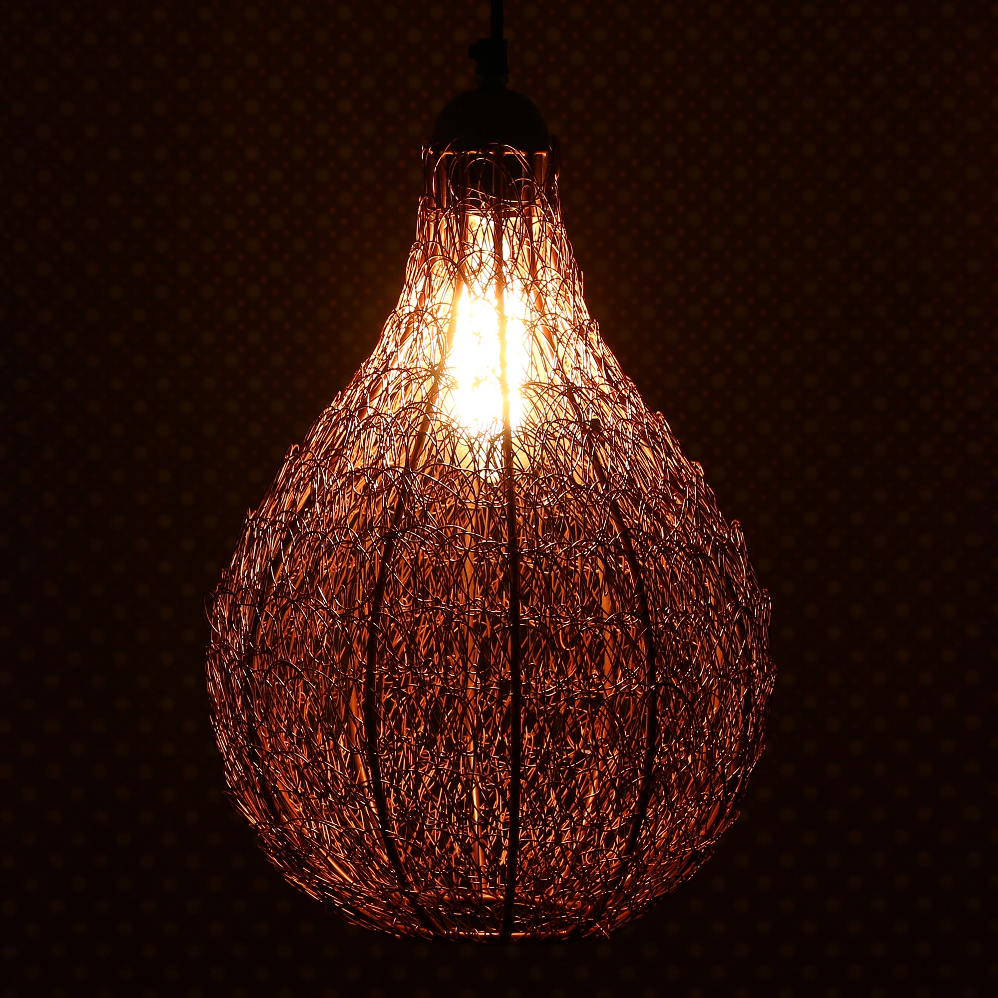 Package Content - One Copper Finish Wire Mesh in Bulb Shape Pendant Light, Ceiling Hanging Lamp for Home/Living Room/Offices/Restaurants