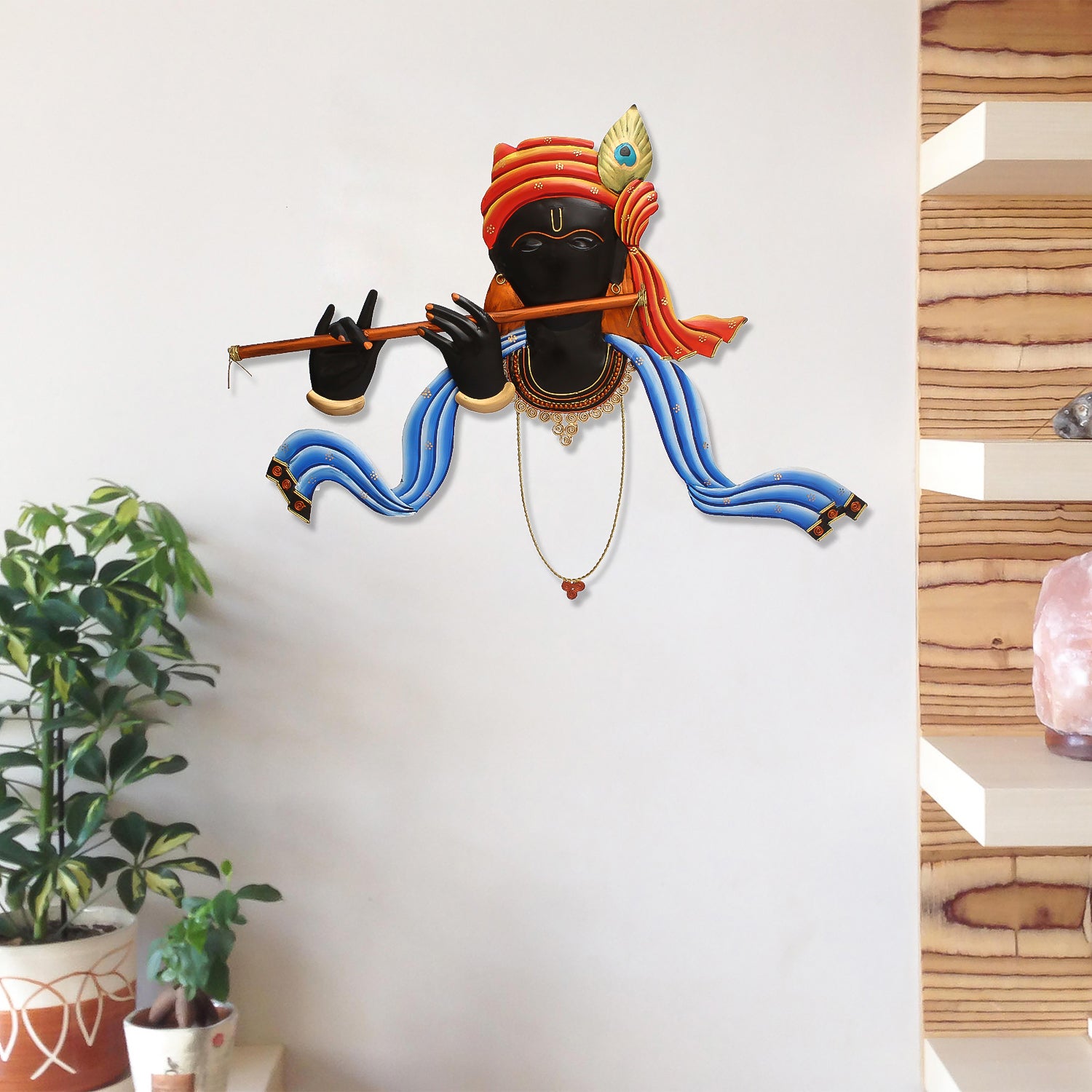 Product Description - Lord Krishna playing his flute– an image that many of us have grown up with, but now you can own a new avatar of the same image to hang in your home. Made using iron, this Orange, Blue & Black Lord Krishna playing flute wall hanging has been crafted by talented artisans from our country and has the kind of finesse and perfection that comes from several years of experience and practice. Traditional colors and motifs, such as Krishna’s quintessential peacock feather have been brought to life in this wall hanging, which will look great in your home and the homes of your loved ones! Exquisitely designed and intricately crafted, it makes for a perfect gifting option for friends & family. You can find many more wall hangings in different patterns on our online portal in various colors that suit your home or office interior.