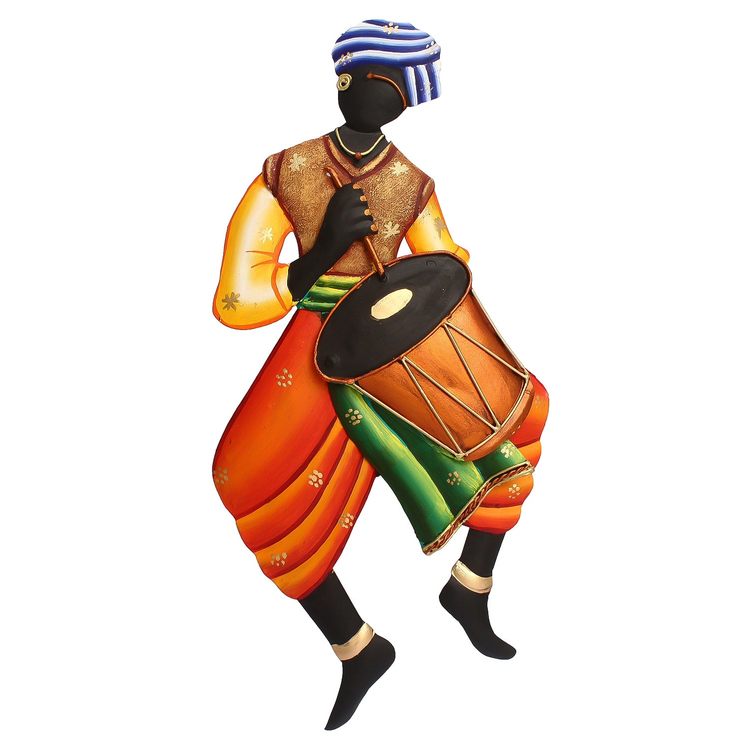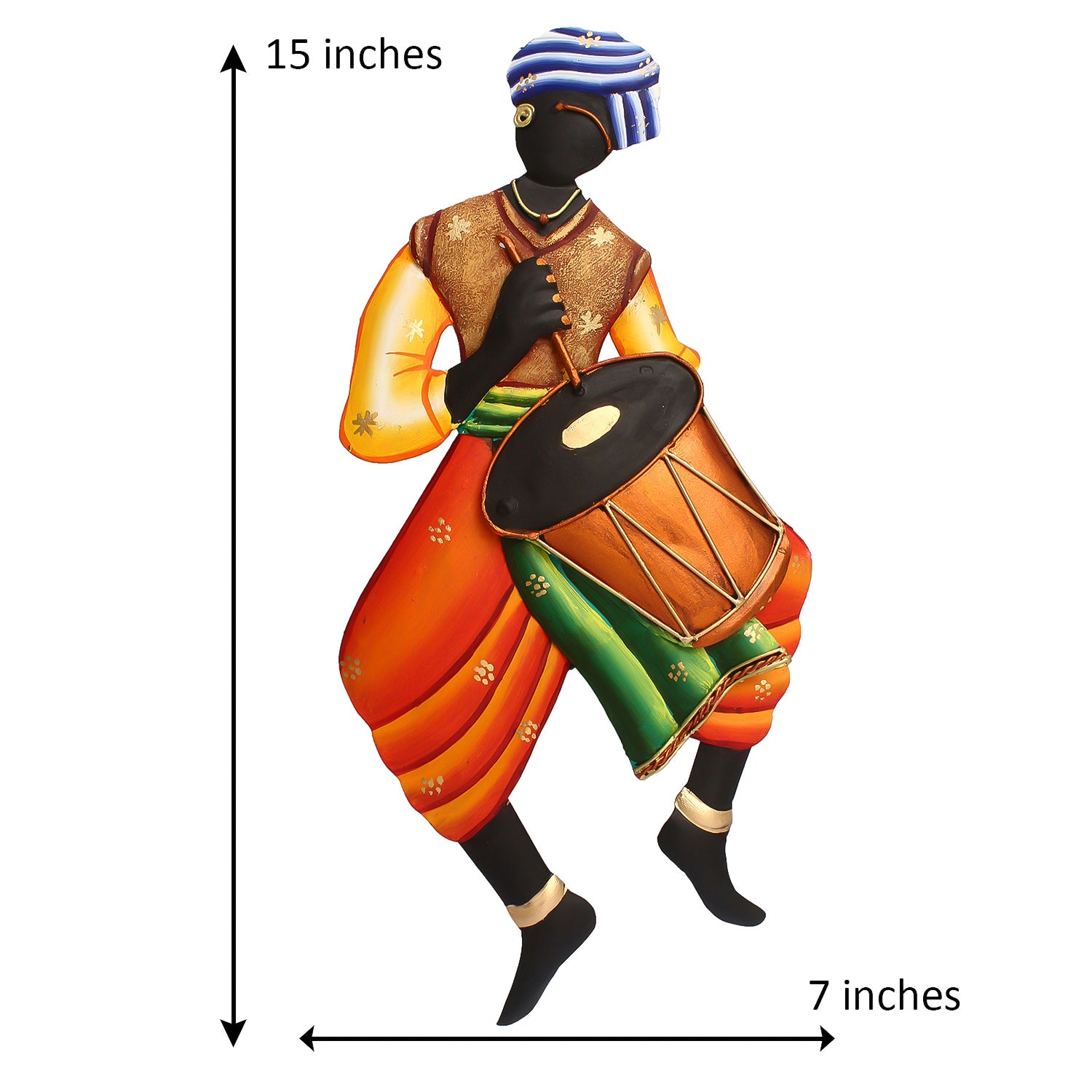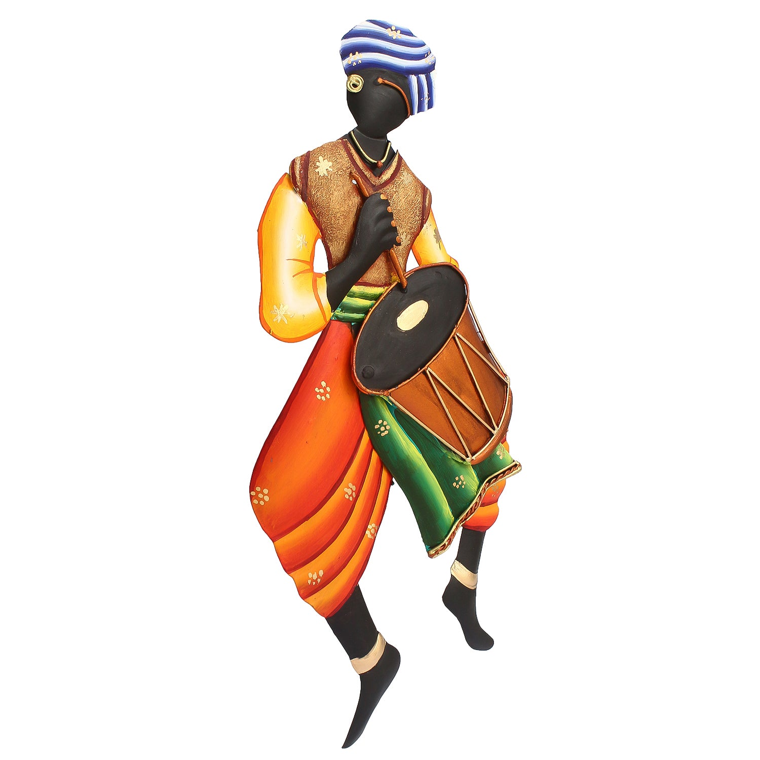 Product Description - A musician playing an instrument, all made using iron, dressed in the brightest of colors– that is what you get when you order our tribal men playing dholak iron musical instruments. Handcrafted using iron, these décor items are created to last and look pretty at the same time– the set comes as individual pieces, which means that you can choose how and where you want to hang them. The colors used to paint the tribal musicians are bright and remind you of the colors of India. This is a great gift for someone who is moving into a new home or for you if you want to add a pop of color to your interiors.