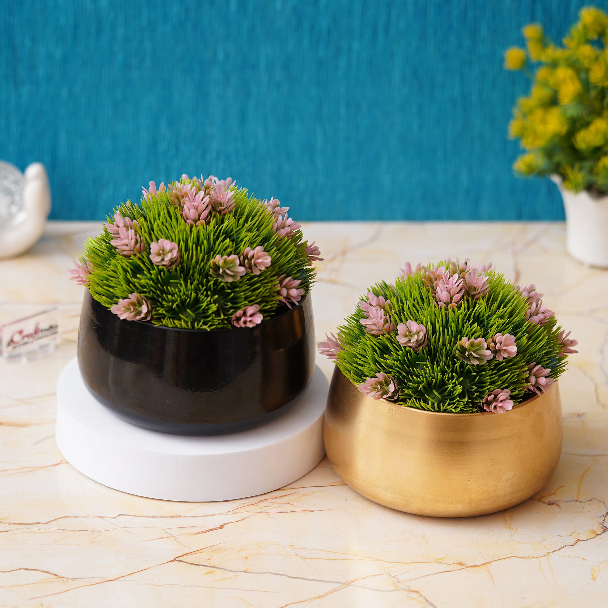 Product Description - Elevate your indoor and outdoor decor with the eCraftIndia Black & Golden Metal Planters Flower Vases Pots, available as a set of 2. These meticulously crafted pieces add sophistication to any space, from living rooms to balconies and offices. Whether you're a gardening enthusiast or simply looking to enhance your tabletop arrangements, these versatile planters are the perfect choice. Their durable metal construction ensures longevity, making them suitable for both indoor and outdoor use. Bring a touch of nature indoors and indulge in timeless elegance with this exquisite set of flower vases pots. Perfect for home or office decor, they effortlessly blend style with functionality, offering a captivating focal point for your favorite blooms.