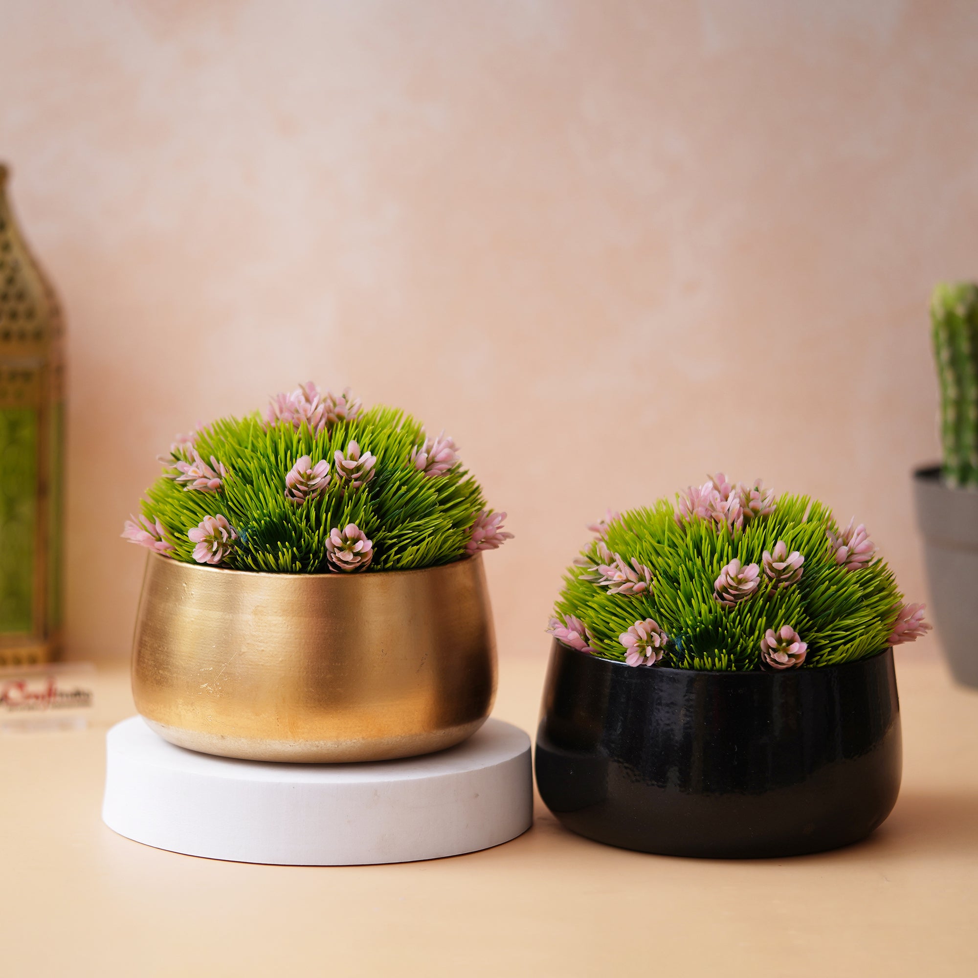 Package Content - Set of 2 Black & Golden Metal Planters Flower Vases Pots for Indoor Outdoor Plants