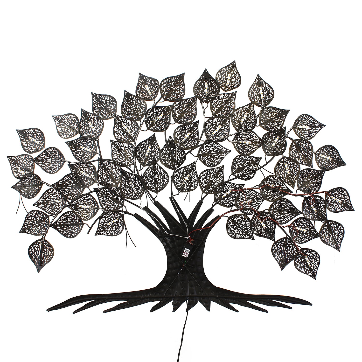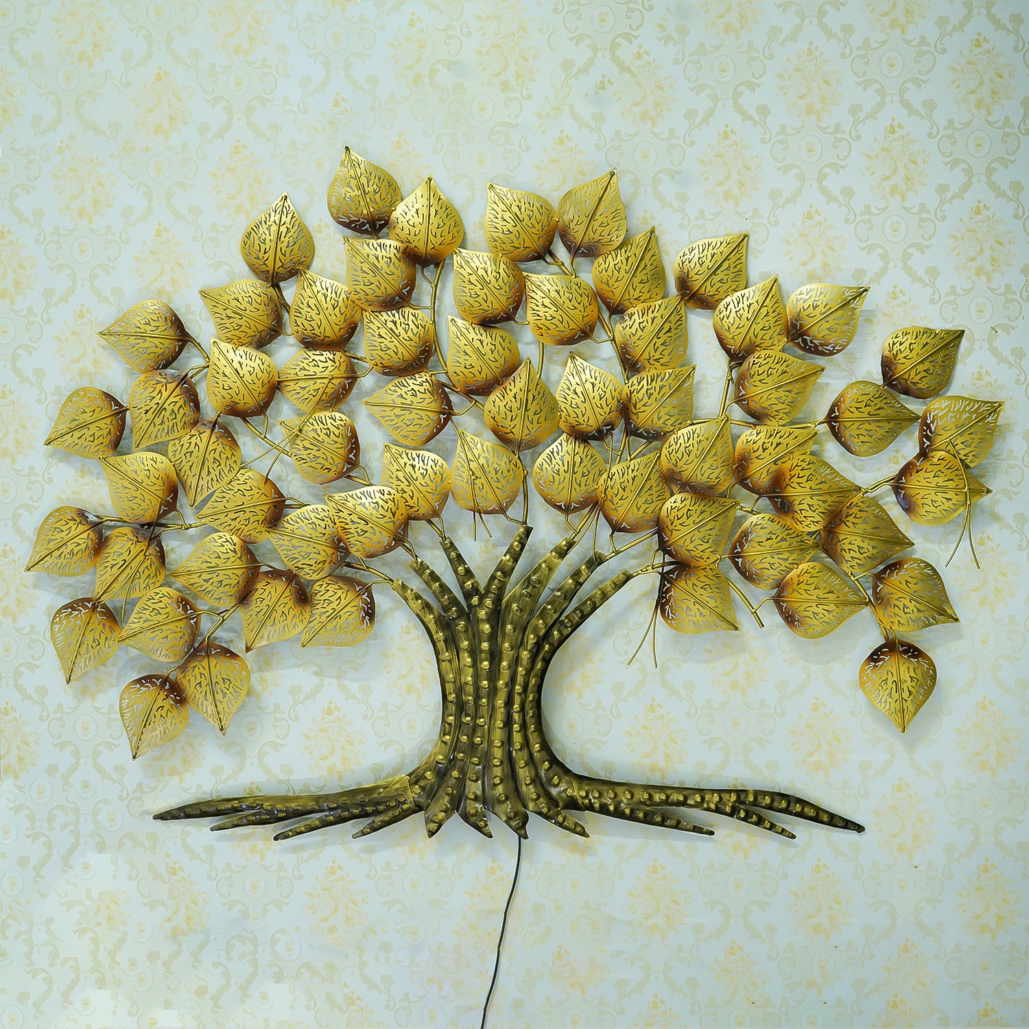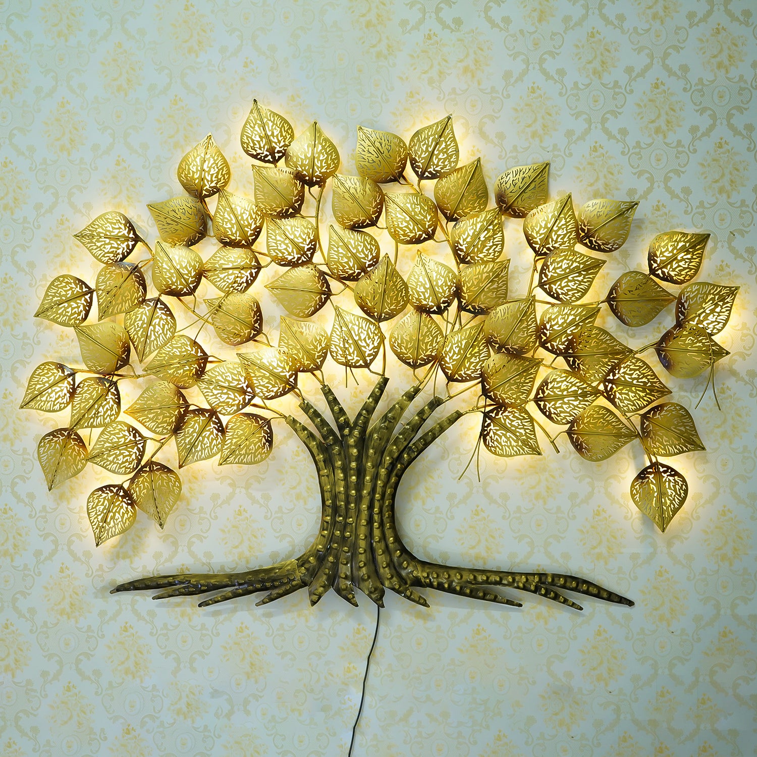Package Content - One Golden Leaves Tree Handcrafted Iron Wall Hanging with background LED's
