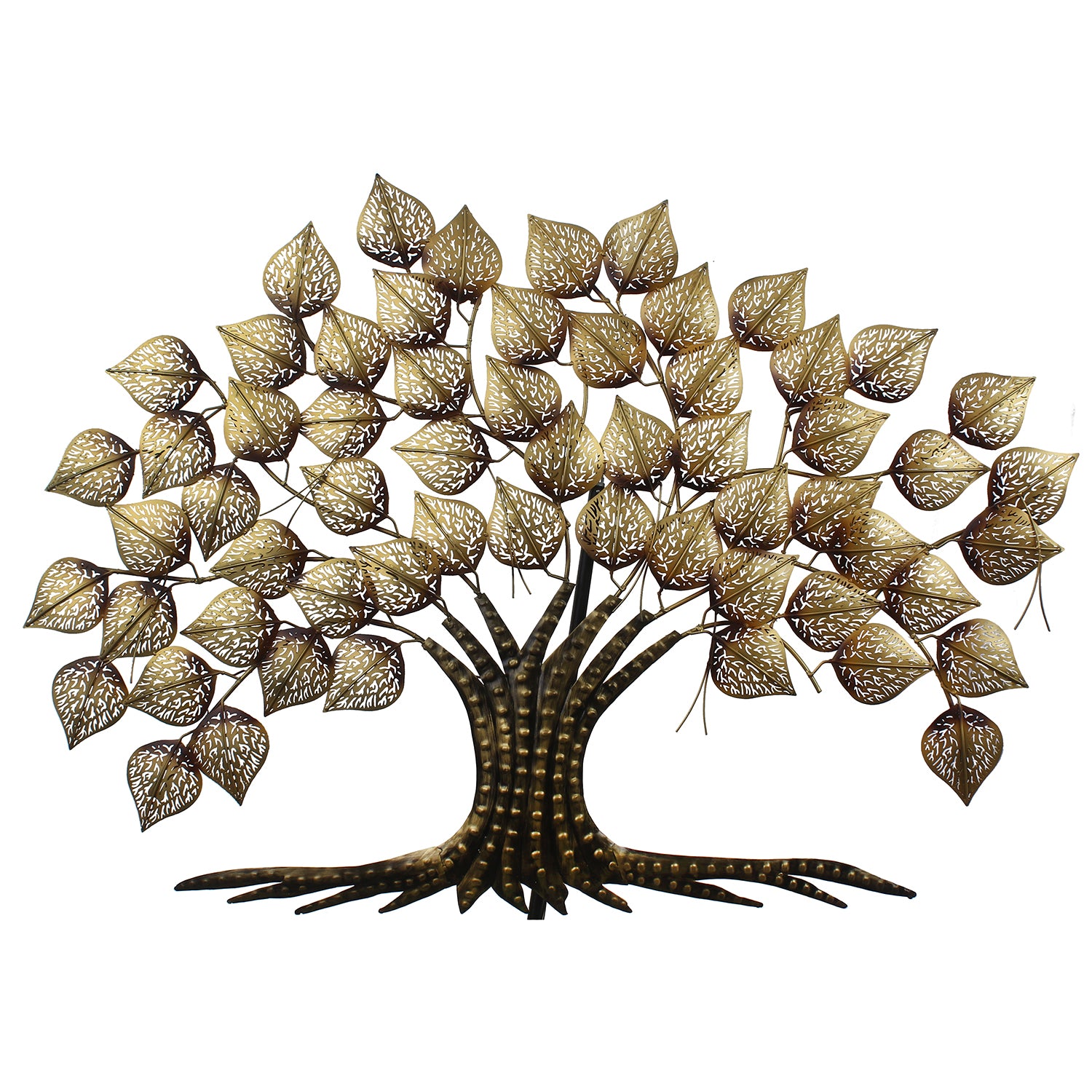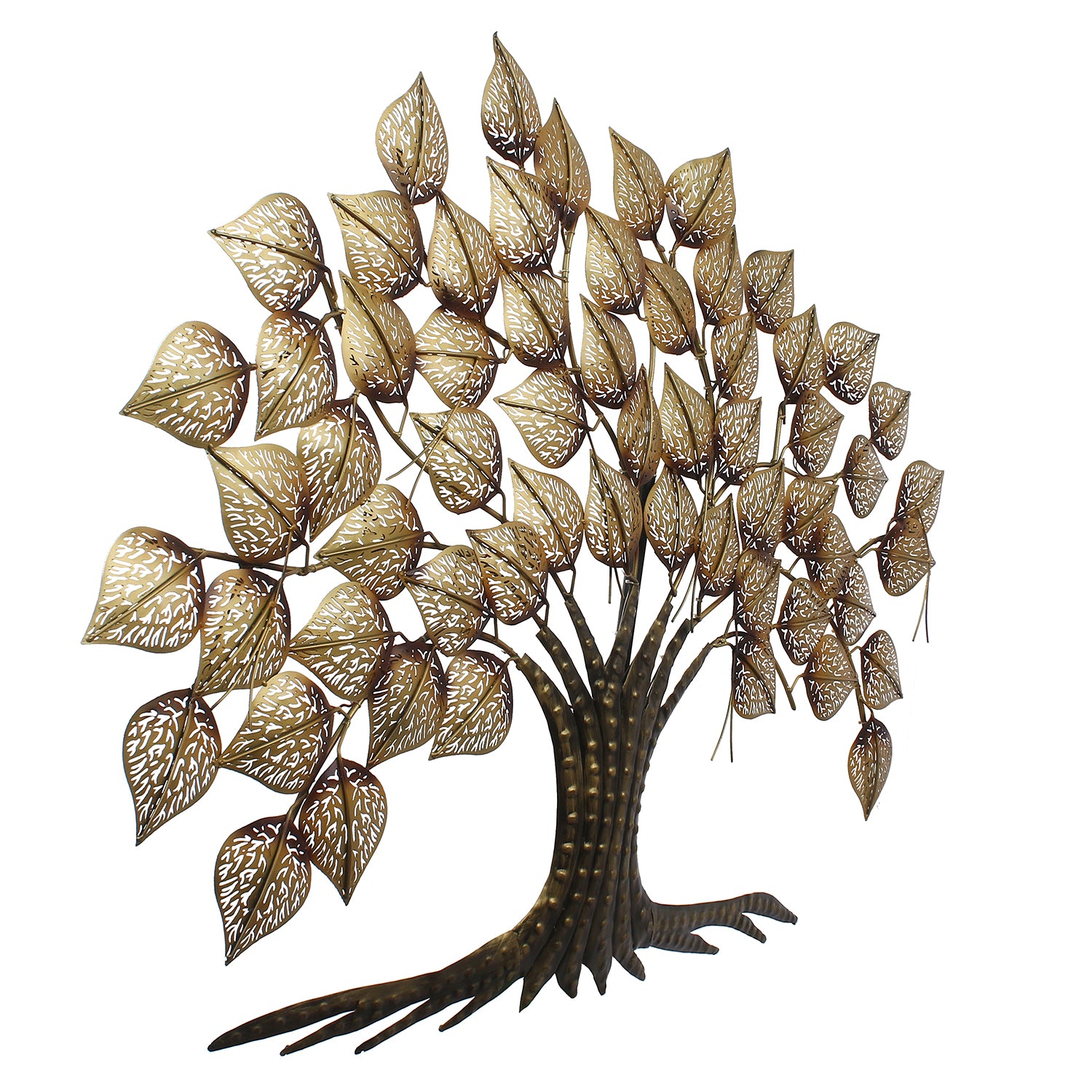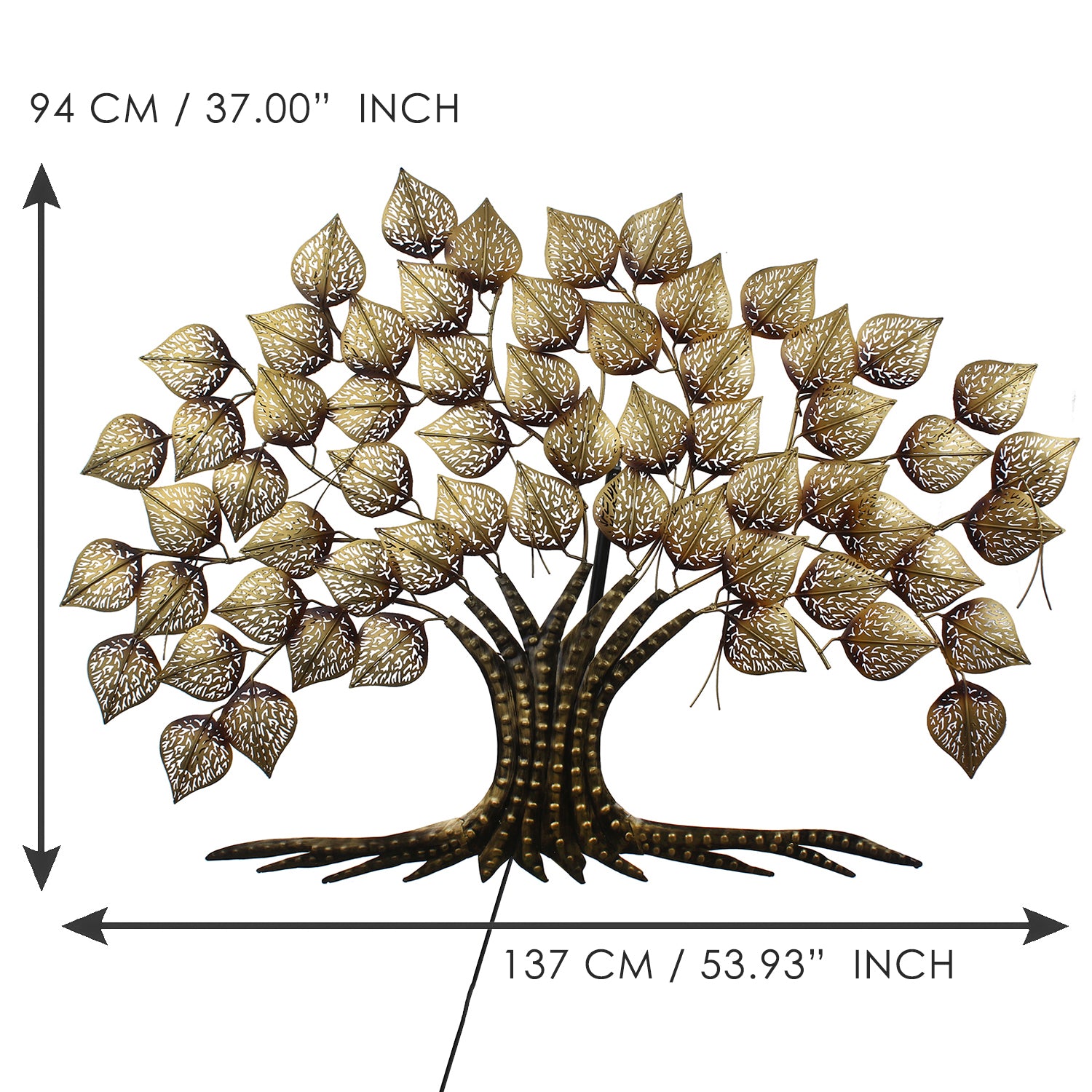 Package Content - One Golden Leaves Tree Handcrafted Iron Wall Hanging with background LED's