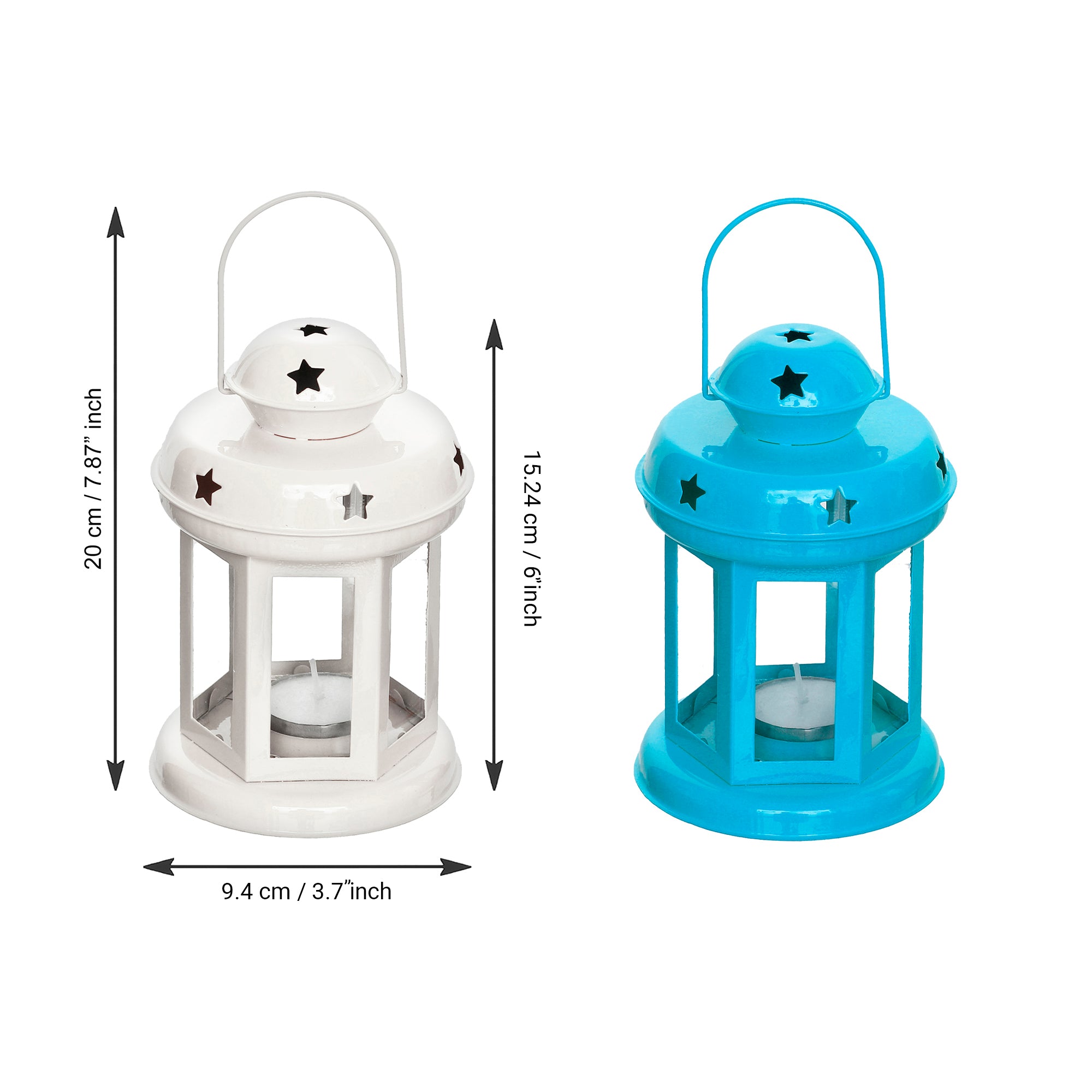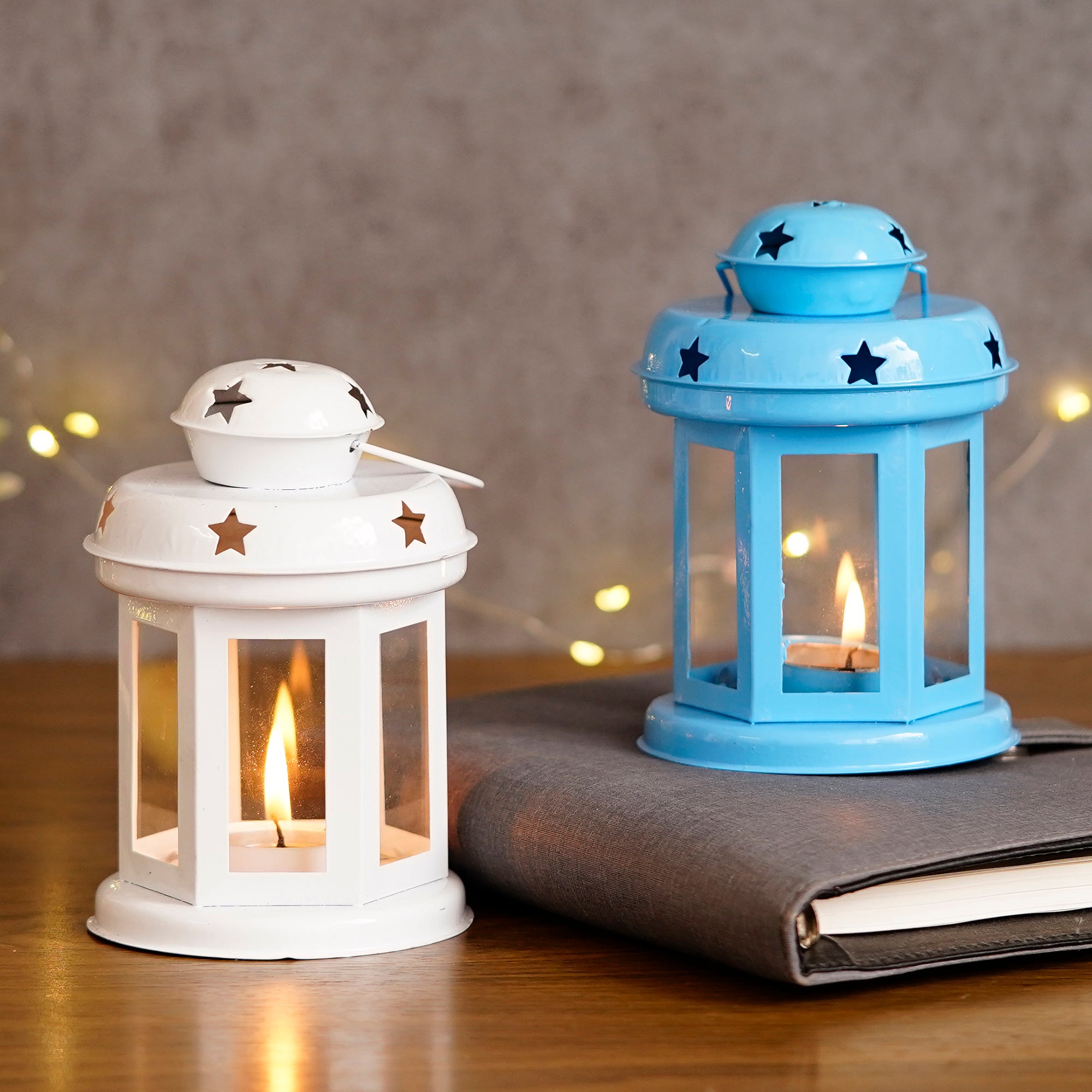 Product Description - Decorative tea light holders are in trend, especially the ones that have unique designs that stand as a great decor item during the festivals. They also help you decorate your home as well as the office space and enhance your festive decoration. eCraftIndia Set of 2 Blue and White Iron Tea Light Holder Lantern is the best for you to get your hands on. You can also gift this to your friends and family at festivals or other auspicious occasions. Diligently handcrafted using various ancient techniques by the artisans at eCraftIndia, this is the most unique and decorative tea light holder that you can get.