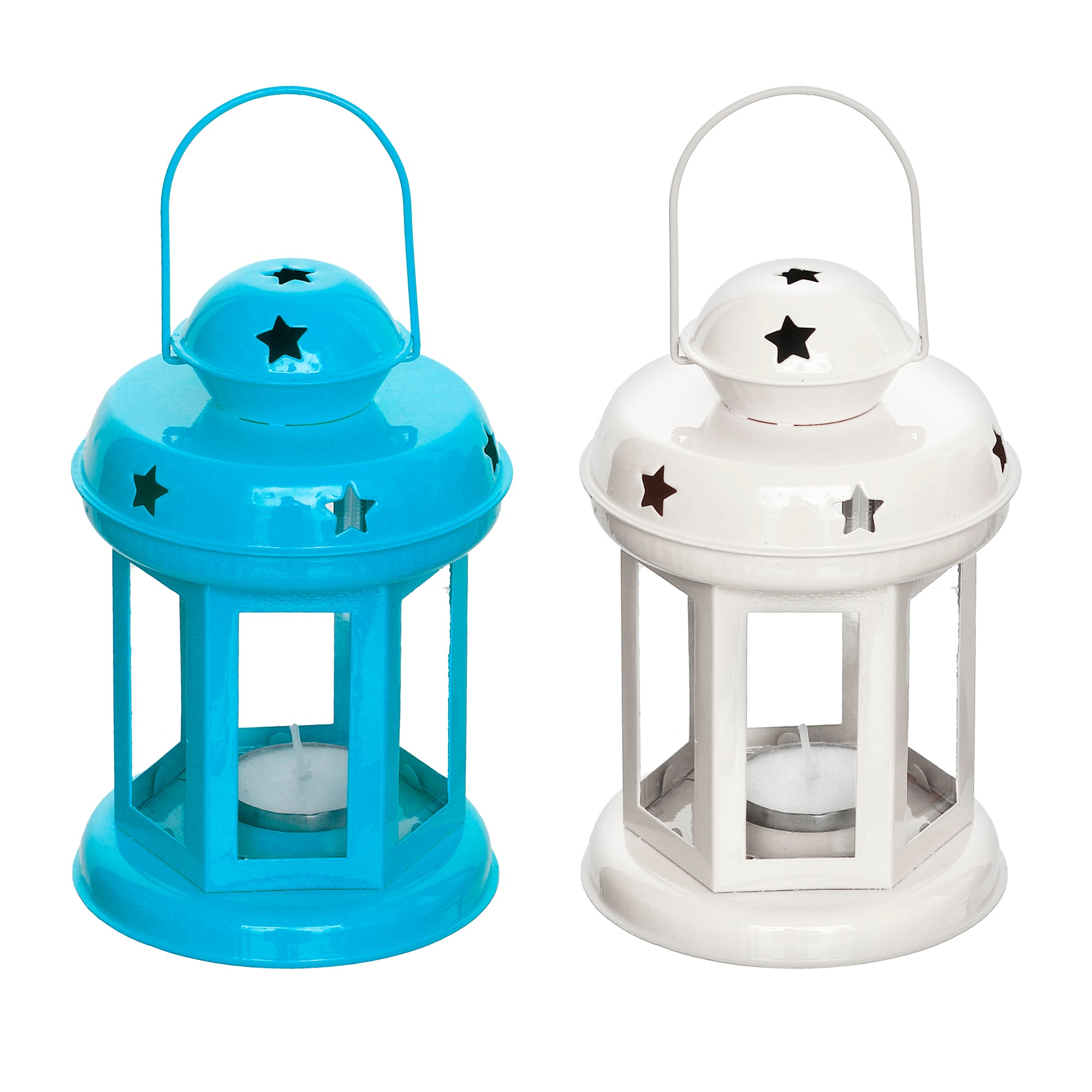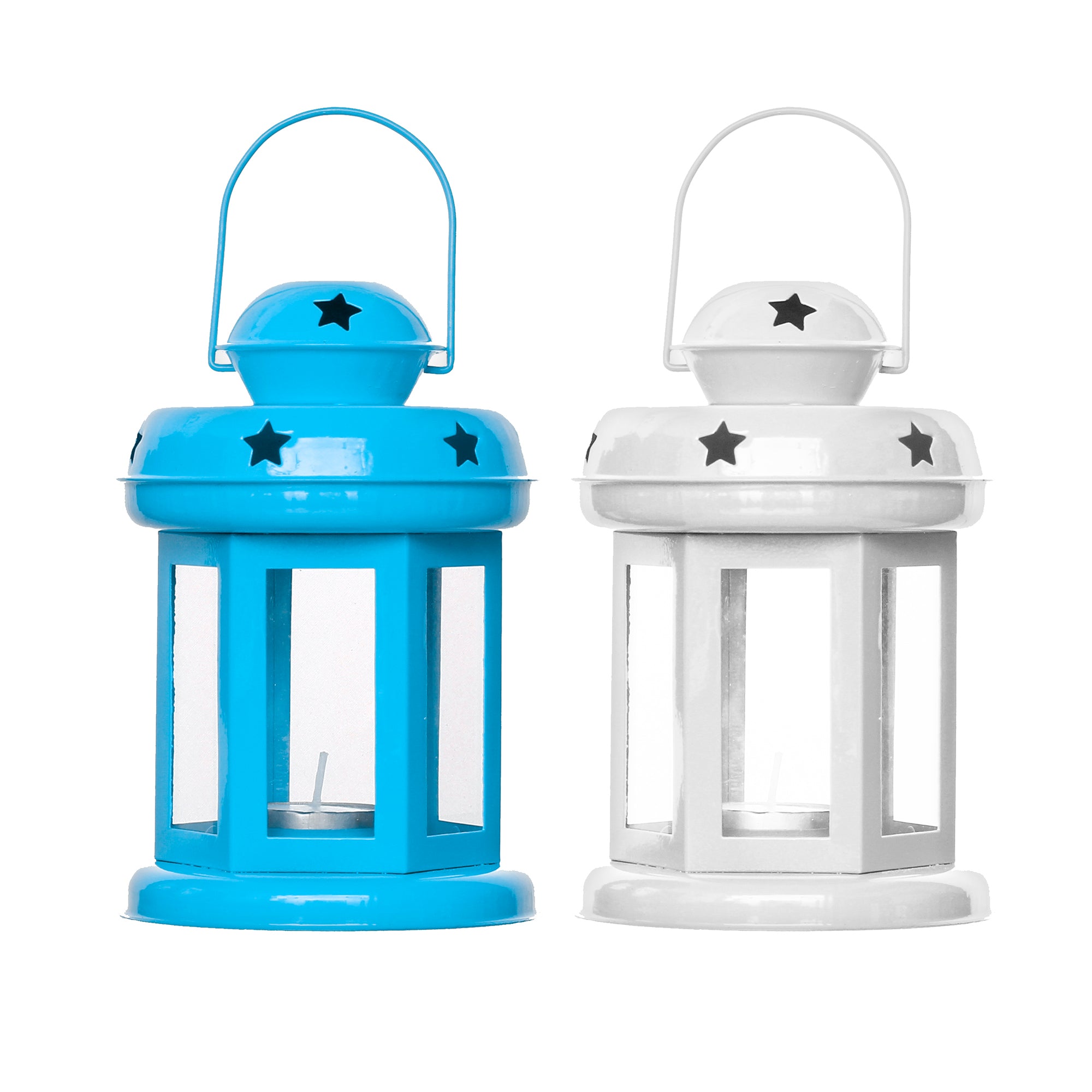 Package Content - One Set of 2 Blue and White Tea Light Holder Lantern