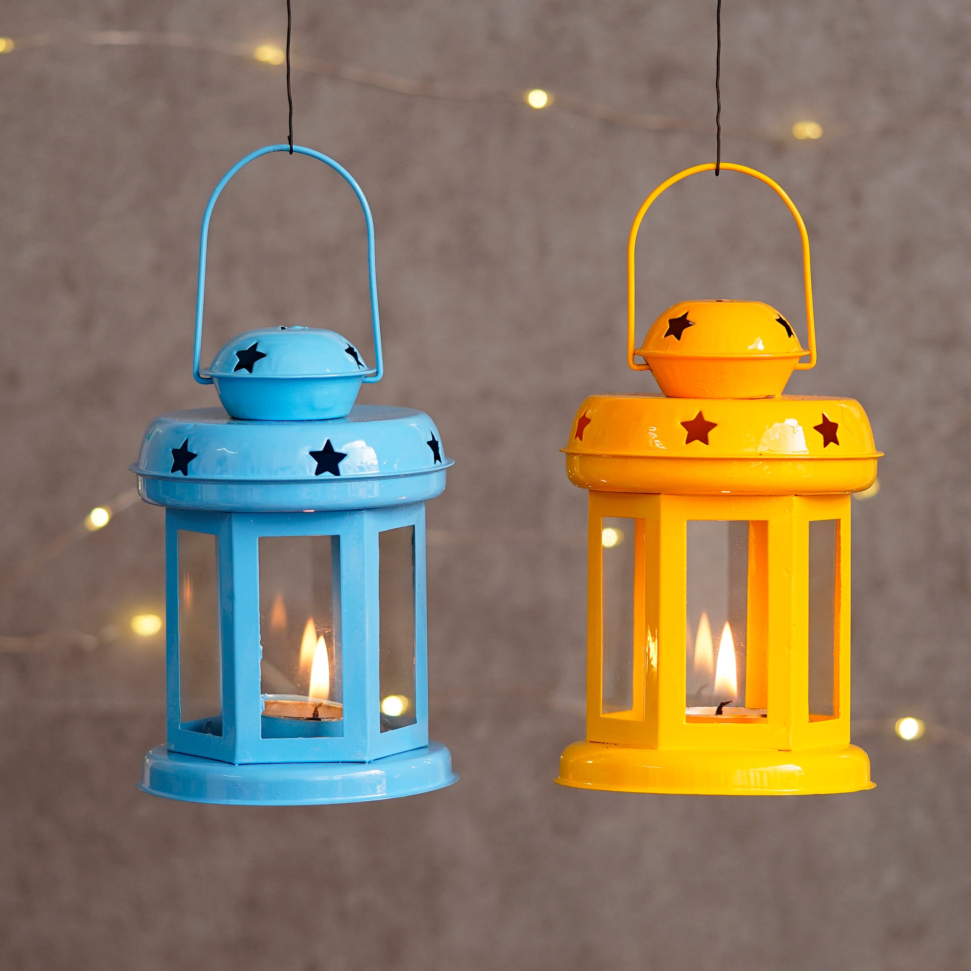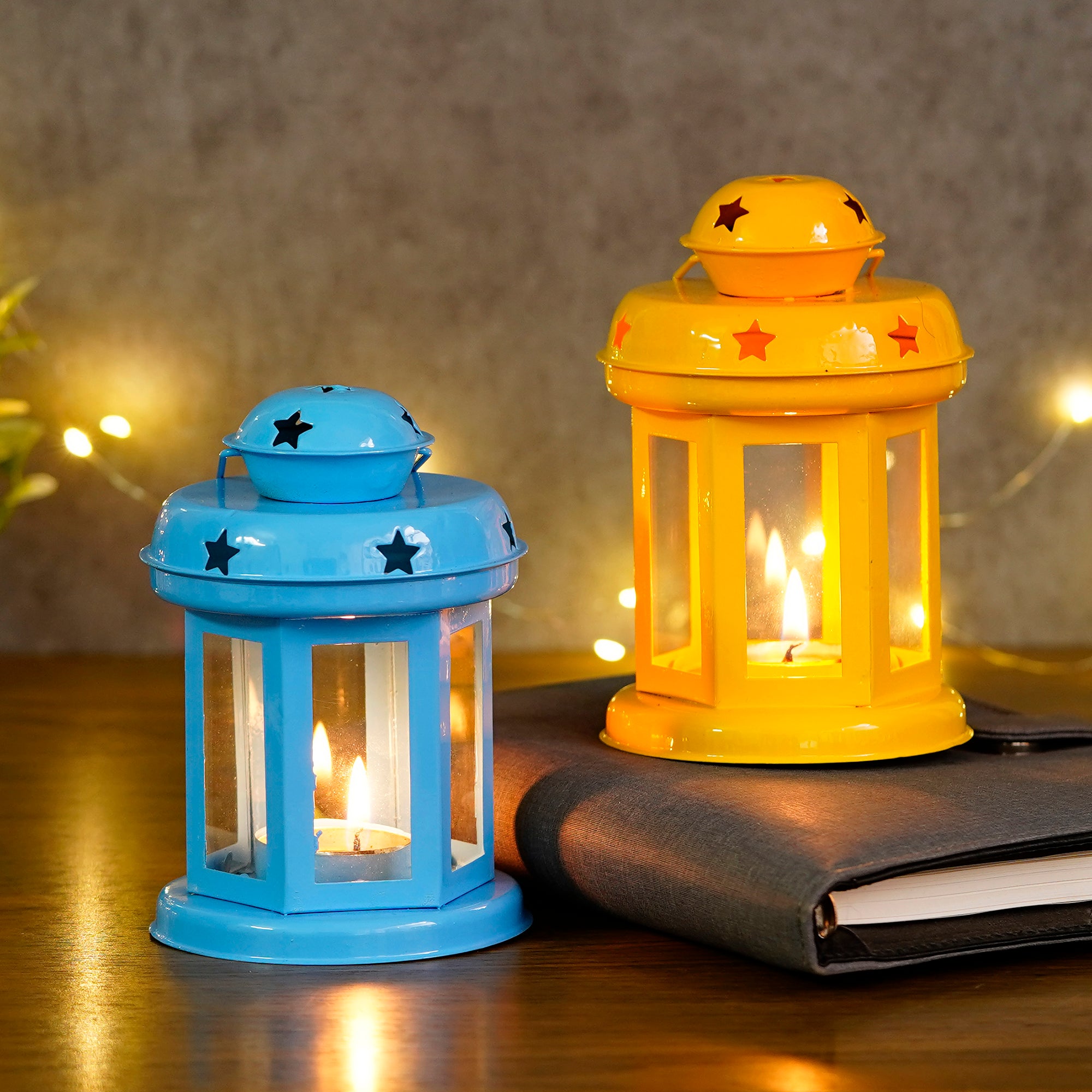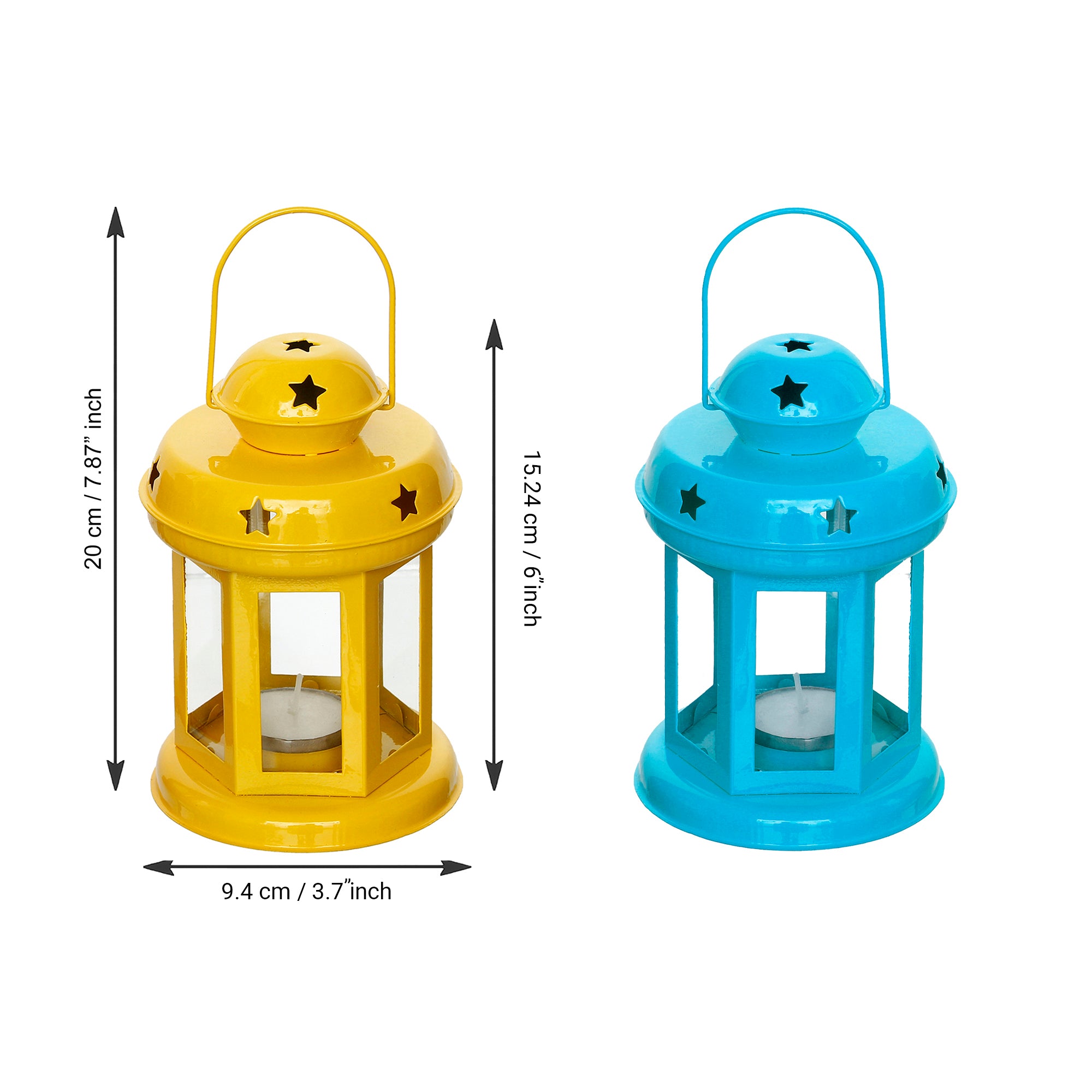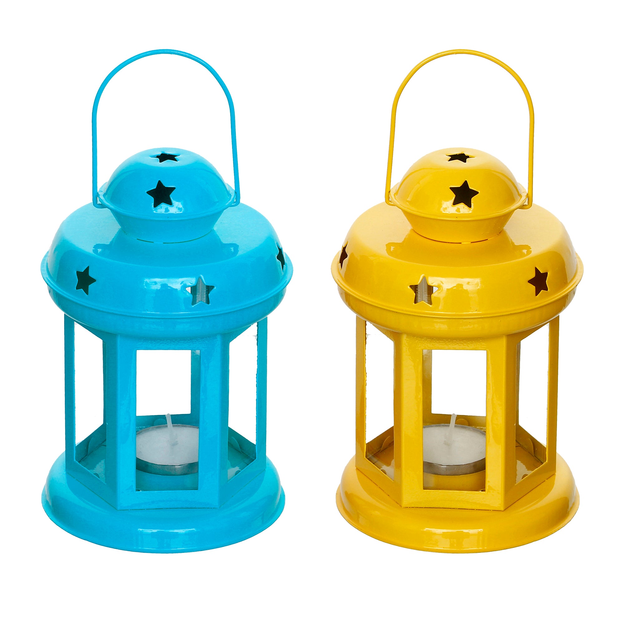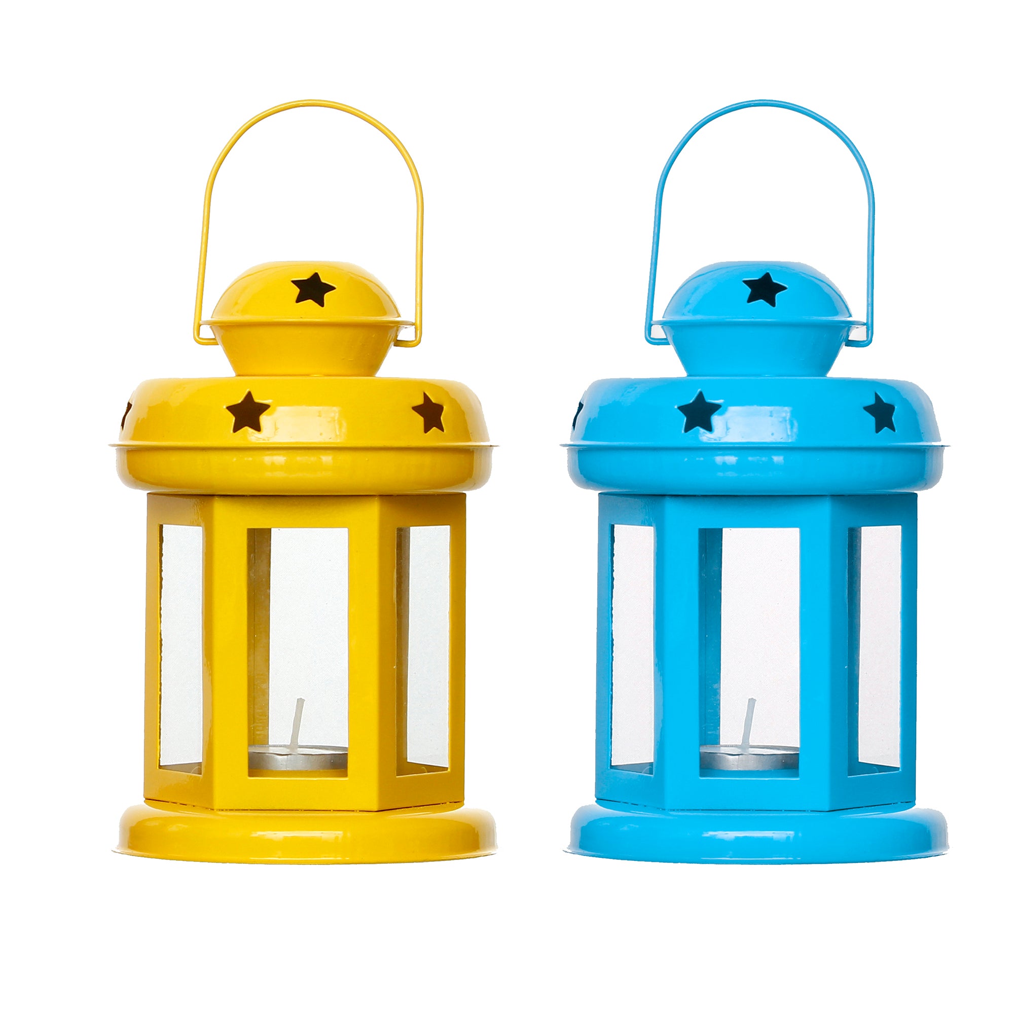Product Description - Decorative tea light holders are in trend, especially the ones that have unique designs that stand as a great decor item during the festivals. They also help you decorate your home as well as the office space and enhance your festive decoration. eCraftIndia Set of 2 Blue and Yellow Iron Tea Light Holder Lantern is the best for you to get your hands on. You can also gift this to your friends and family at festivals or other auspicious occasions. Diligently handcrafted using various ancient techniques by the artisans at eCraftIndia, this is the most unique and decorative tea light holder that you can get.