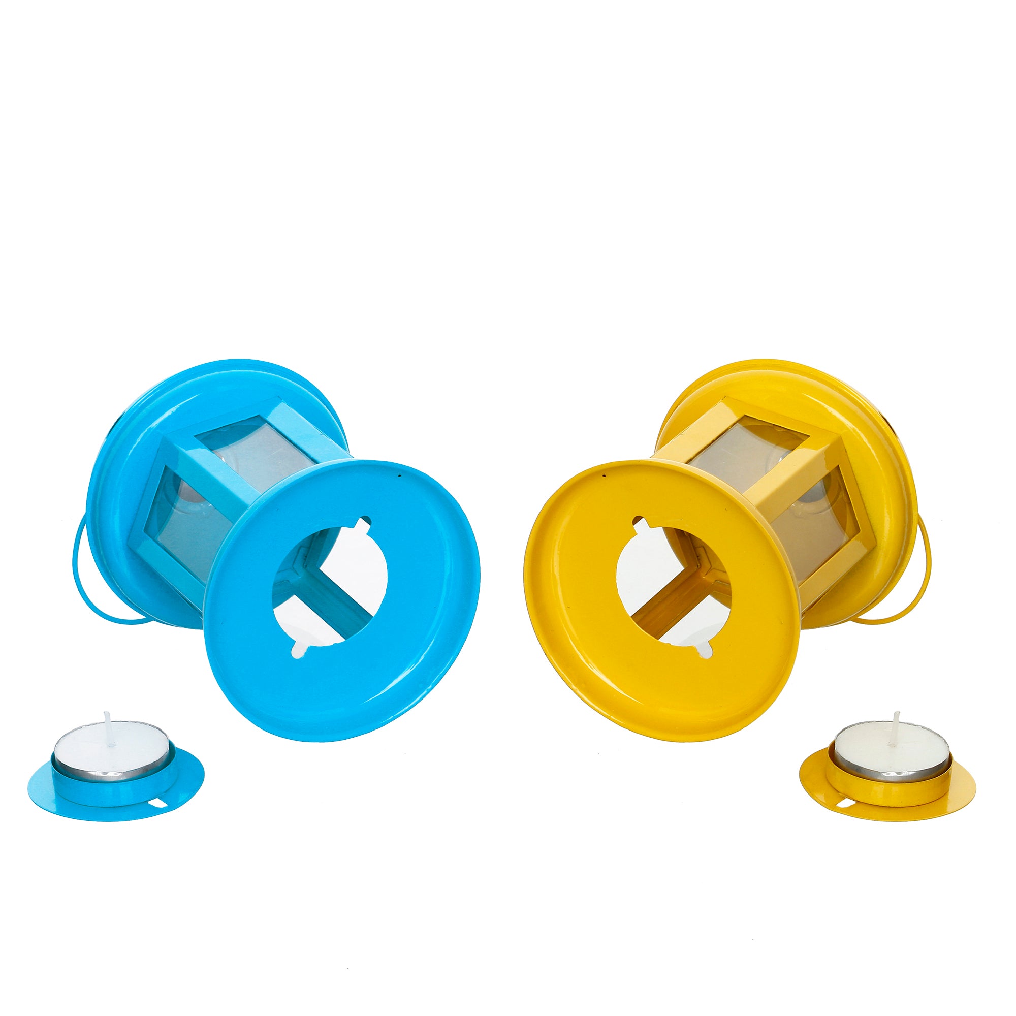 Package Content - One Set of 2 Blue and Yellow Tea Light Holder Lantern